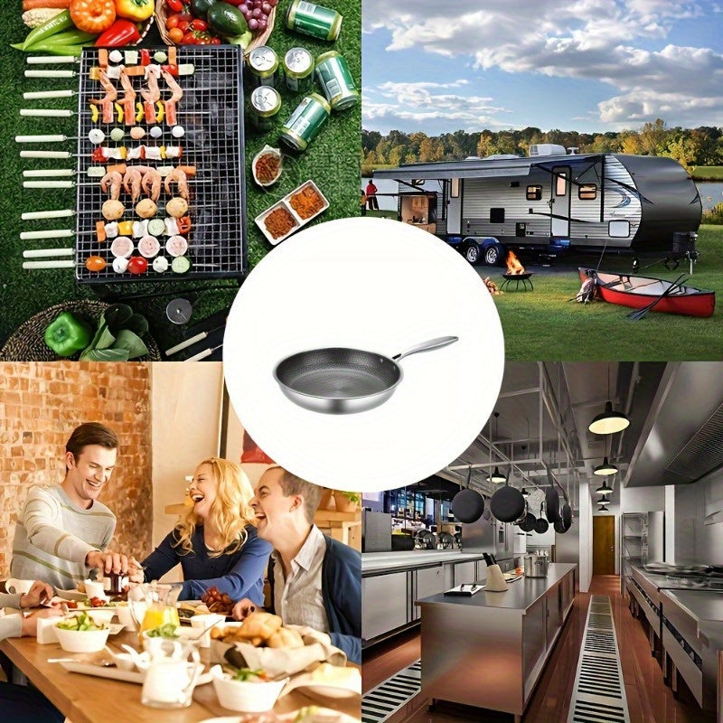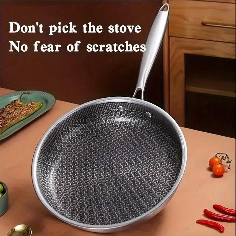 Многофункциональная сковорода из нержавеющей стали - антипригарное покрытие, подходит для газовых и индукционных плит, незаменимый кухонный инструмент.