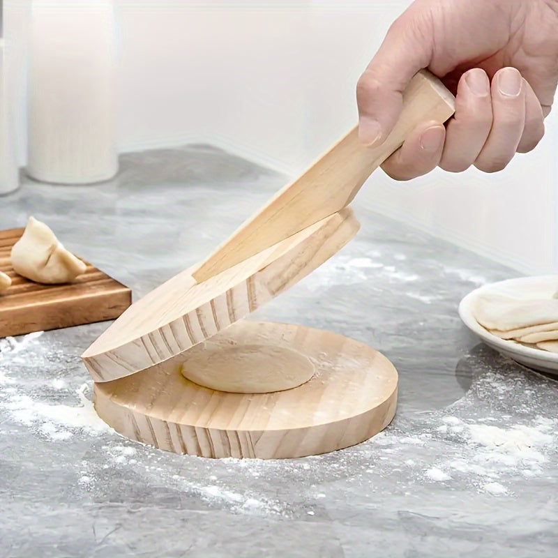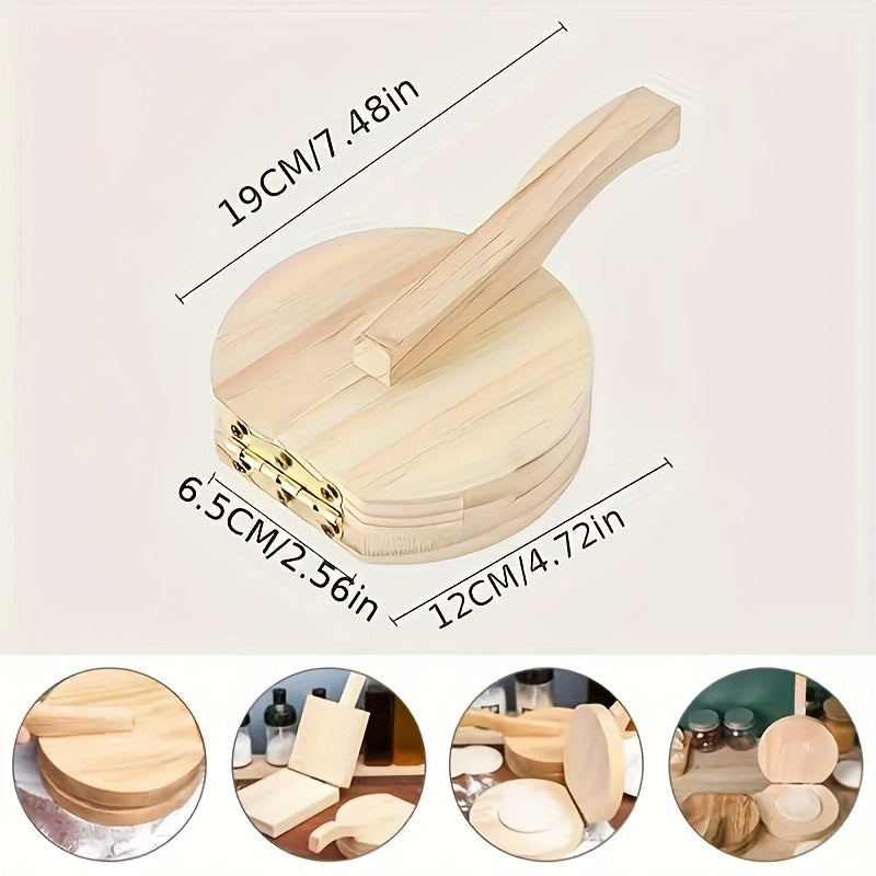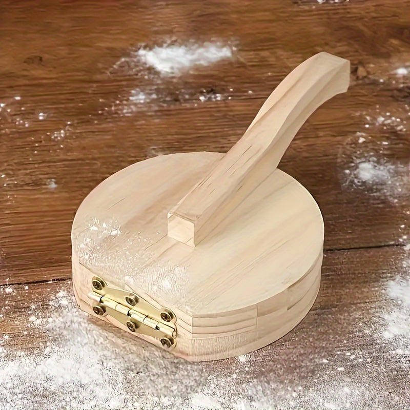 Многофункциональный деревянный пресс для теста с антипригарным роликом для различных продуктов, таких как тортильи, пельмени, бургеры и пироги. Прочный кухонный инструмент с ручкой.