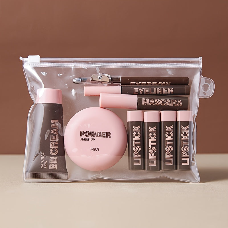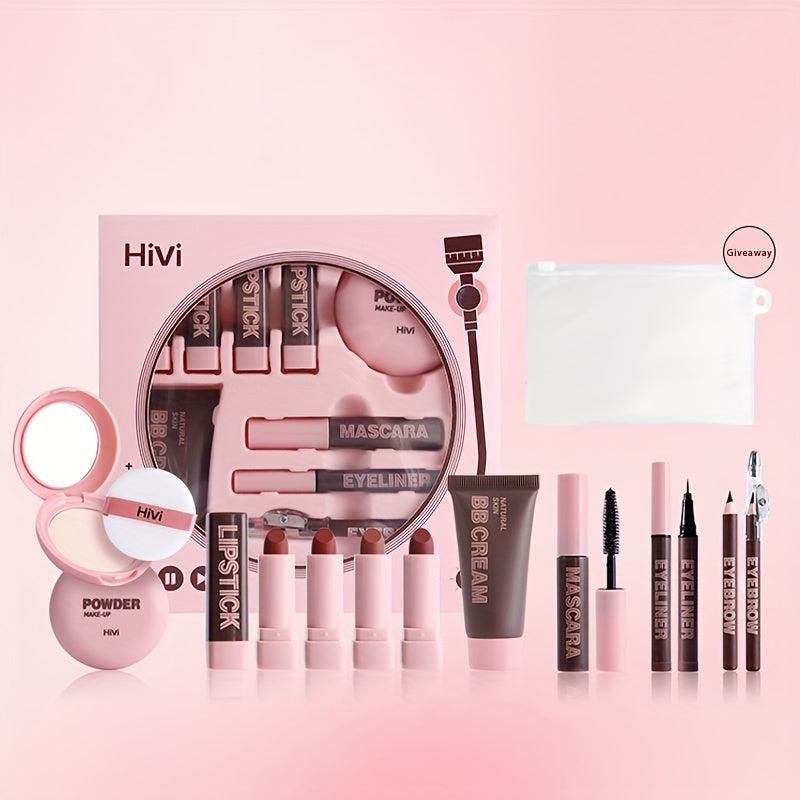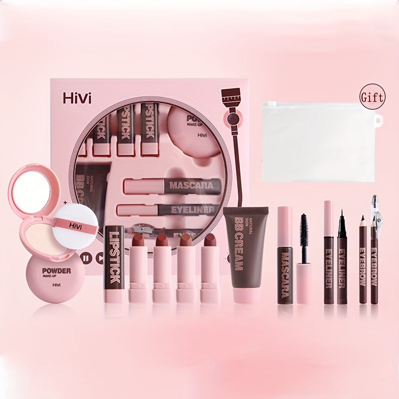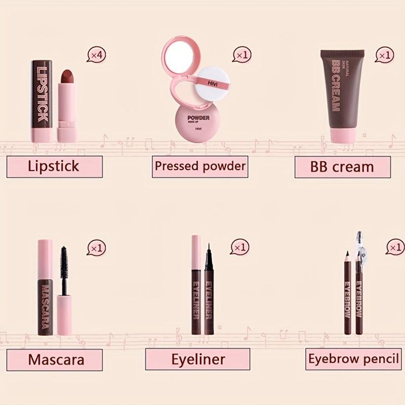 Набор косметики в подарок для женщин с помадой, BB-кремом, прессованной пудрой, подводкой для глаз и тушью для маминого дня