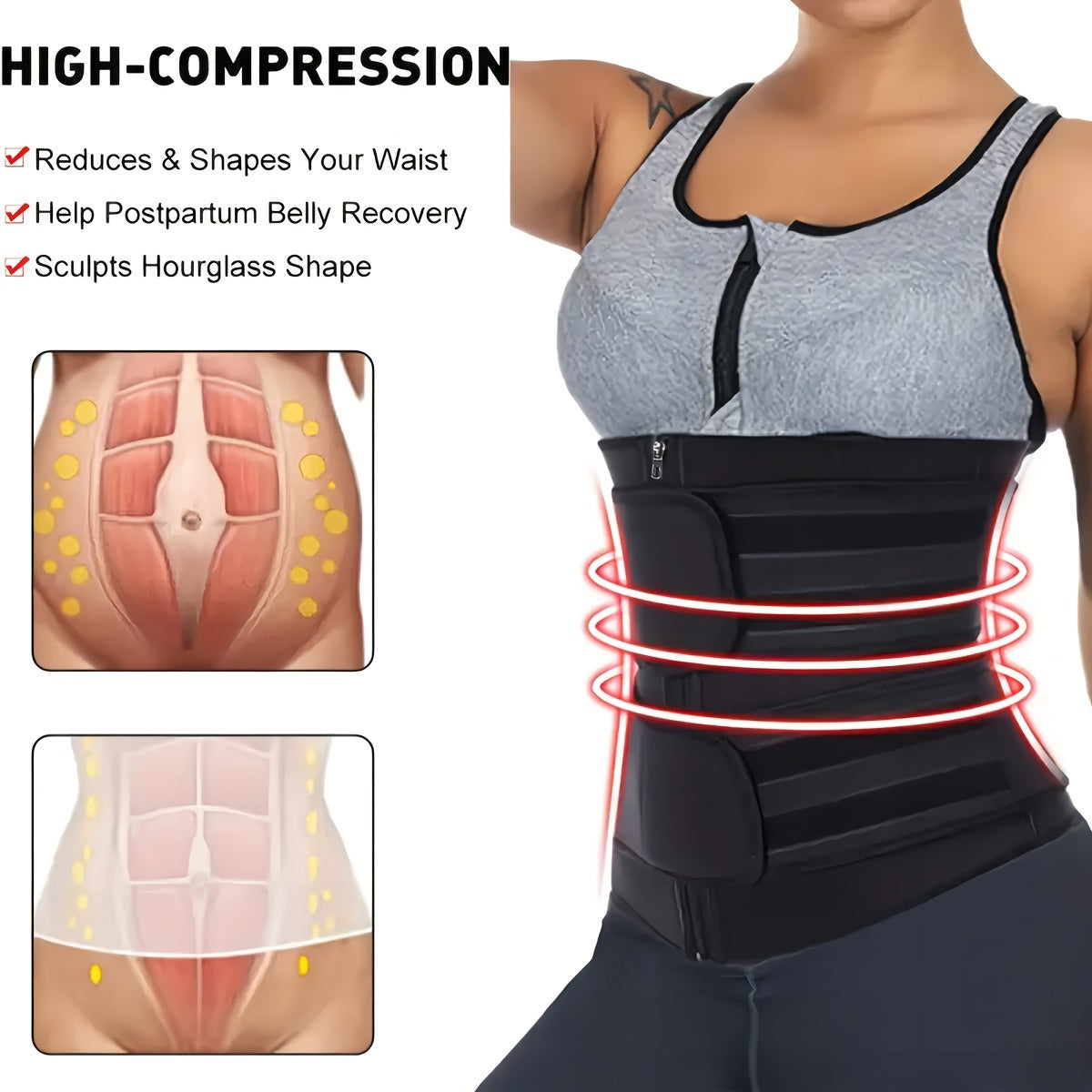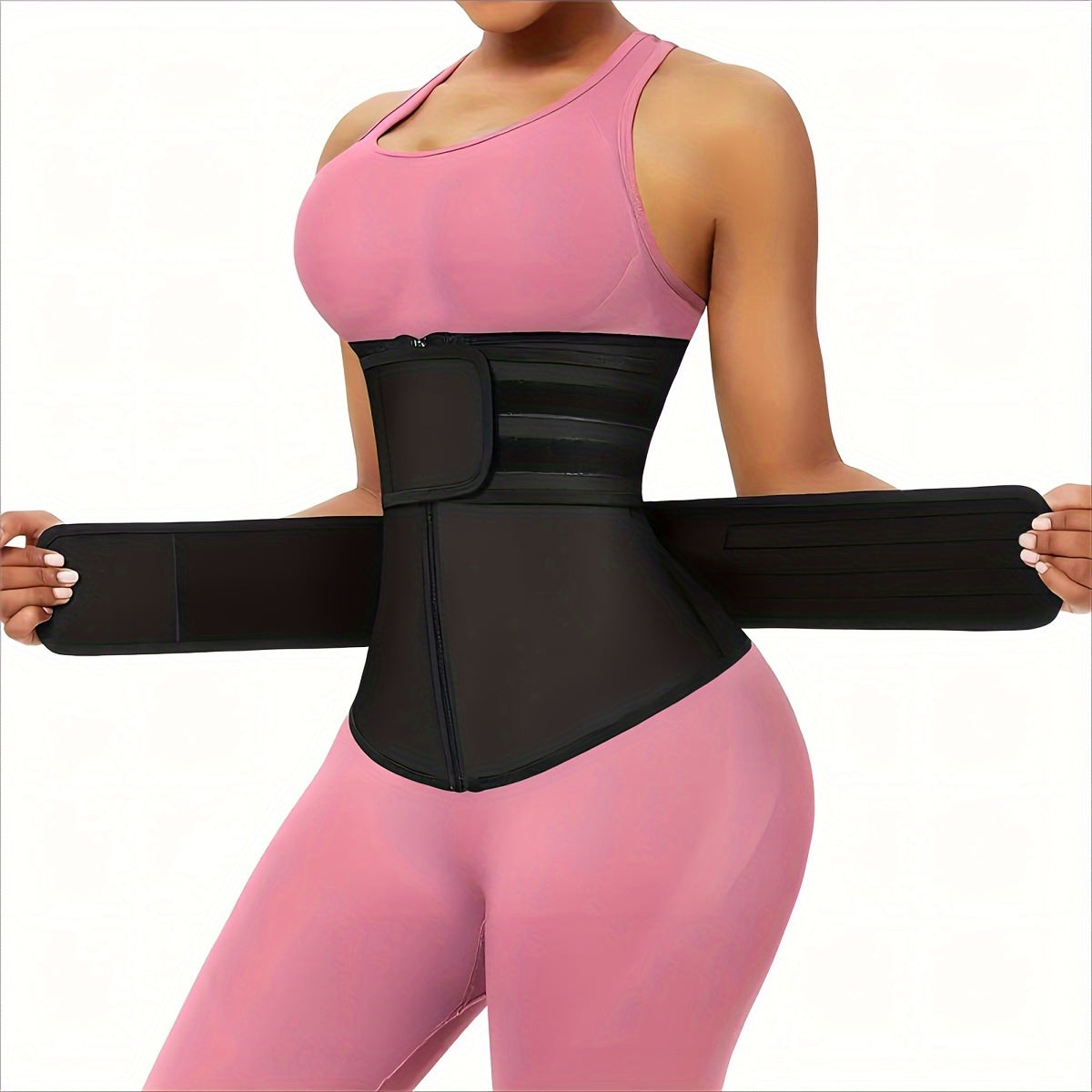 Спортивный пояс для тренировки из неопрен и полиэстера с застежкой на молнии, термоактивный, средний уровень контроля, машинная стирка, отвод влаги.