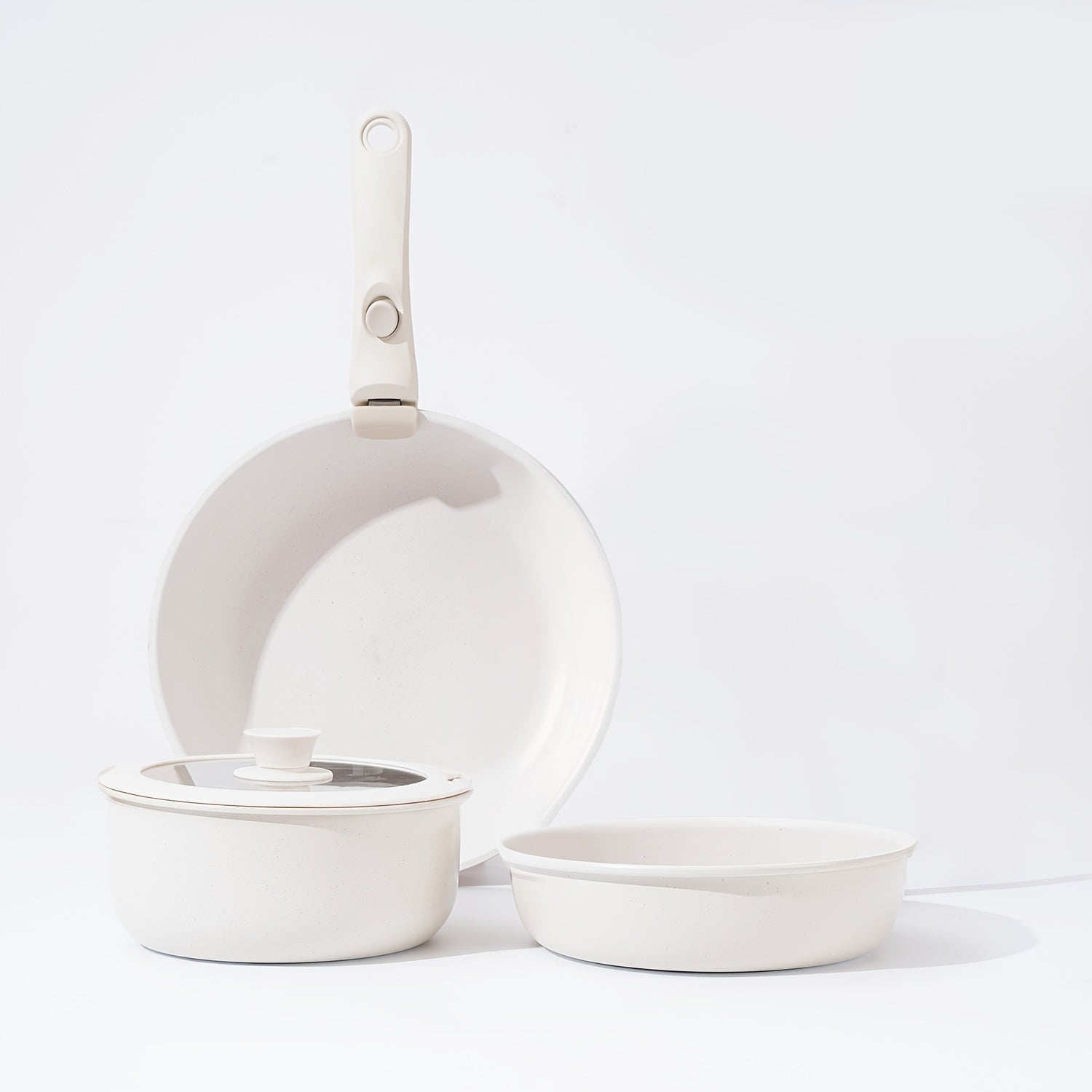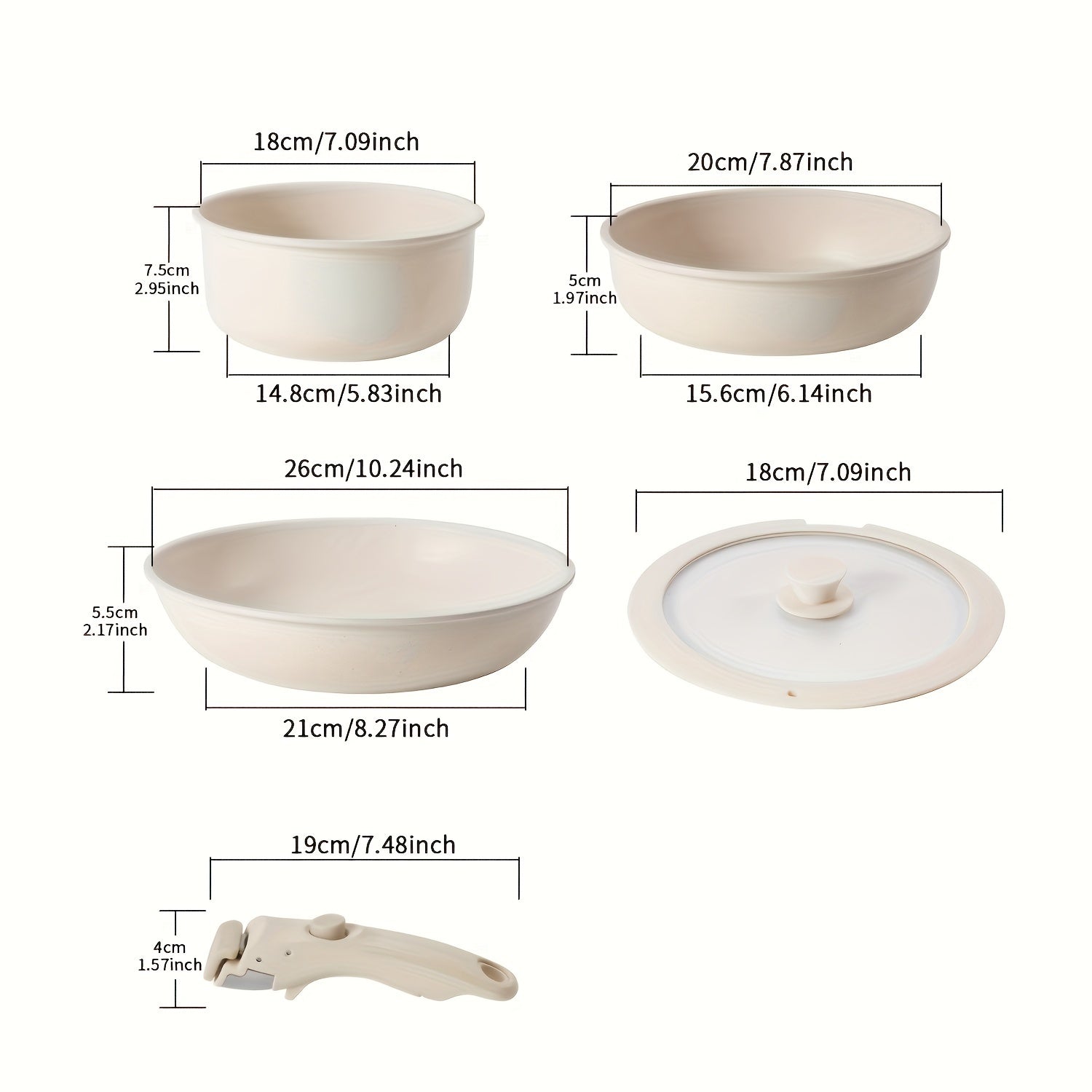 Набор посуды для запекания - 5 предметов алюминиевой антипригарной посуды, безопасной для духовки до 842°F, прочной и легкой в очистке, с отсоединяемой ручкой для индукционных плит, универсальные кастрюли и сковороды для кухни.