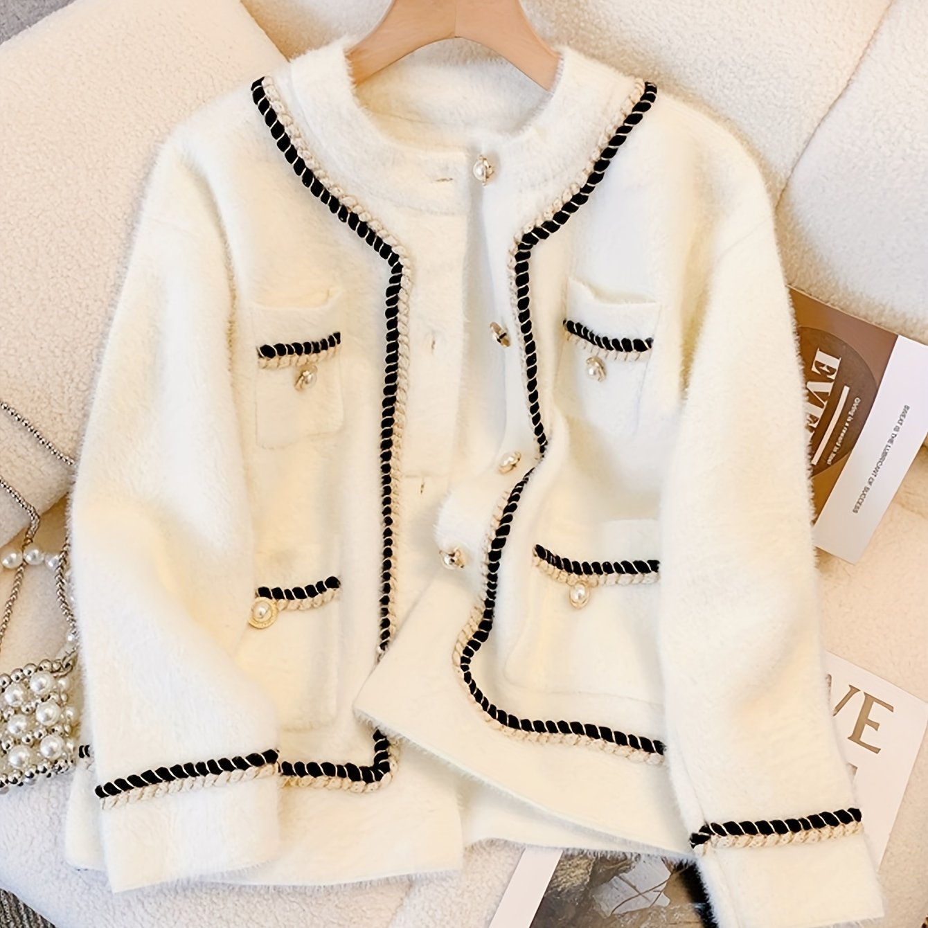 Европейский и американский стиль вязаный свитер-кардиган для женщин, осень-зима, с пуговицами спереди, однотонный