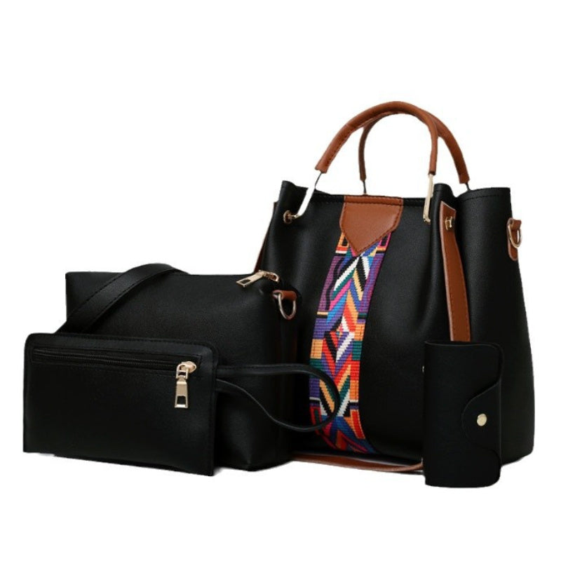 Набор сумок для матери и дочери, из 4 предметов, из ПВХ, однотонные, через плечо, черные, розовые, серые, зеленые, коричневые