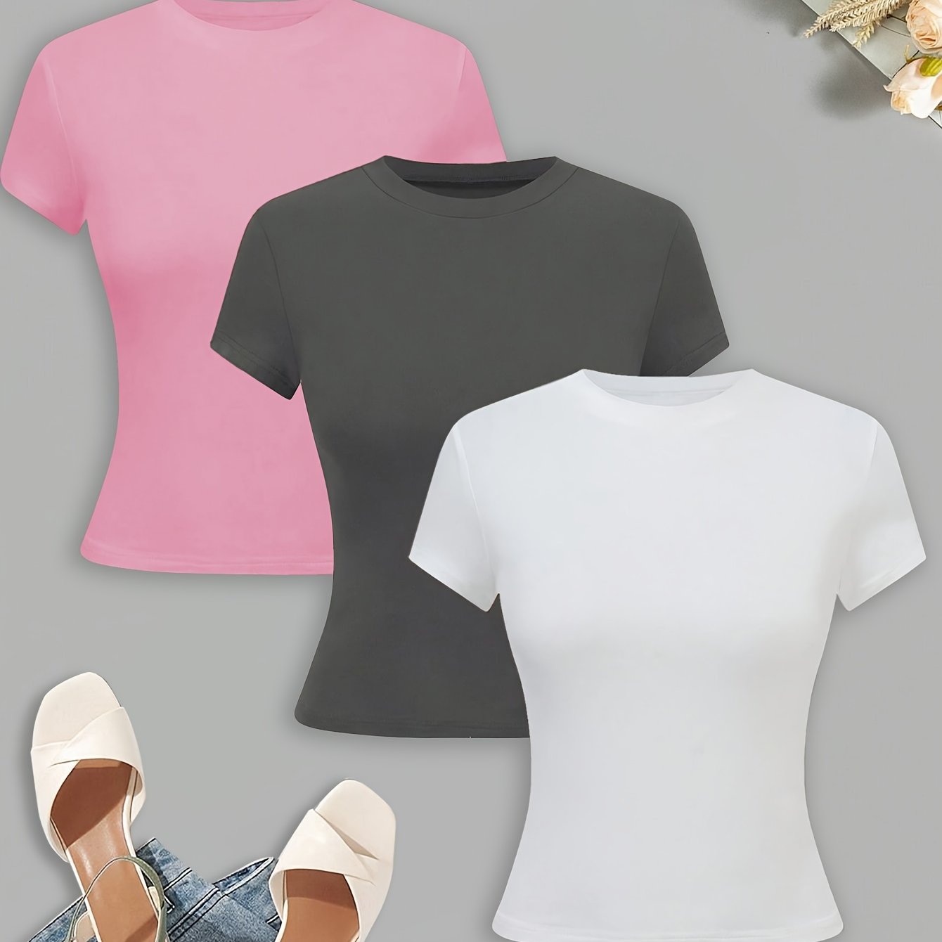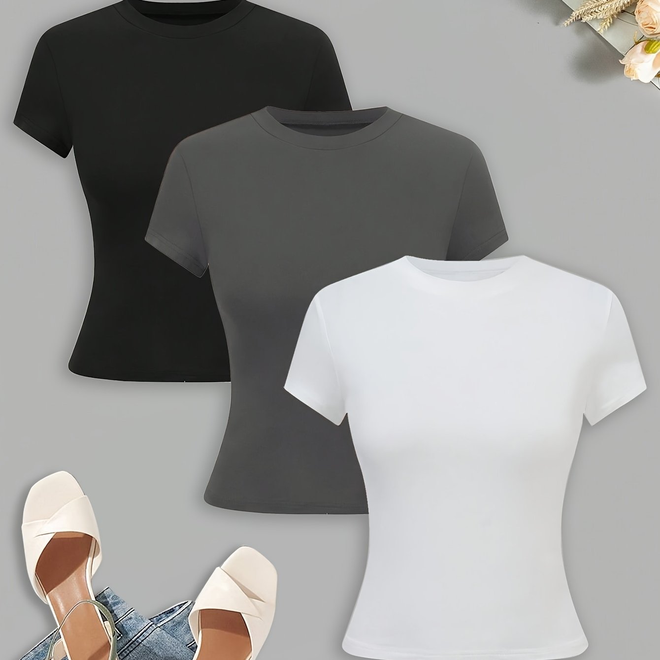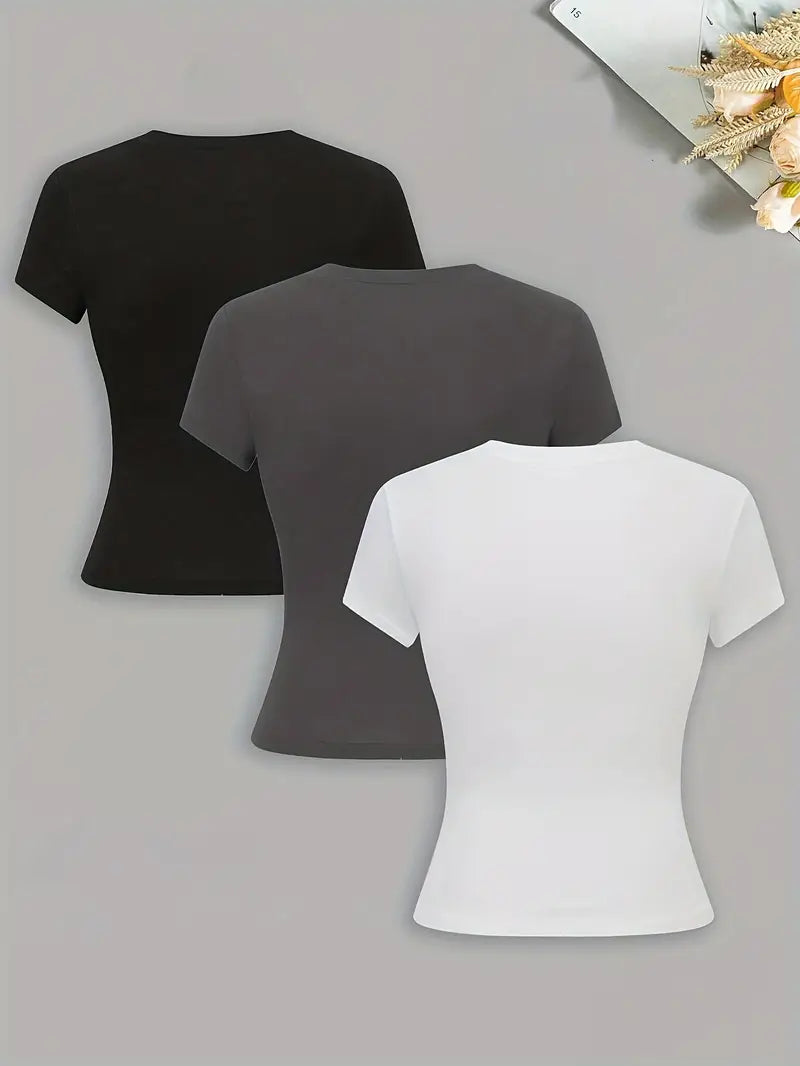 Новый женский облегающий однотонный футболка в комплекте из трех предметов - DP111061