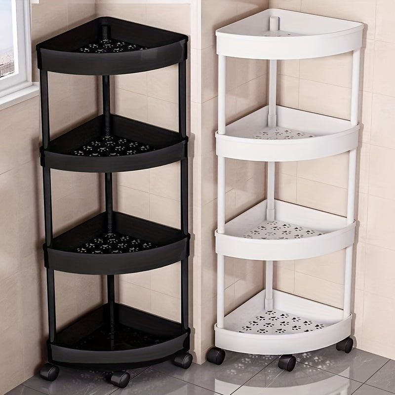 Сборка не требуется! Этот универсальный органайзер представляет собой 4-ярусную пластиковую тележку для хранения на колесах с треугольным угловым дизайном. Идеально подходит для использования на кухне, в ванной, гостиной или офисе.