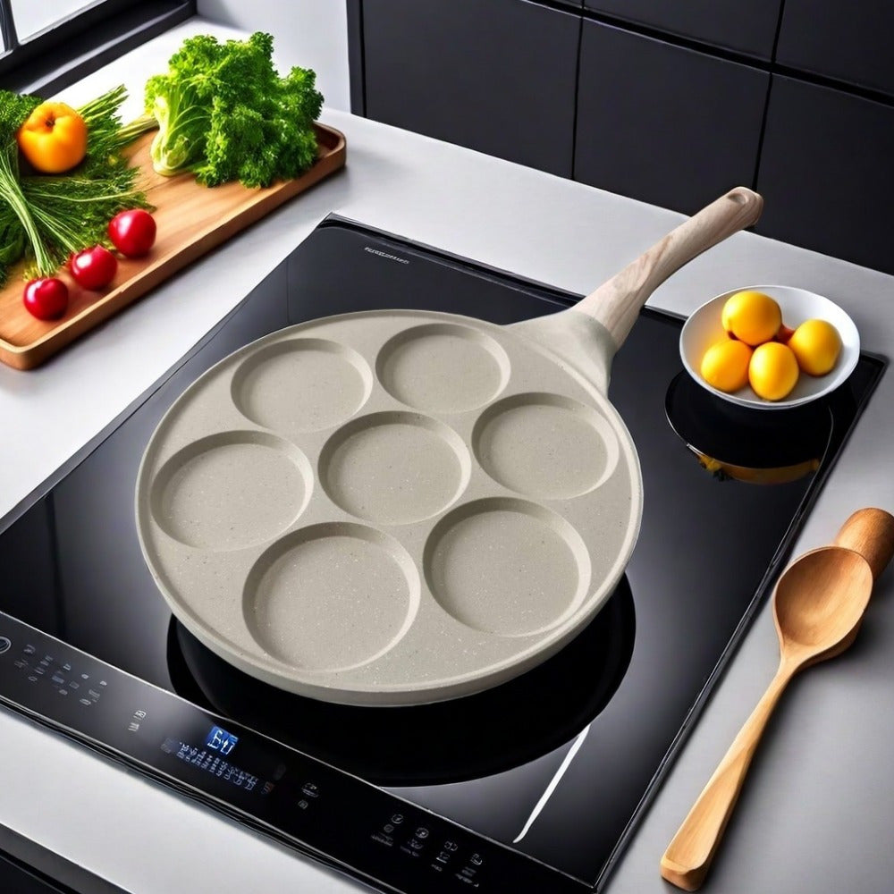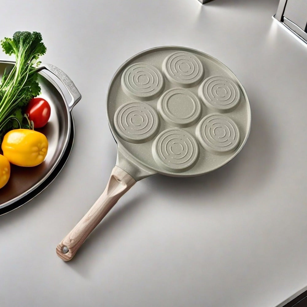 Антипригарная алюминиевая сковорода для крепов с 7 отверстиями, без BPA, идеально подходит для жарки и гриля, включает различные аксессуары, не требует электричества