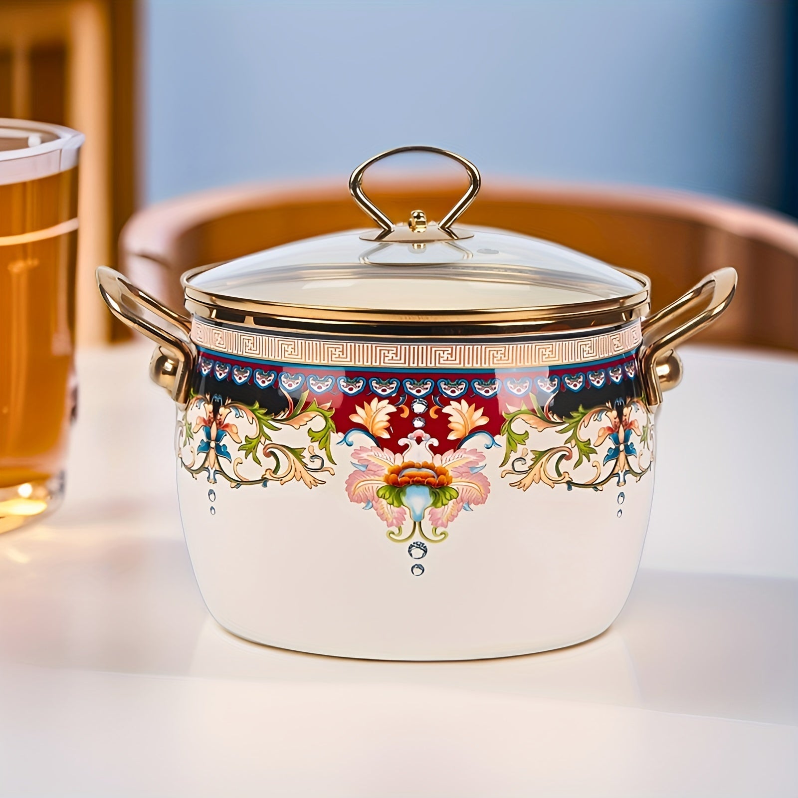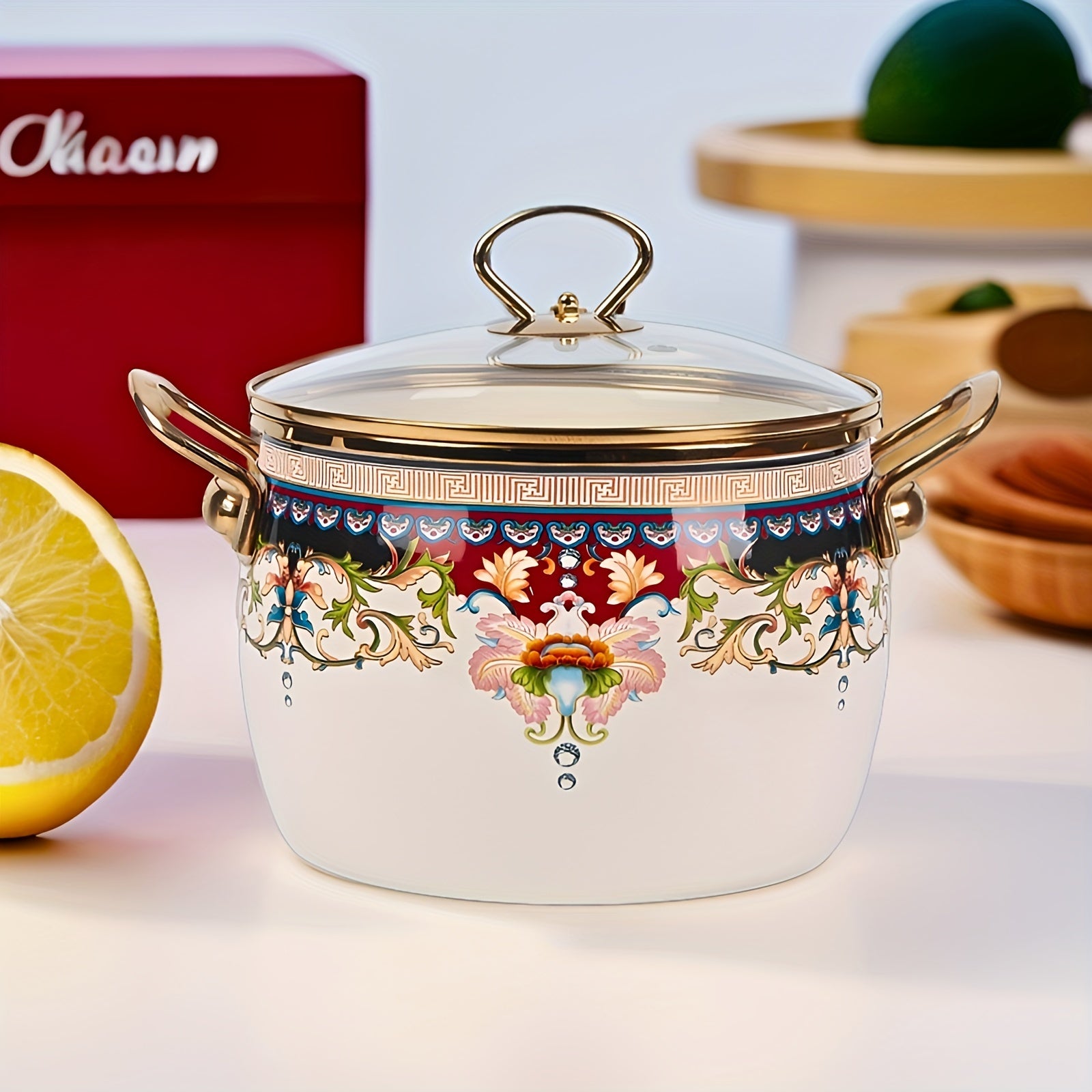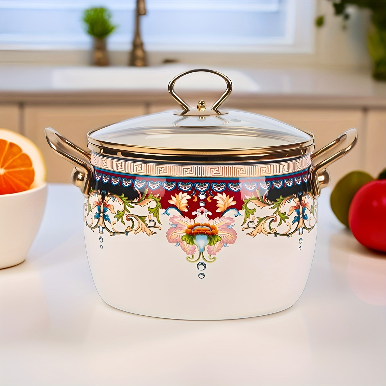 Ненагревающаяся эмалированная кастрюля с стеклянной крышкой, двойными ручками, посуда, безопасная для посудомоечной машины, для супа и пасты