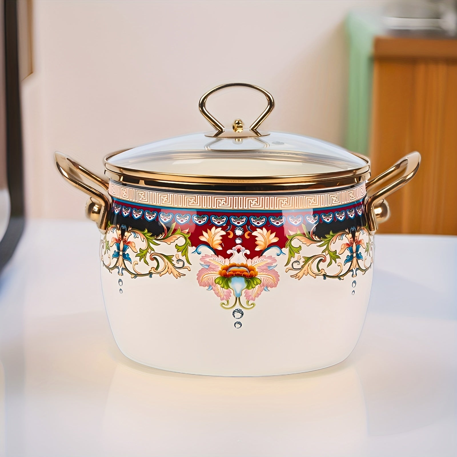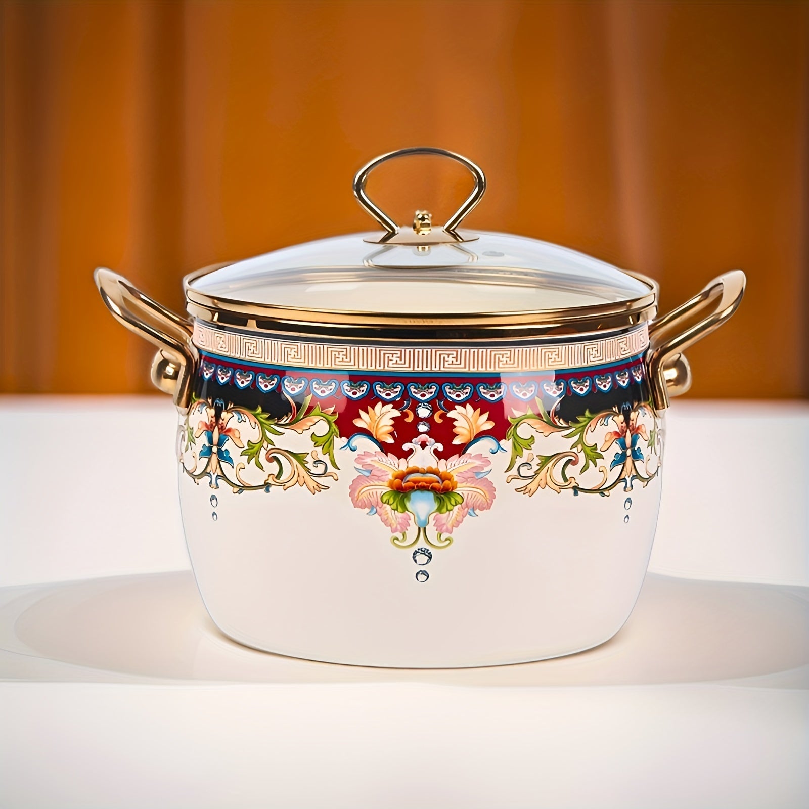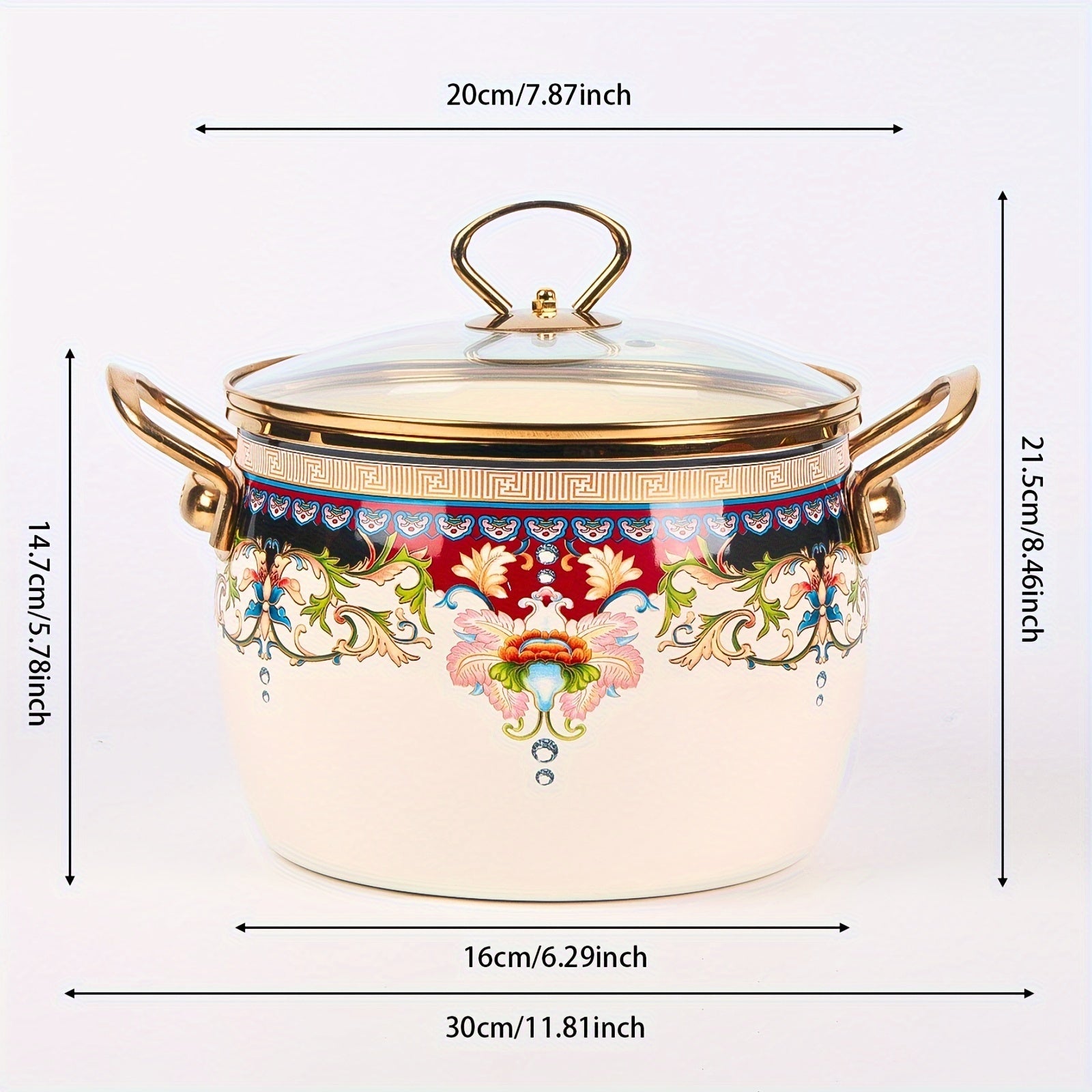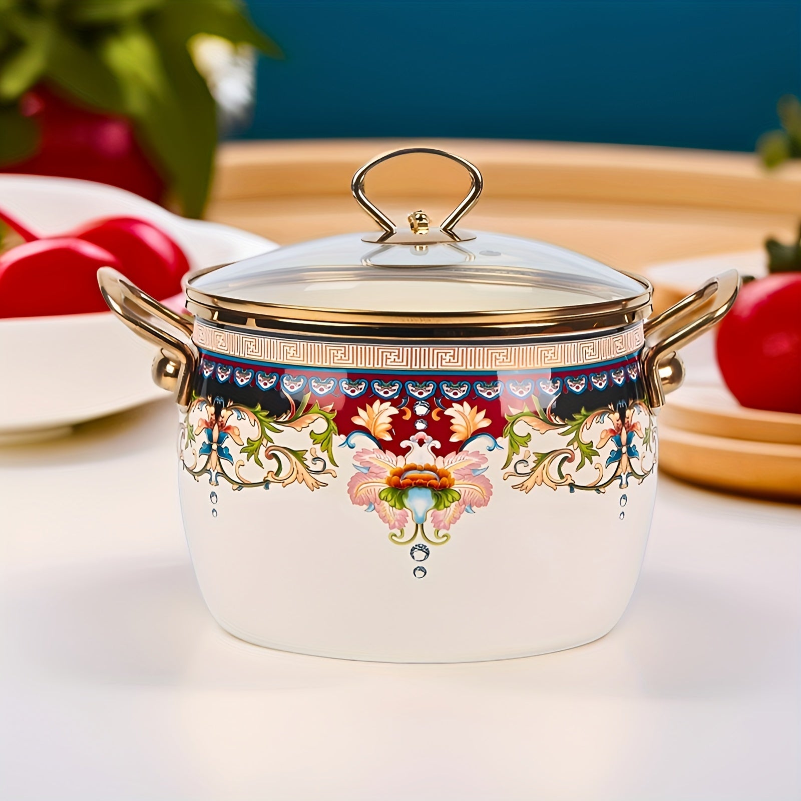 Ненагревающаяся эмалированная кастрюля с стеклянной крышкой, двойными ручками, посуда, безопасная для посудомоечной машины, для супа и пасты