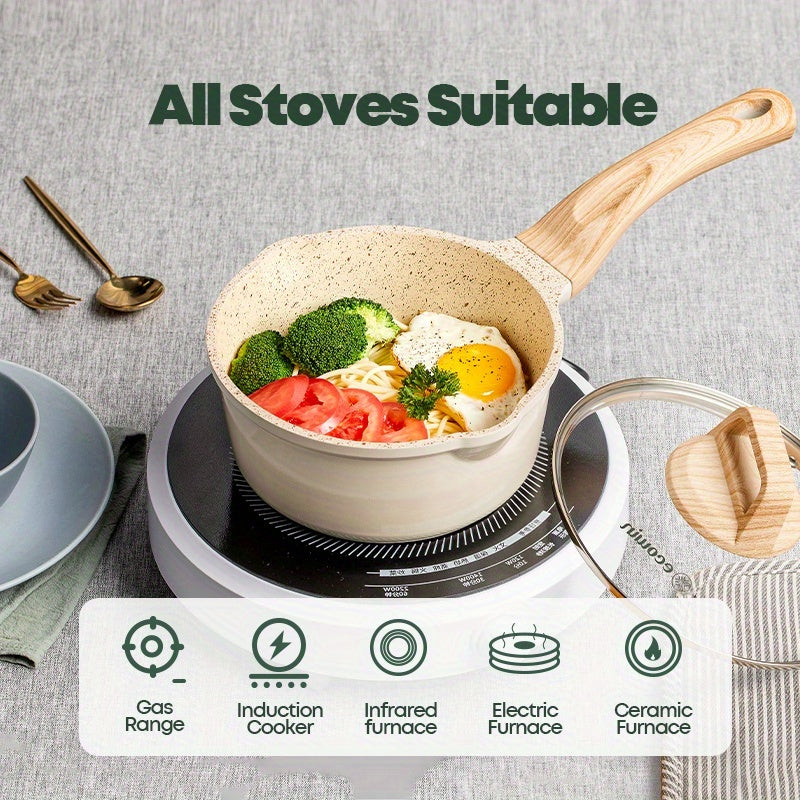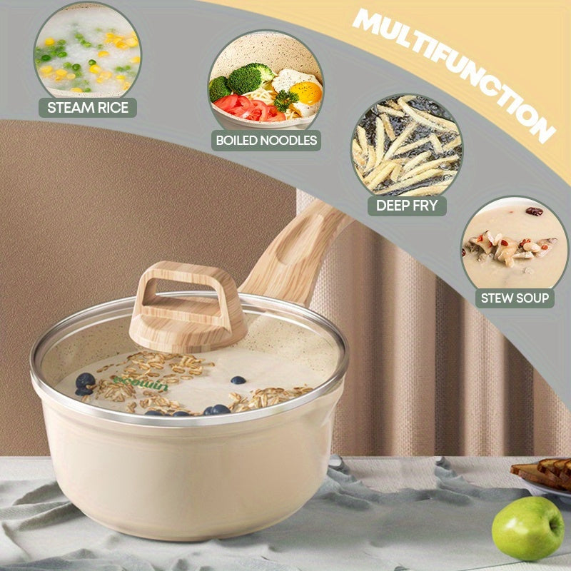 Сковорода с антипригарным покрытием для ваших нужд на кухне! Эта маленькая молочная кастрюля идет с крышкой и идеально подходит для приготовления пасты, соуса для стейка, каши и рамена. Универсальное дополнение к вашей кухонной утвари и посуде.