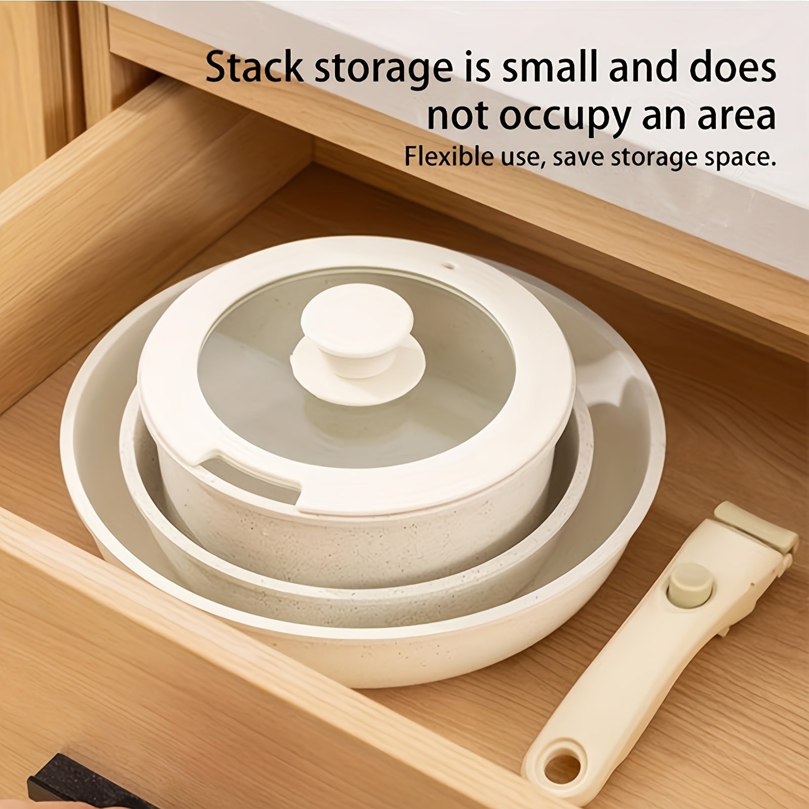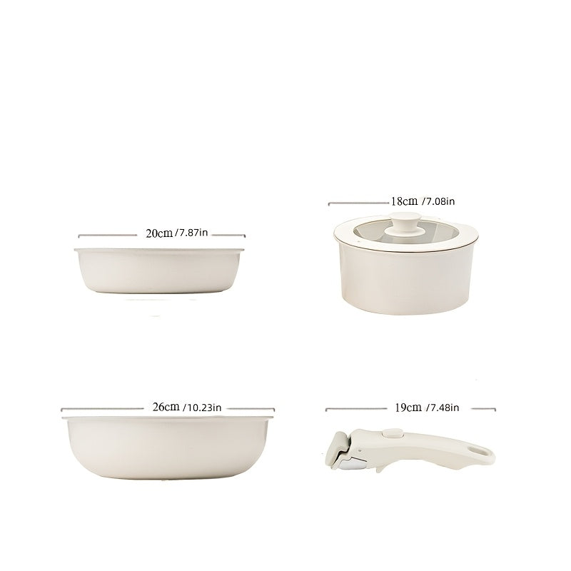 Набор посуды с антипригарным покрытием - включает 5 предметов с съемными ручками, изготовлен из алюминия для легкой очистки - идеально подходит для домашнего и ресторанного использования
