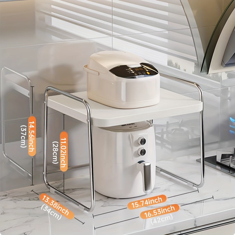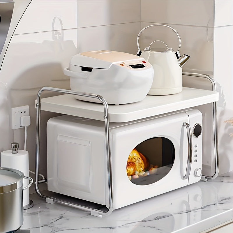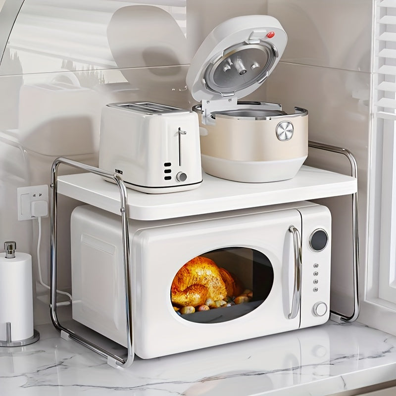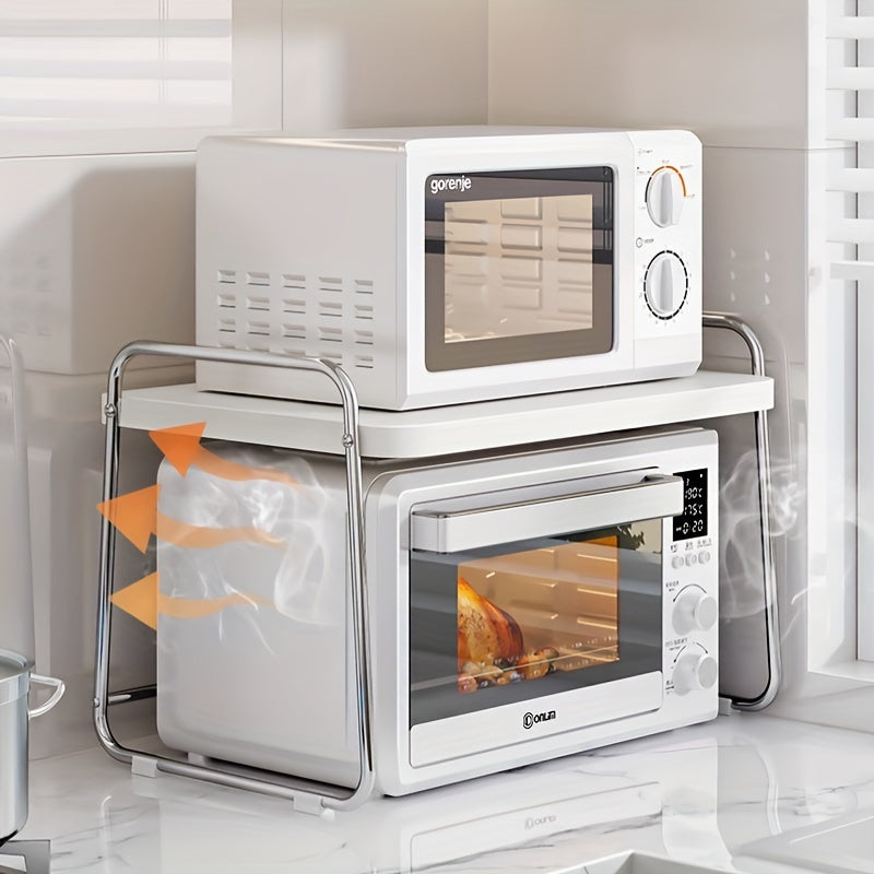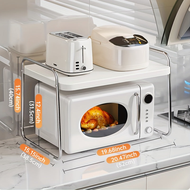 Один прочный двухъярусный стальной стальной микроволновый шкаф с 3 крючками, квадратный органайзер для кухонного стола; не требуется зарядка или батареи.