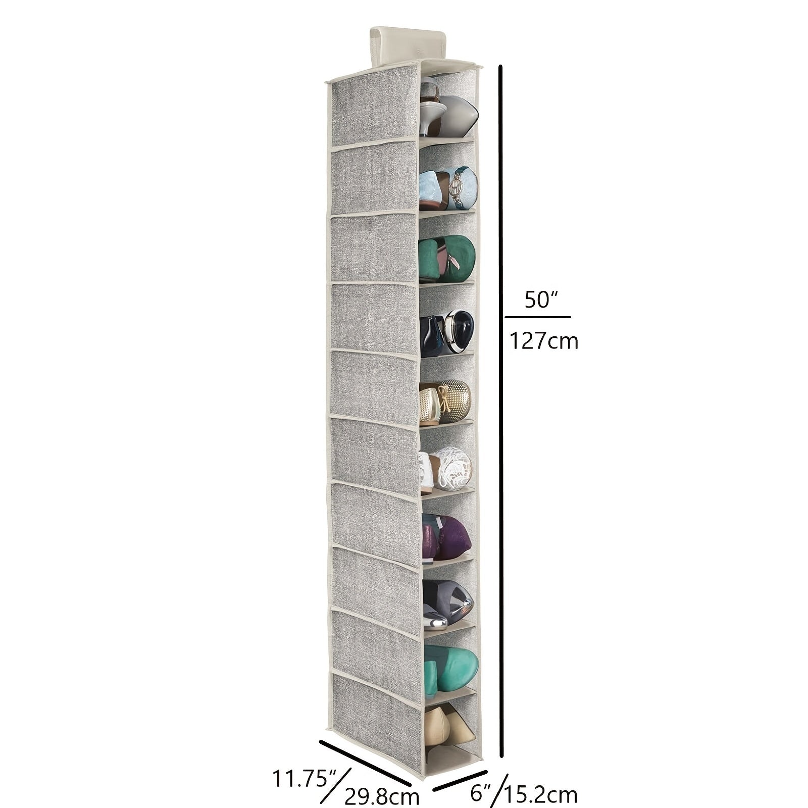 Одна деталь 10-уровневого висячего органайзера для обуви в шкафу в стильном сером дизайне, идеально подходящая для эффективного хранения.