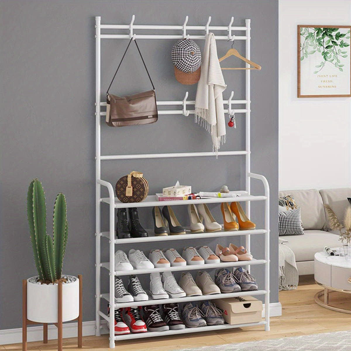 Одна часть отдельно стоящей полки для обуви 3 в 1, оснащенная 8 крючками для одежды. Имеет 4/5-слойный пластиковый органайзер, предназначенный для хранения в прихожей, гостиной, домашнем офисе или спальне.