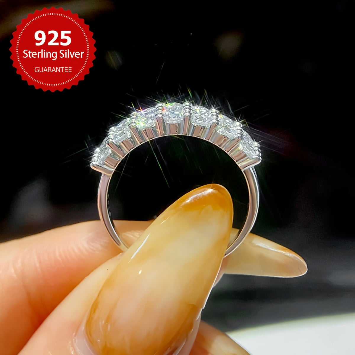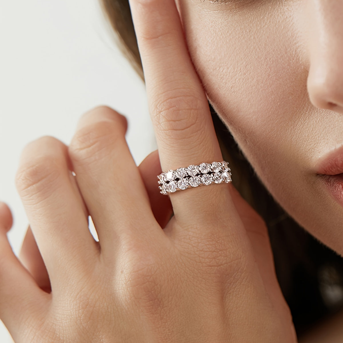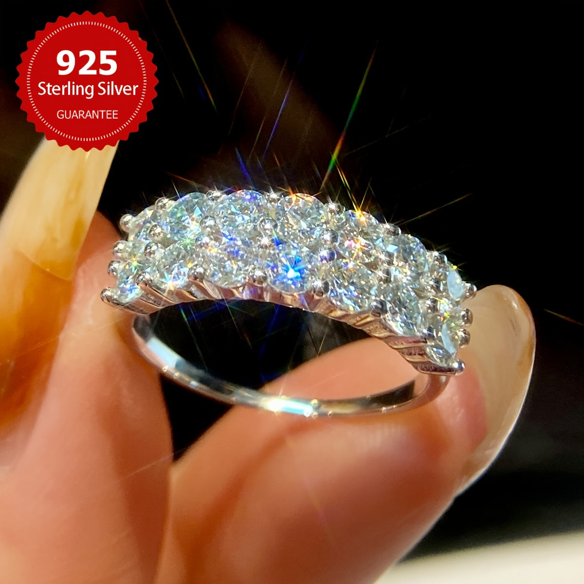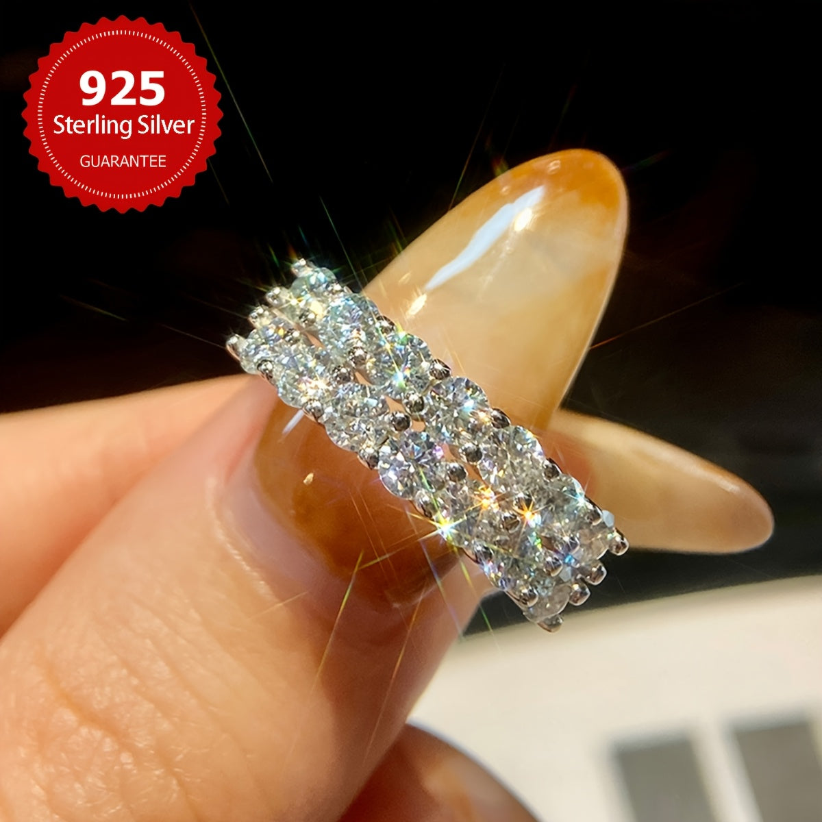 Один экземпляр обручального кольца с бриллиантом Моиссанит двойного ряда шириной 3 мм, с камнями Моиссанит весом 0,1 карата, в общей сложности 1,4 карата. Изготовлено из серебра S925, с весом около 2,9 г для размеров 5, 6, 7, 8 и 3,15 г для размера 9.
