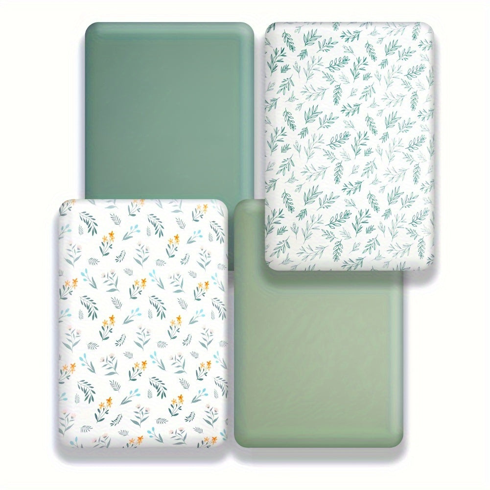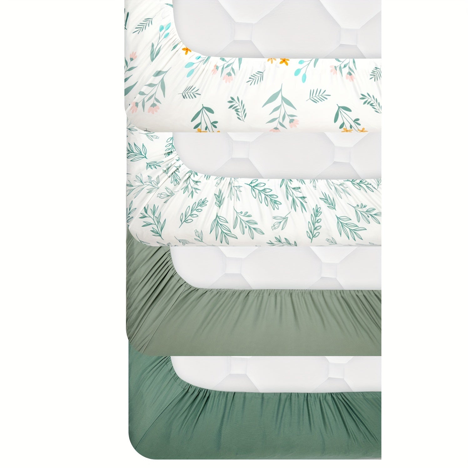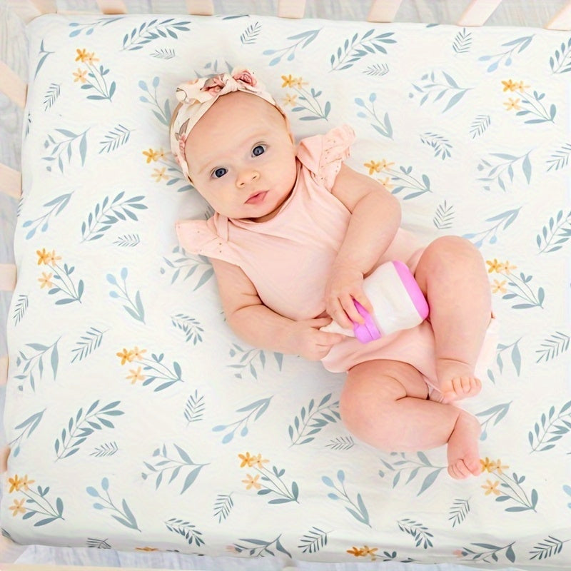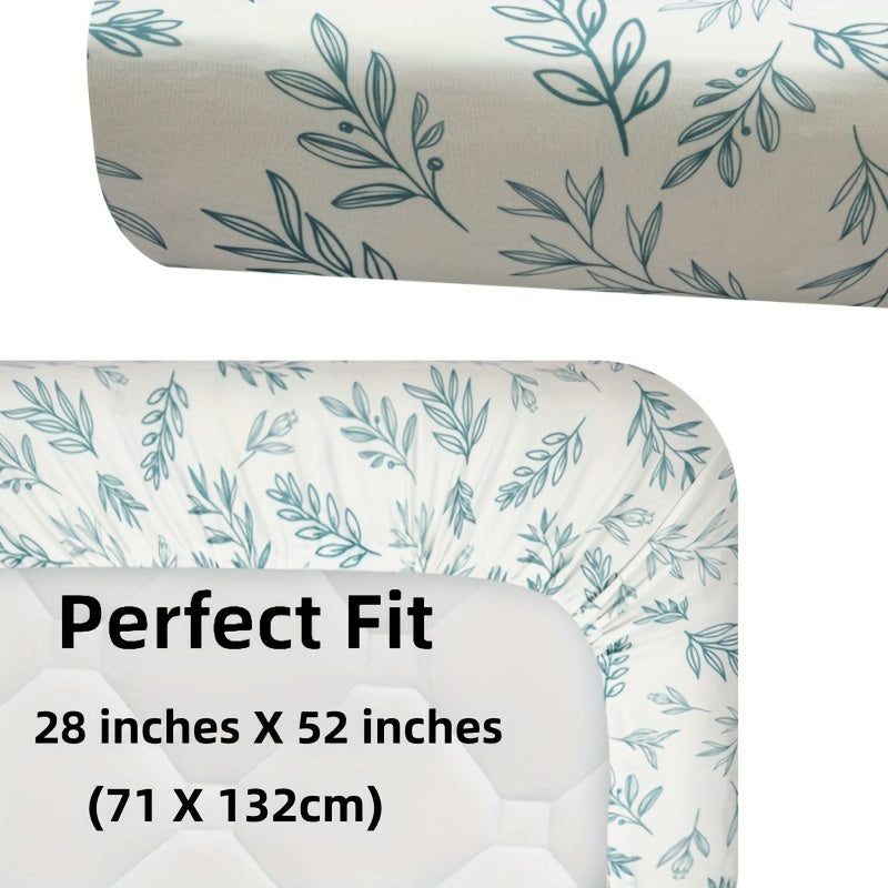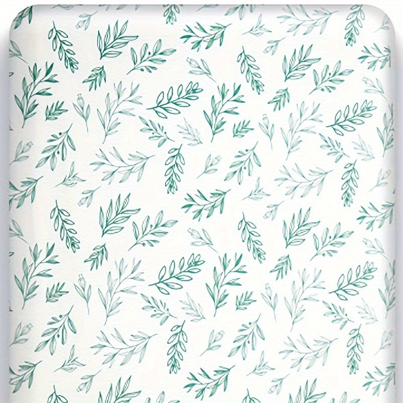 Одна простыня на матрасик Sage Green, выполненная из дышащей полиэстеровой смеси, с узором из листьев и цветов, подходит как для мальчиков, так и для девочек, легко чистится, трикотажная ткань, идеальная для унисекс постельного белья в детской.