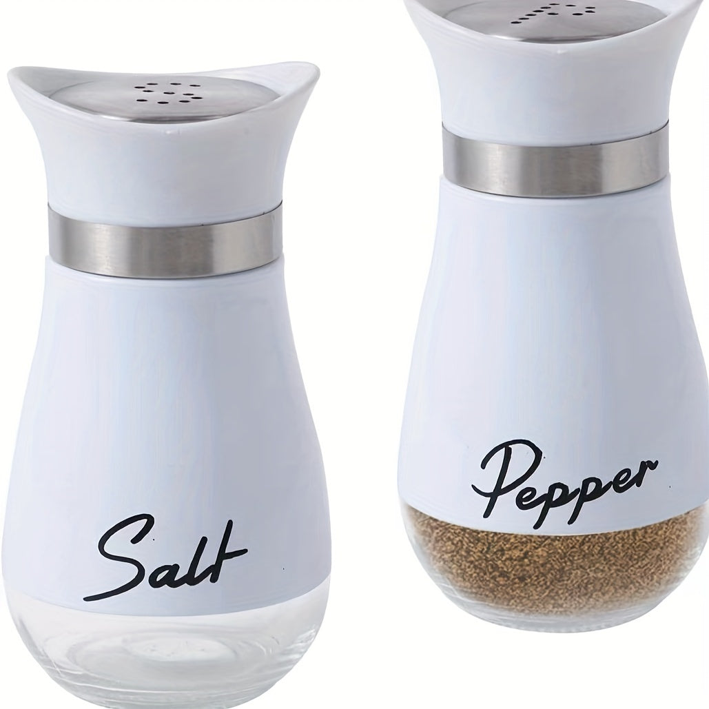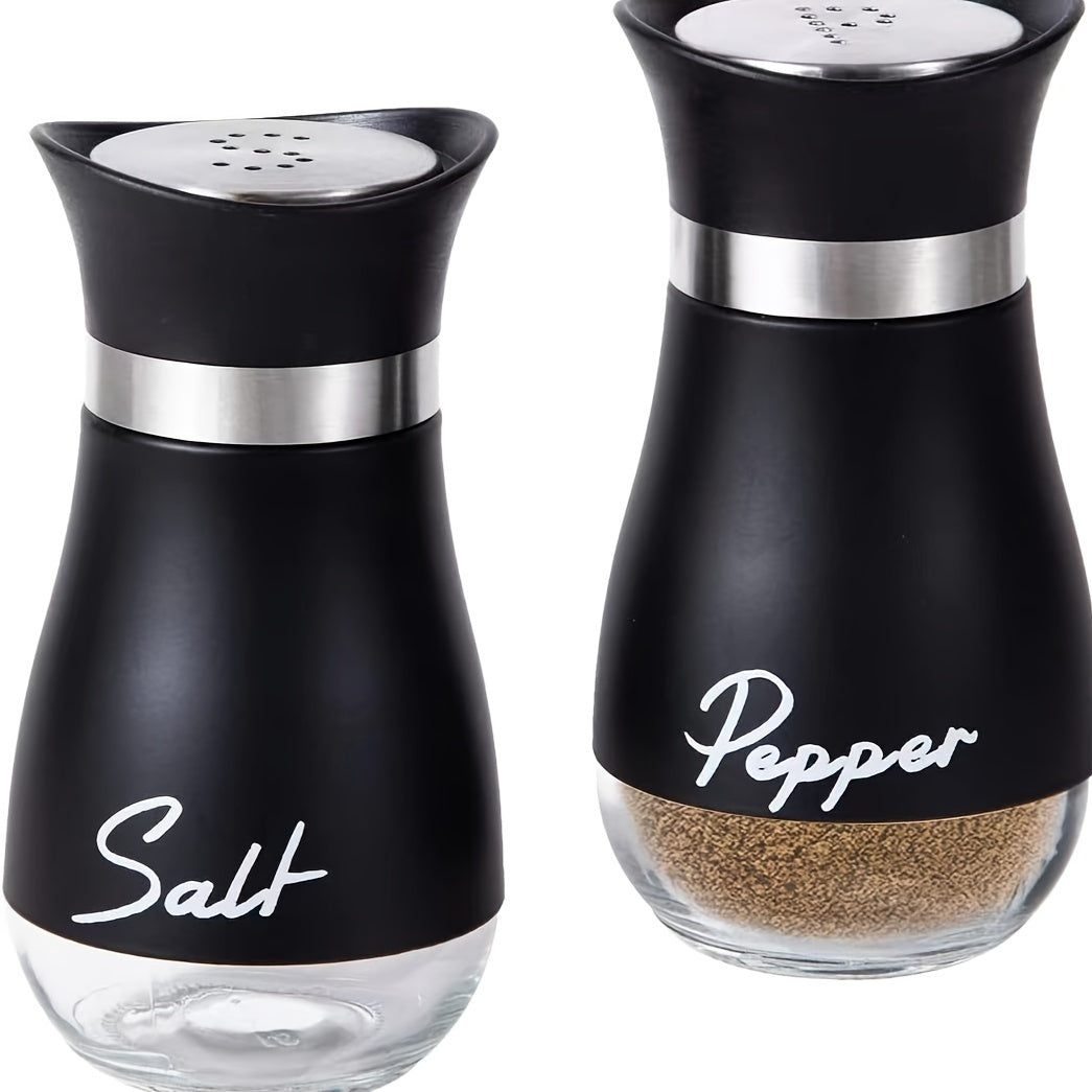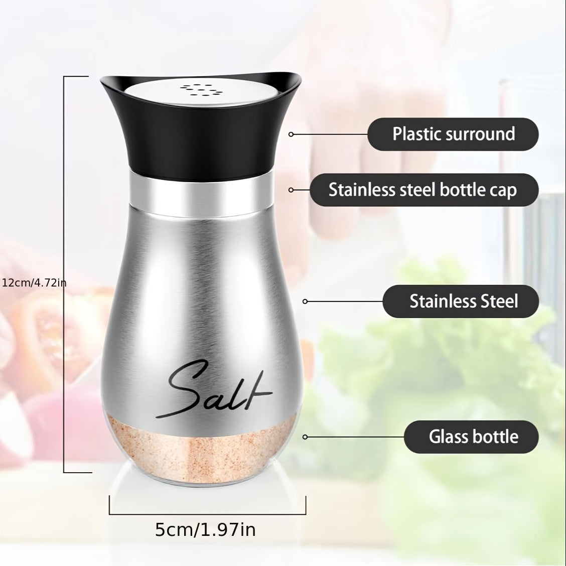 Набор из 4 унциевых стеклянных баночек для соли и перца с крышками из нержавеющей стали, идеально подходящих для кухни, автодома, кемпинга, барбекю. Перезаправляемый дизайн. В наборе две баночки.