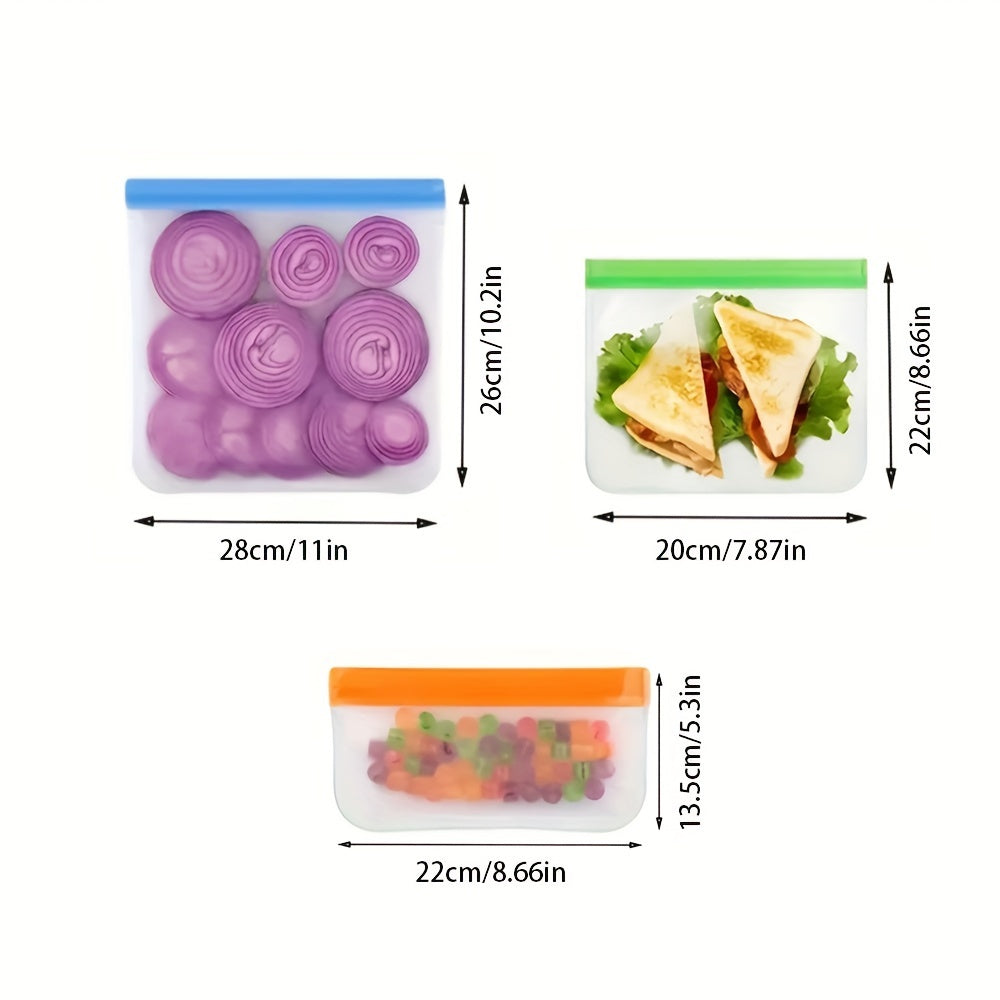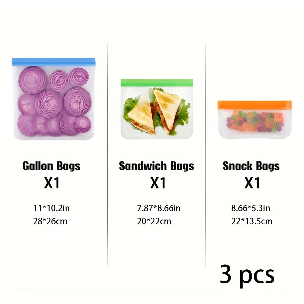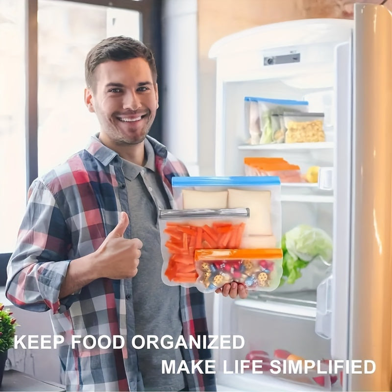 Набор многоразовых мешков для хранения продуктов из силикона, без пластика, безопасных для морозильника, для сэндвичей и закусок