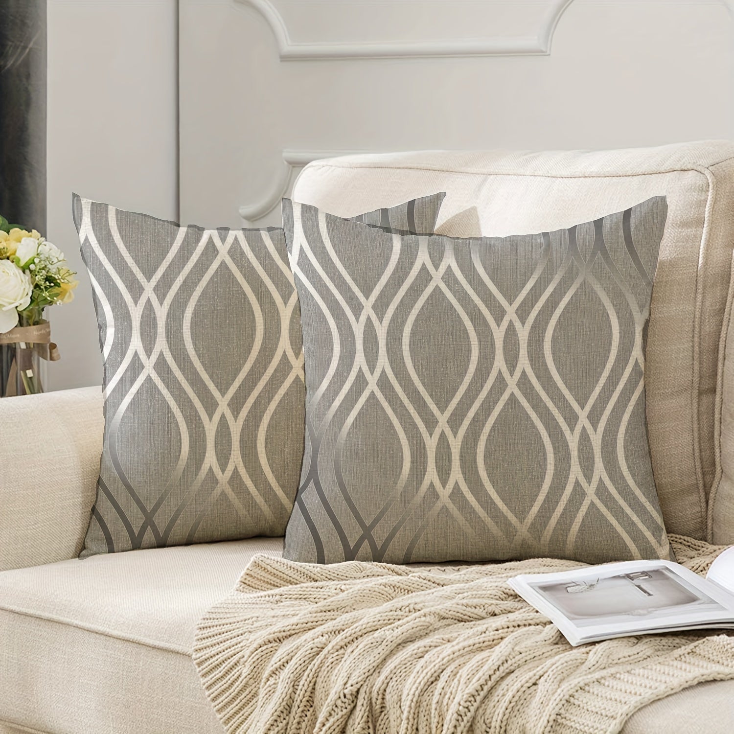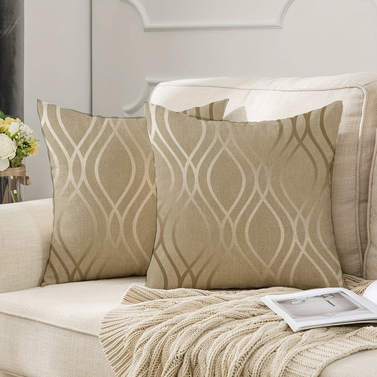 Одна квадратная наволочка для подушки с простым геометрическим текстурой в золоте и серебре, подходит для домашнего декора. В комплект не входит наполнитель для подушки.