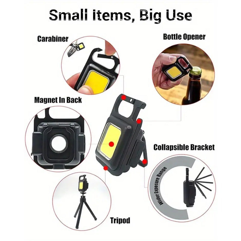 Набор из 2 портативных мини-фонариков для ключей на открытом воздухе, COB, освещение для рюкзака