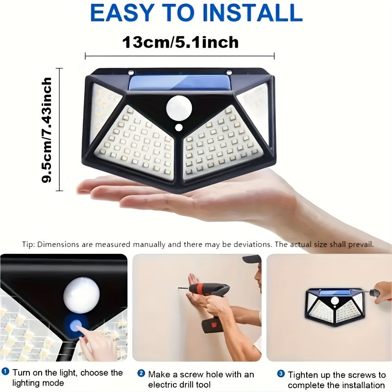 Наружный солнечный уличный свет с 100 светодиодными бусинами, датчиком движения, для сада, гаража, уличного освещения