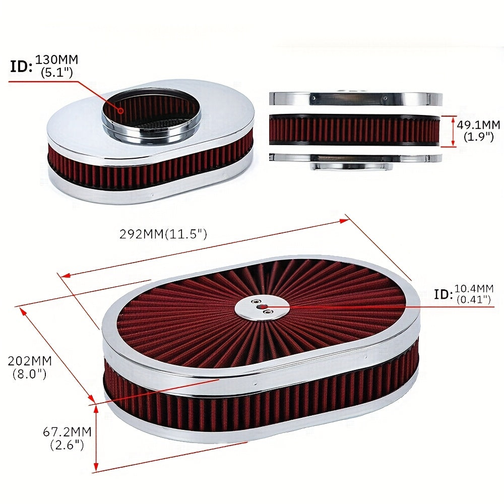 Крышка корпуса воздушного фильтра овальной формы с высоким пропусканием, хром, 30,48 см x 5,08 см