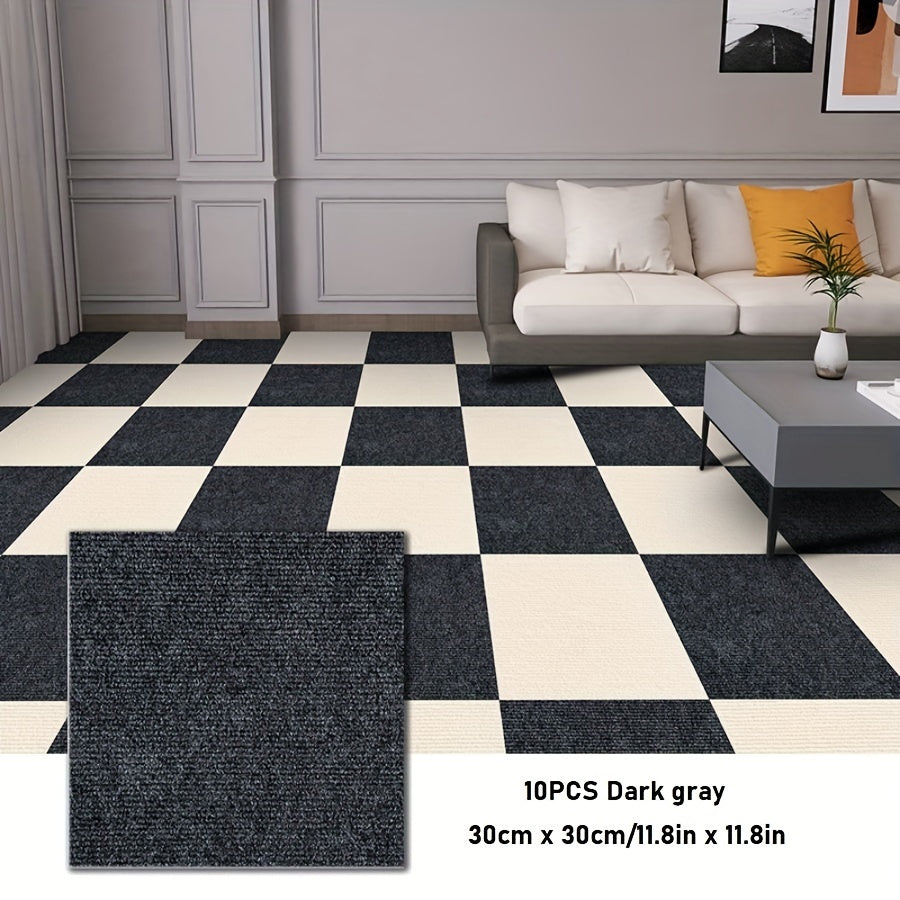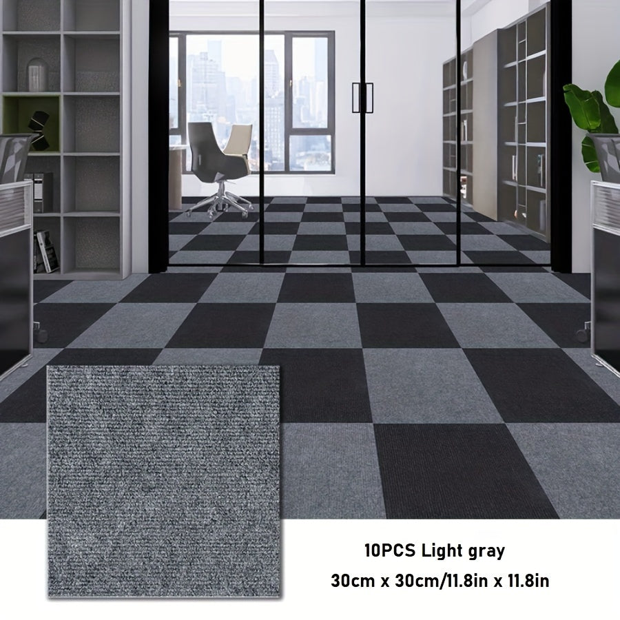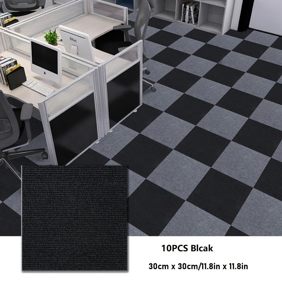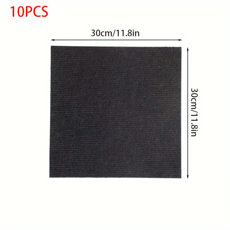 Упаковка из 10 самоклеящихся ковровых плиток для легкой установки — нескользящие и долговечные, идеально подходят для гостиной, спальни и офиса. Не оставляют следов и рекомендуются только для химчистки.