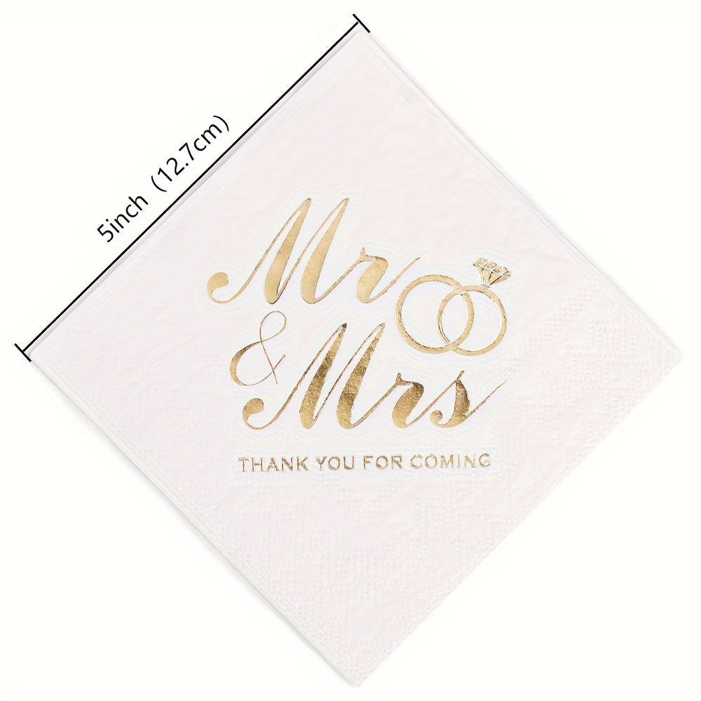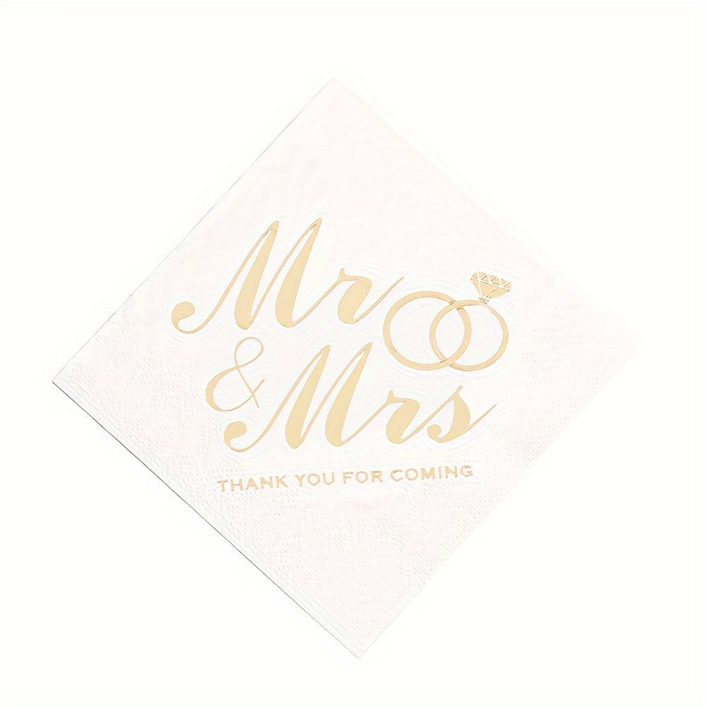 Упаковка из 100 одноразовых салфеток с изображением колец господина и госпожи для свадеб и вечеринок