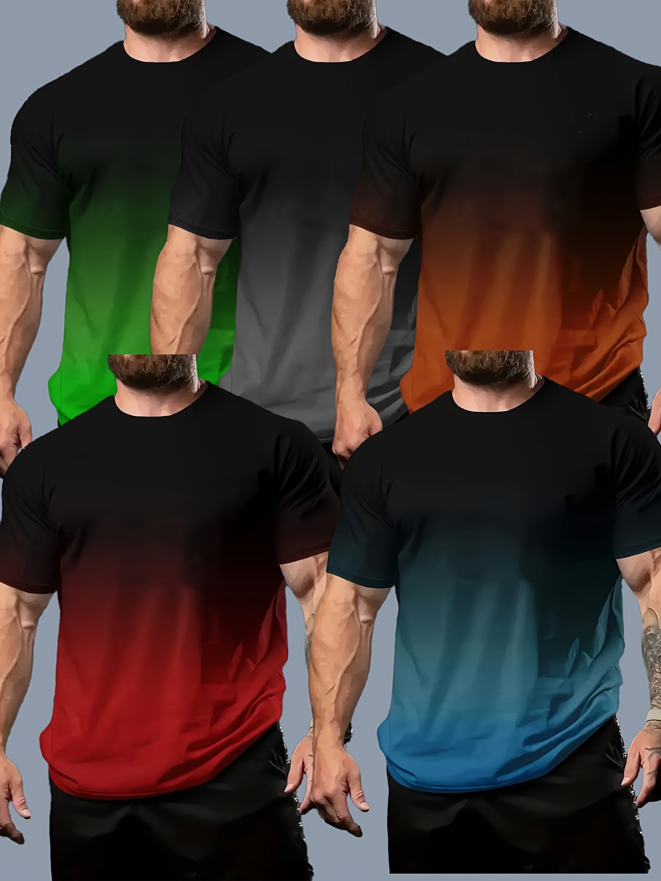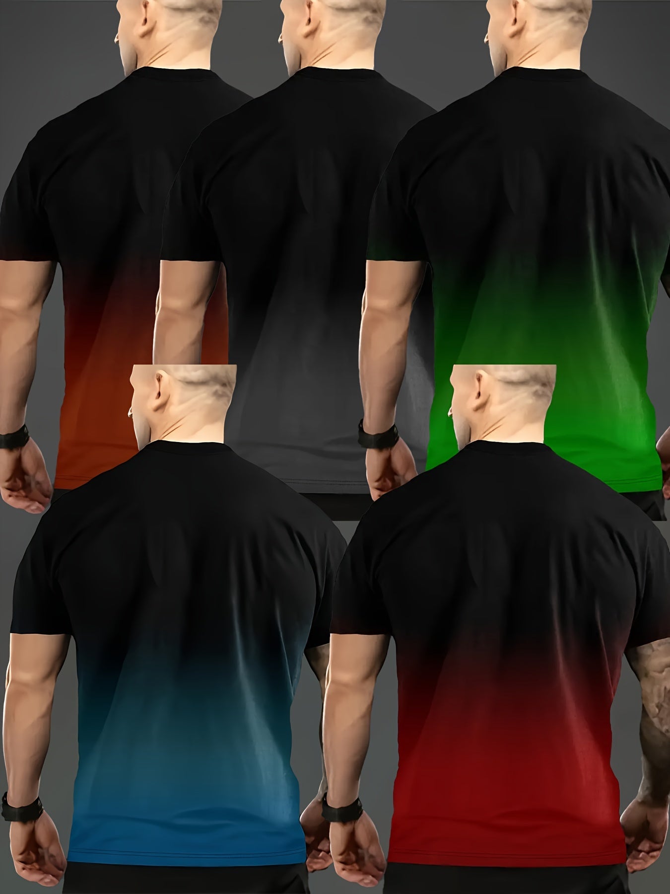Набор из 5 повседневных коротких рукавов для мужчин больших размеров с градиентным цветом и круглым вырезом