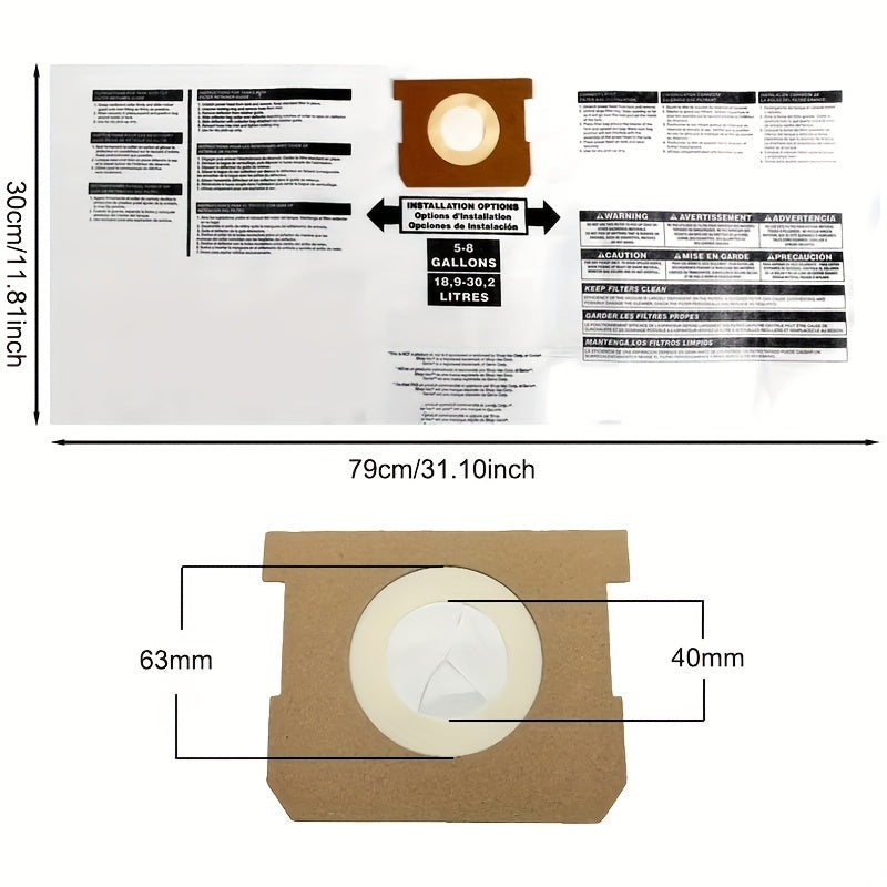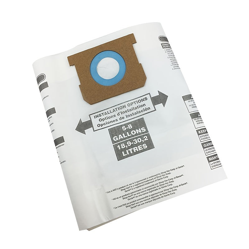 Пакет из 5 мешков для пылесосов Shop Vac - Совместим с пылесосами объемом 18.93-30.28 л - Повышает эффективность уборки и долговечность