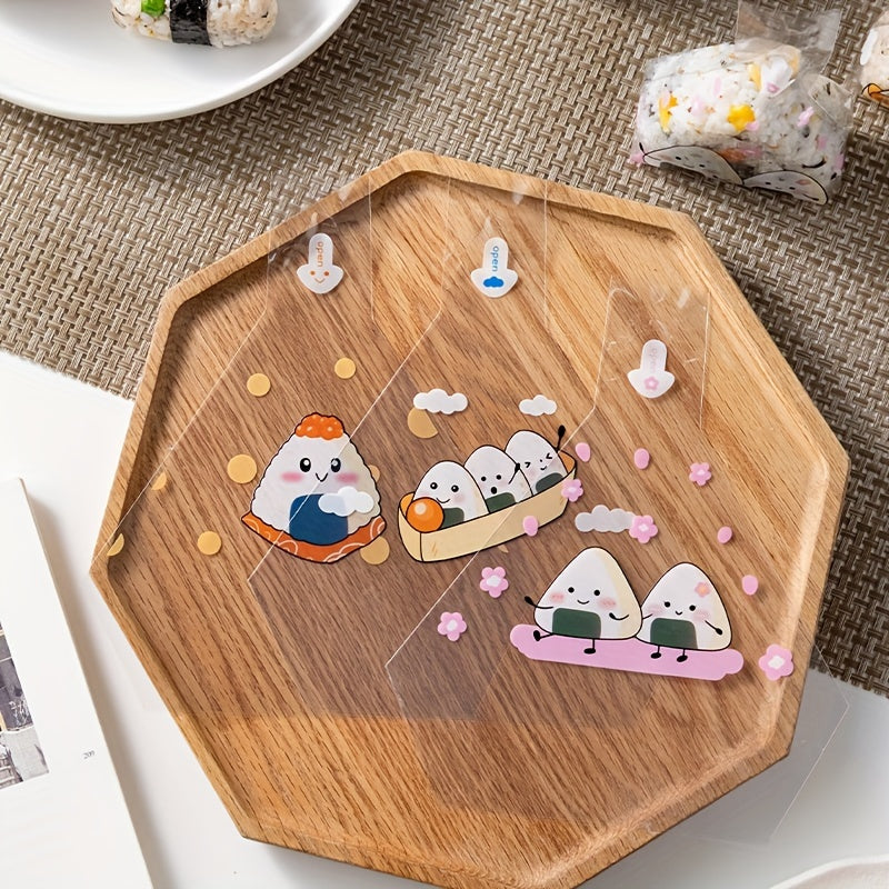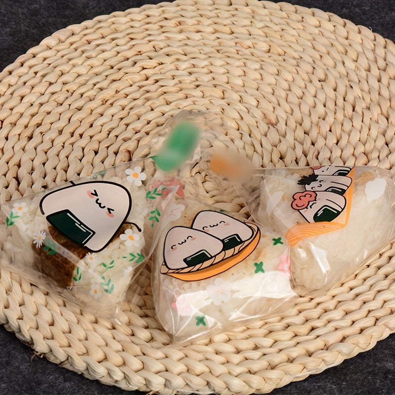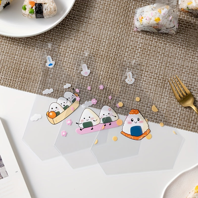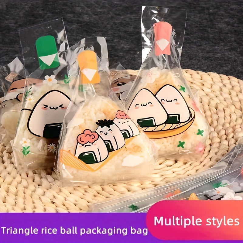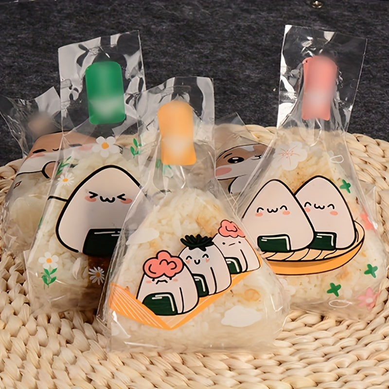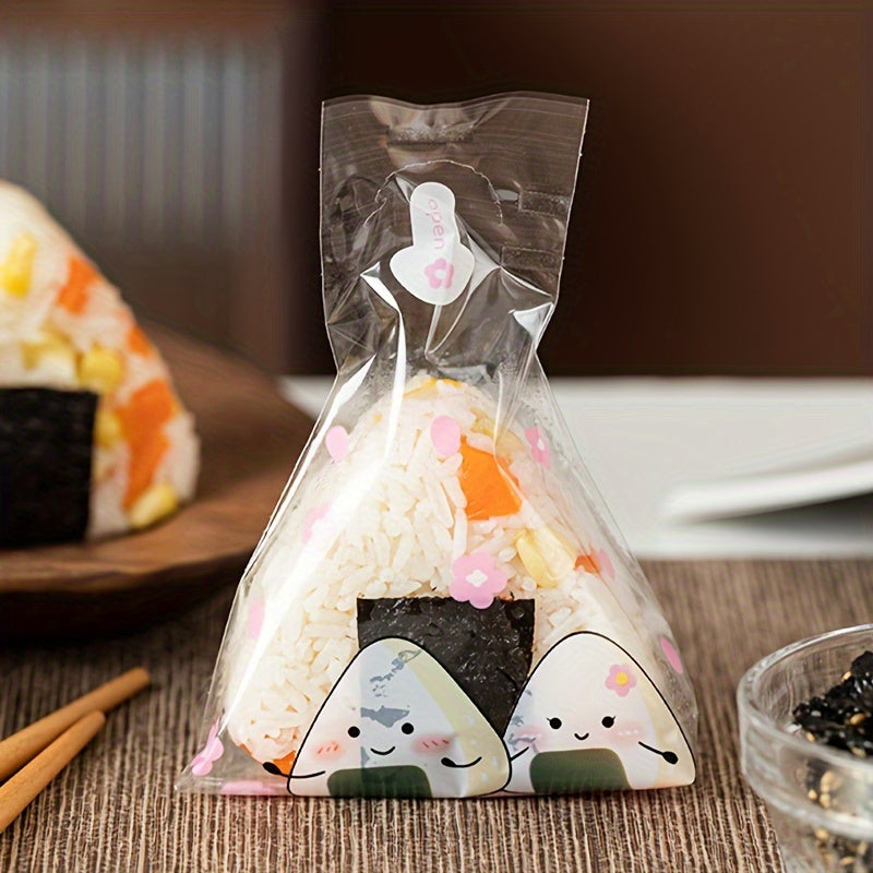 Упаковка из 50 милых треугольных сумок для рисовых шариков-суши - Изготовлены из пищевого полипропилена (PP), безопасные для микроволновой печи обертки нори, многоразовые сумки для онигири.