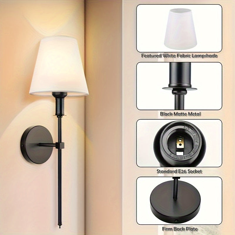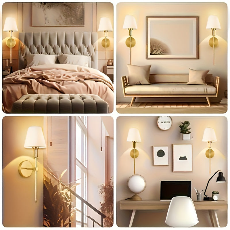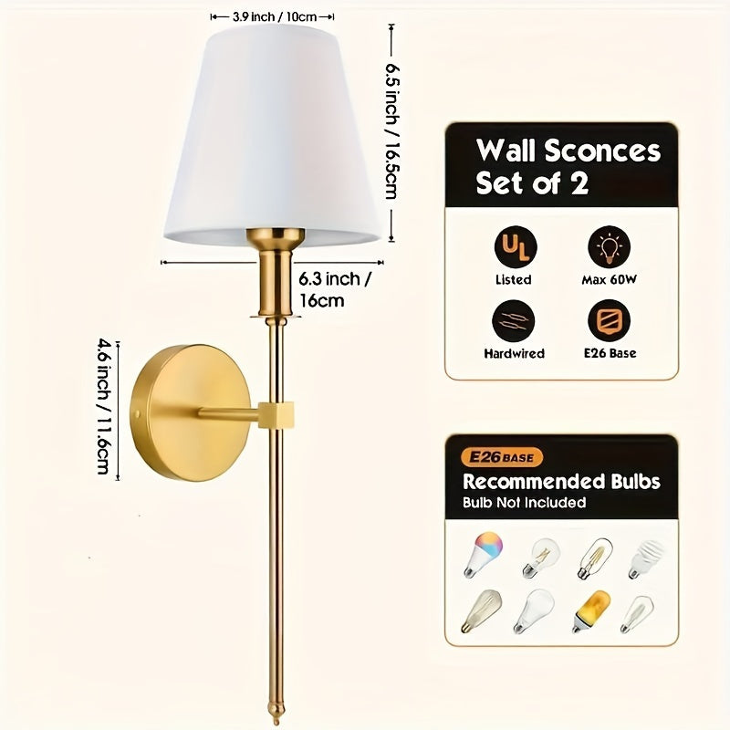 Пара современных настенных бра с белыми тканевыми абажурами, диммируемое металлическое встраиваемое освещение