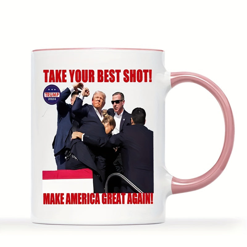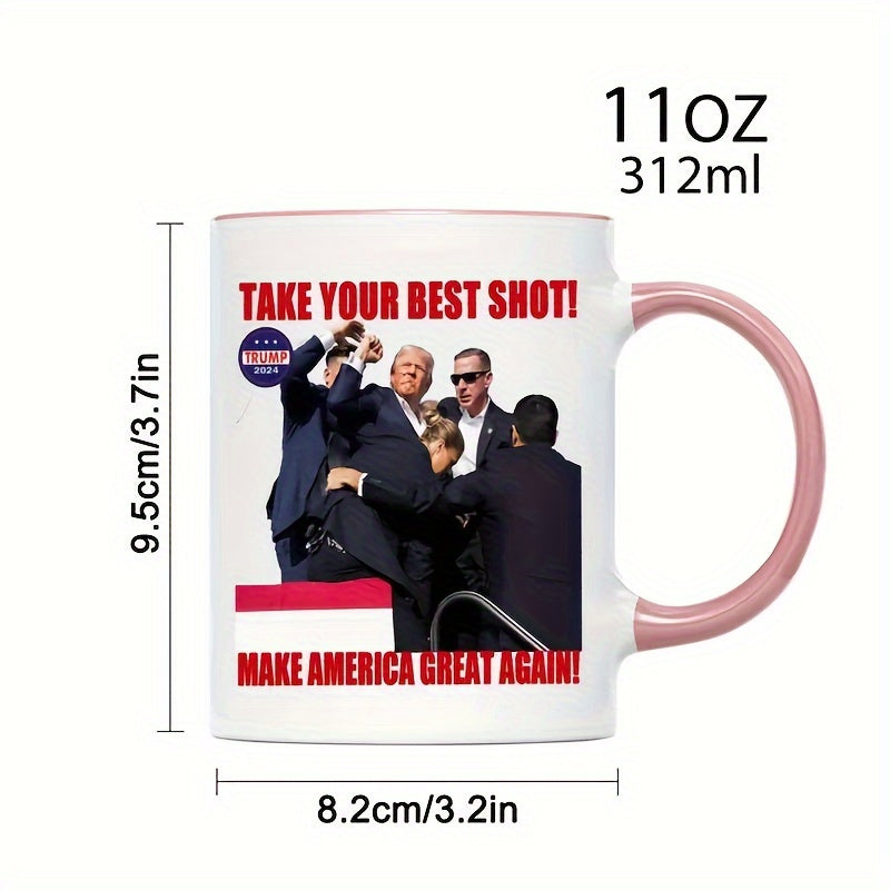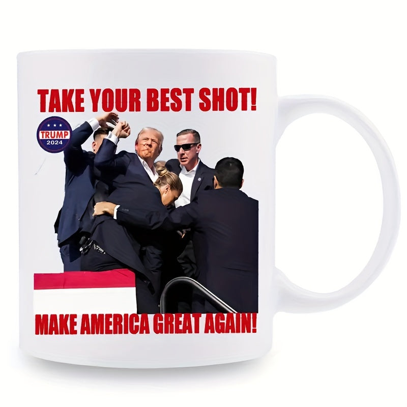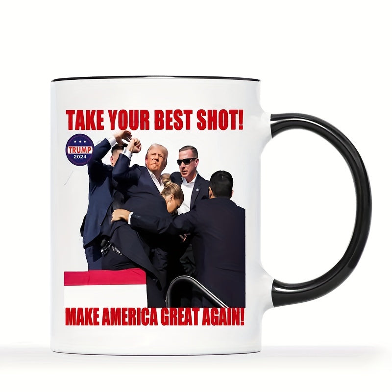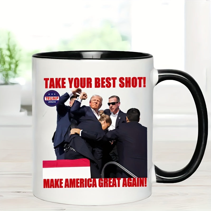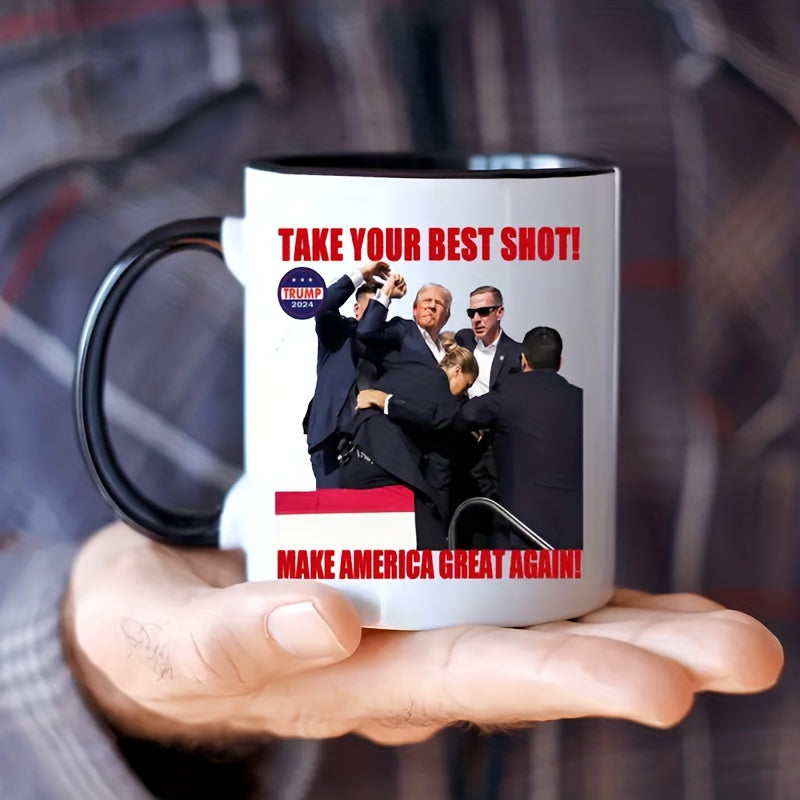 Патриотическая керамическая кружка для сторонников Трампа - размер 11 унций с лозунгами "Делай свой лучший выстрел" и "MAGA" - политический сувенир для взрослых 14+ - памятный предмет кампании Трампа 2024 - отличный подарок для друзей и коллег