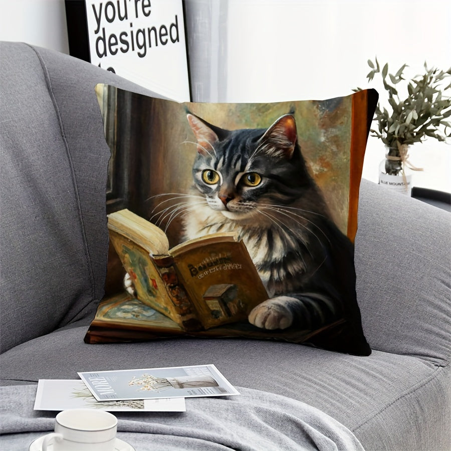 Наволочка из персиковой кожи с милым котом, читающим книгу, дизайн для дома, автомобиля, гостиной