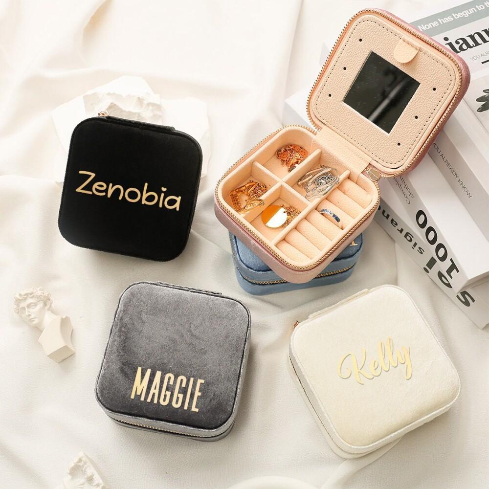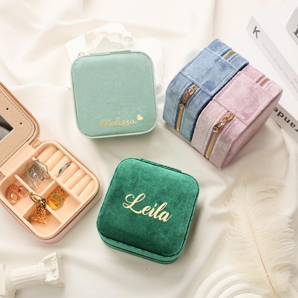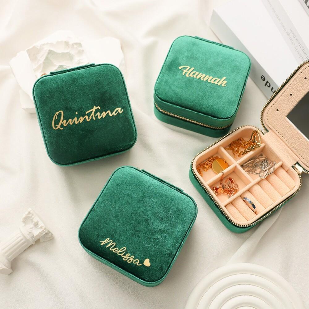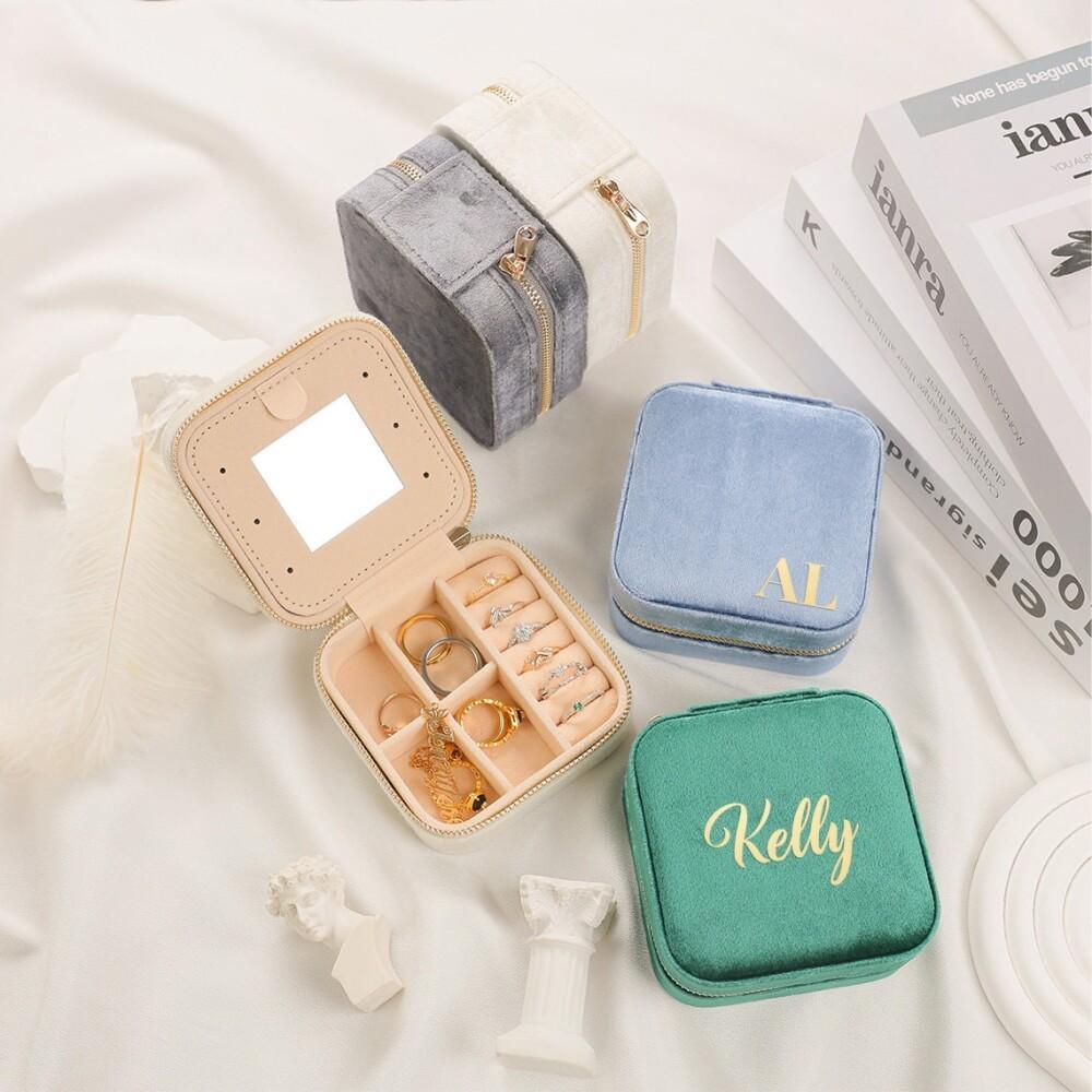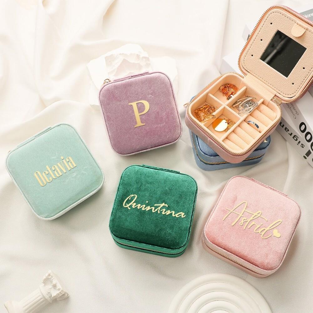 Индивидуальная бархатная шкатулка для украшений для путешествий, подарок подружкам невесты, органайзер для украшений, подарок с именем