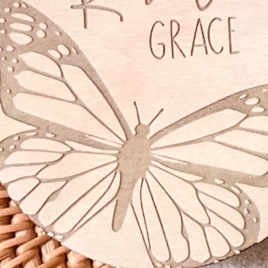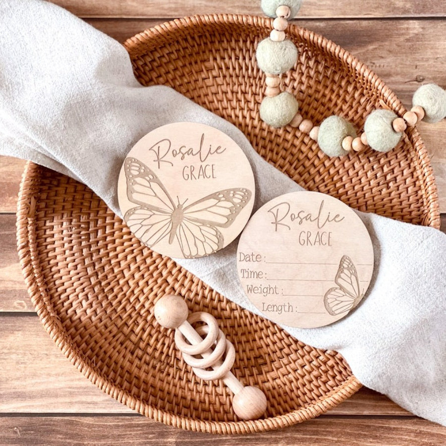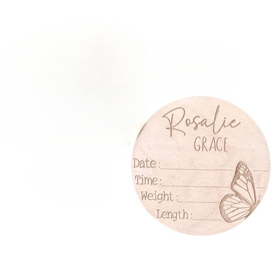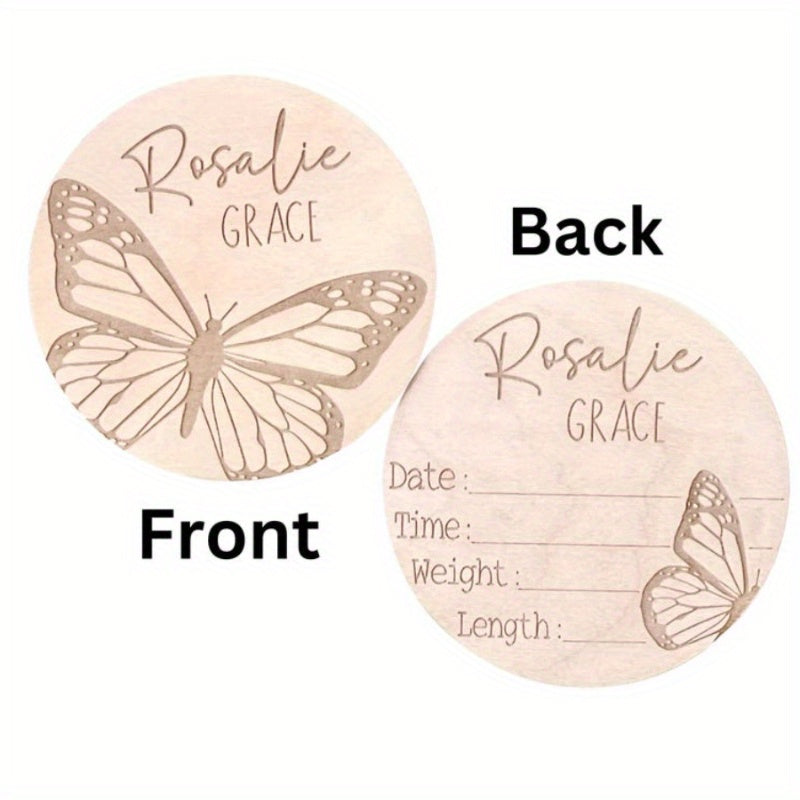 Персонализированная деревянная табличка с объявлением о рождении для Розали Грейс - двусторонний сувенир для новорожденного с гравировкой, идеально подходит для фотосессии в больнице.