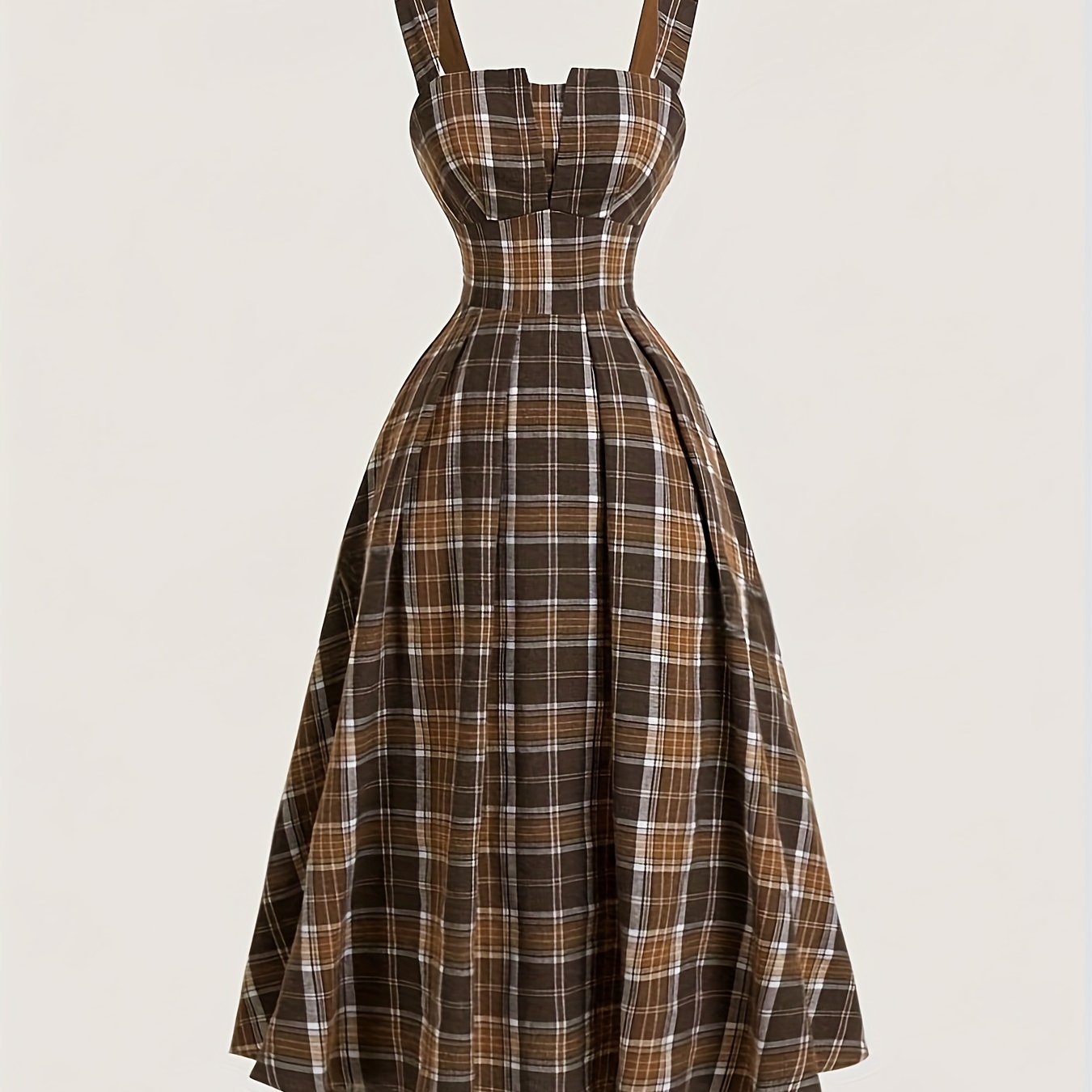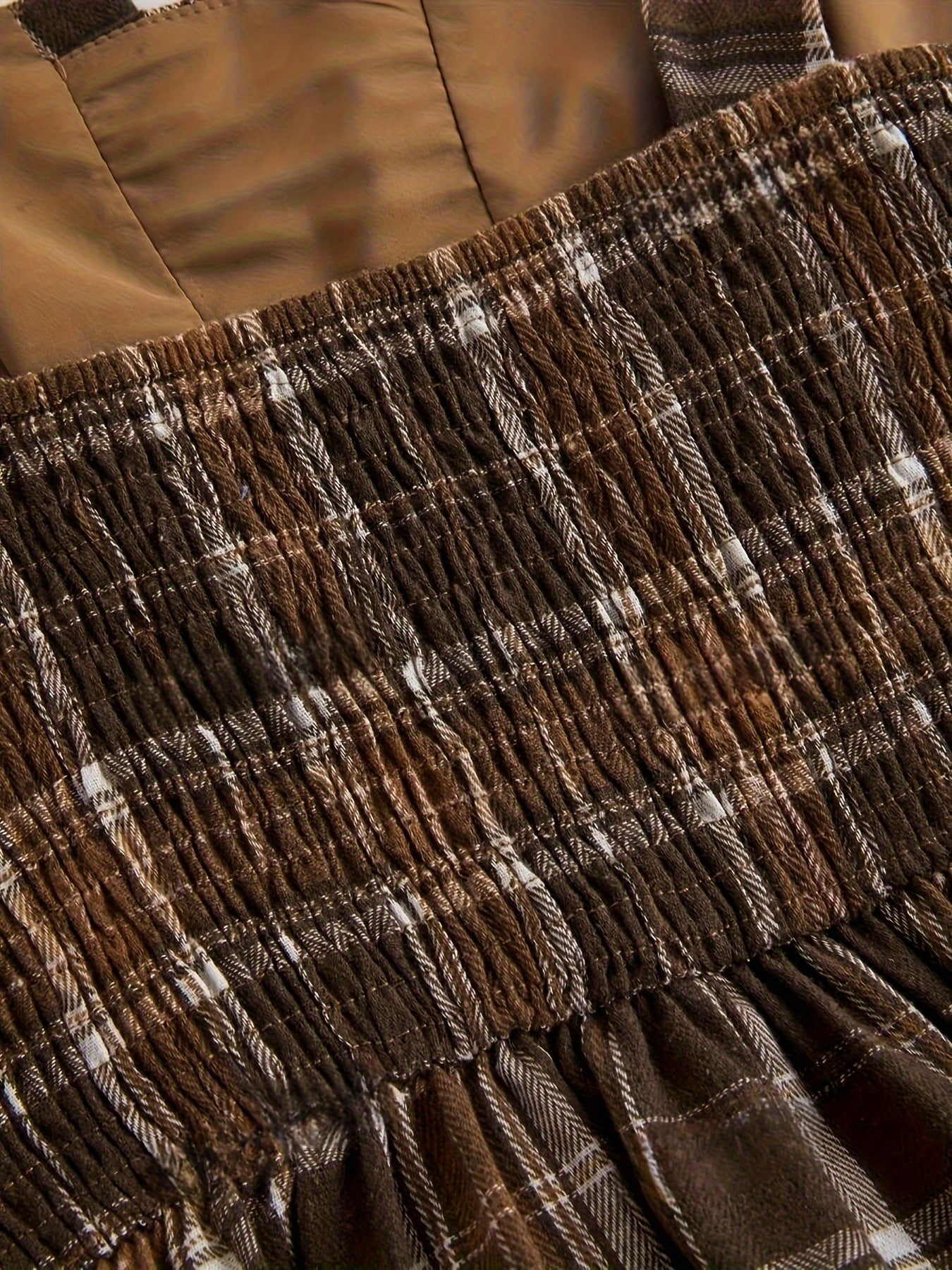 Взрослое платье в клетку длинное с открытыми плечами и сборчатыми деталями