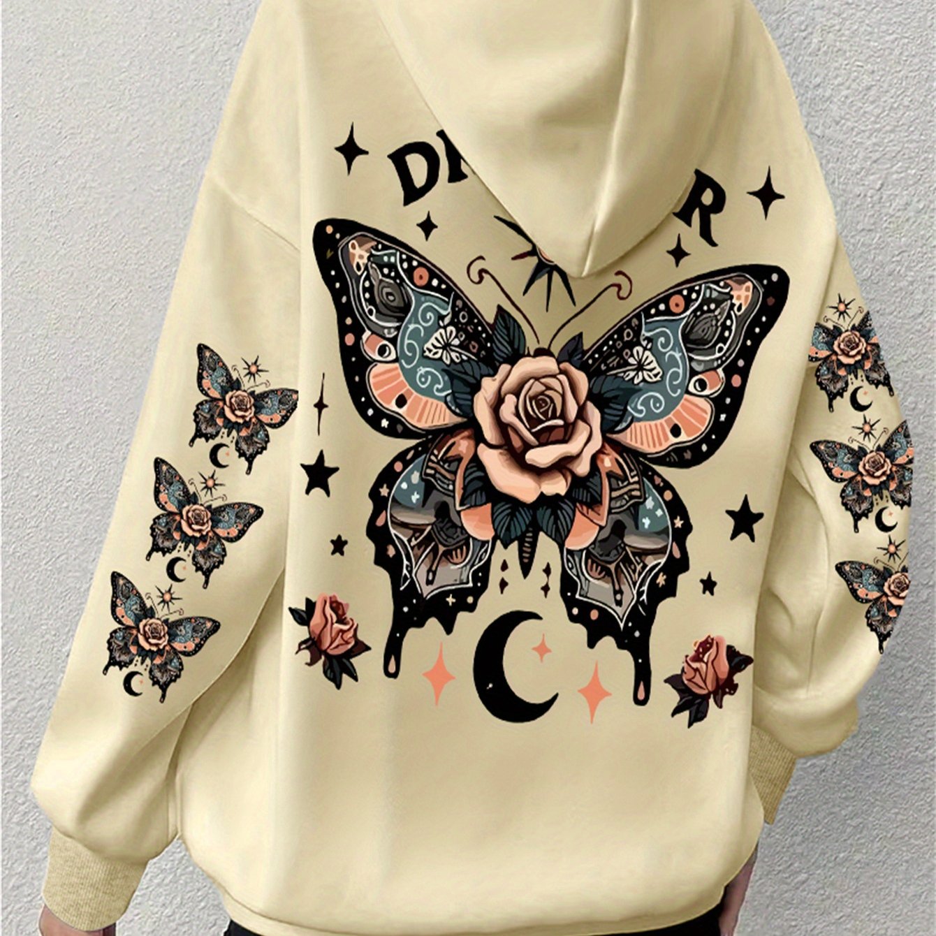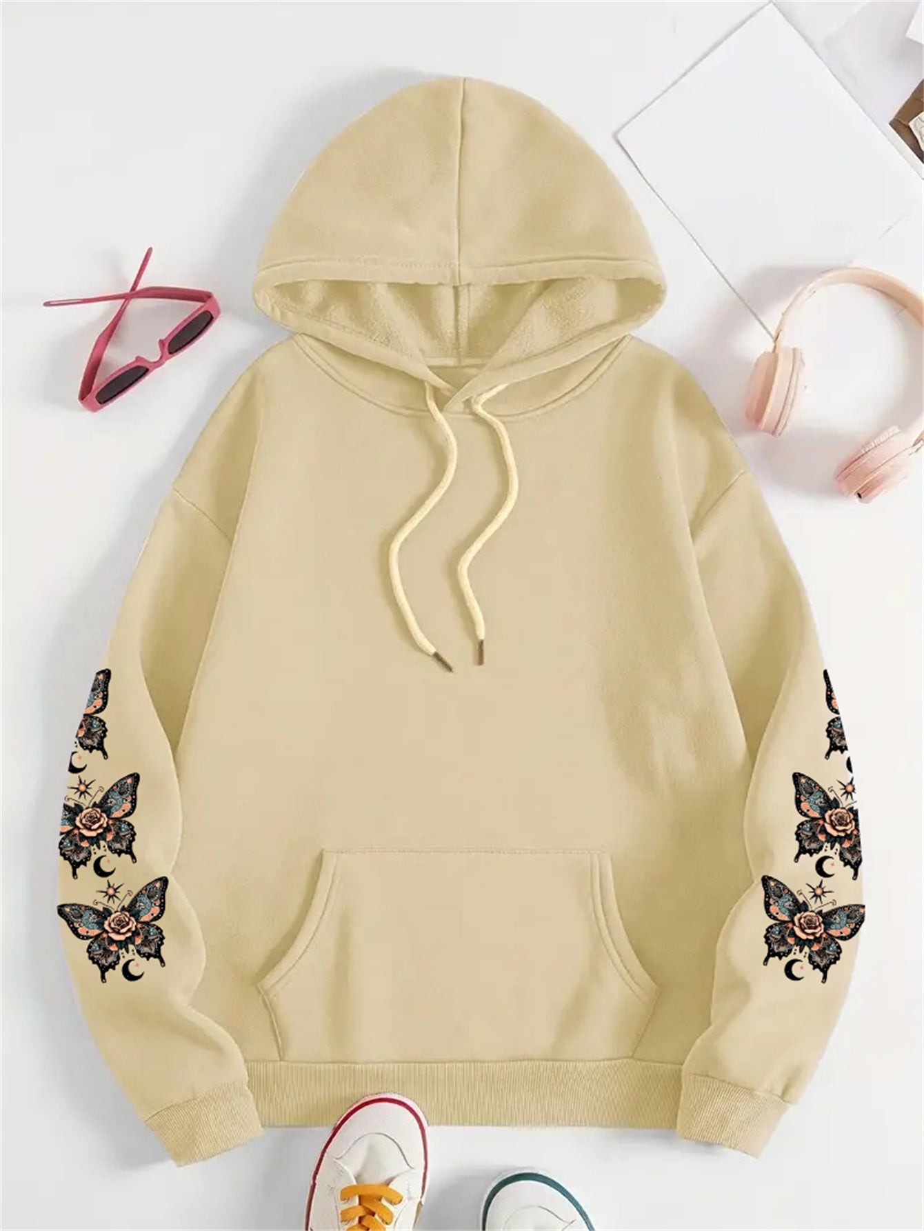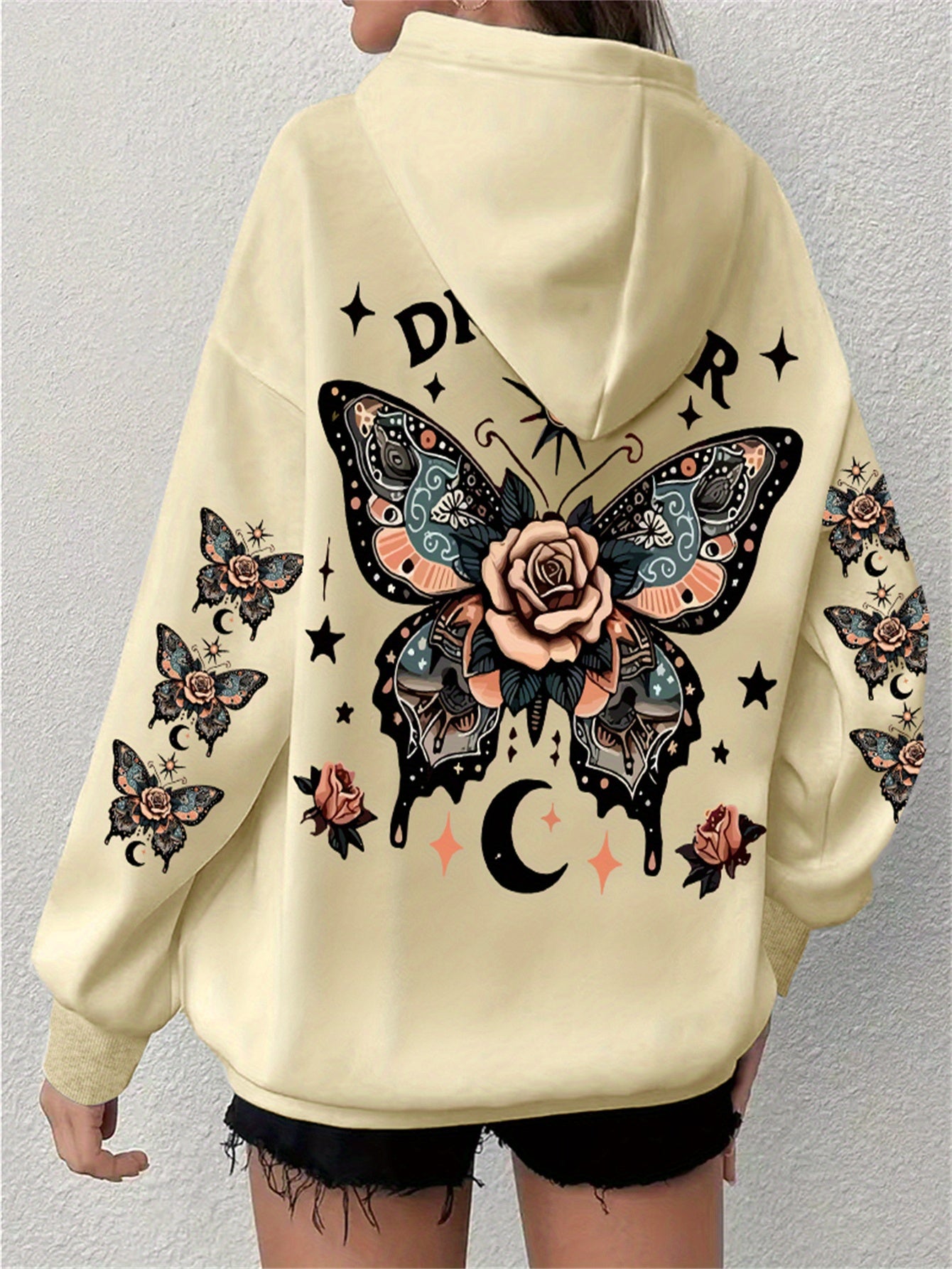 Толстовка с принтом бабочки и регулируемым капюшоном, длинные рукава, повседневная толстовка для осени и зимы