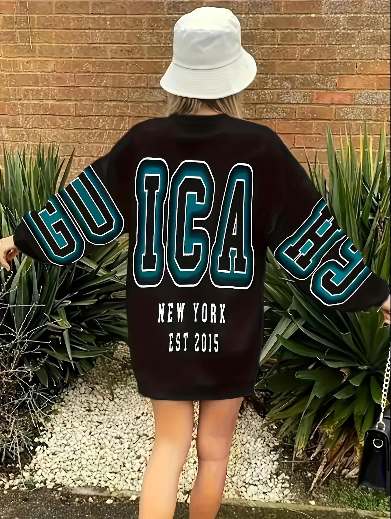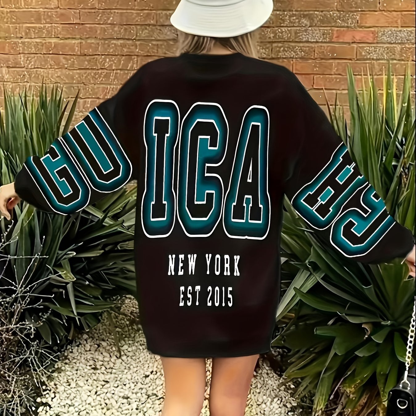 Крупногабаритный повседневный свитшот оверсайз из полиэстера черный, бирюзовый, белый