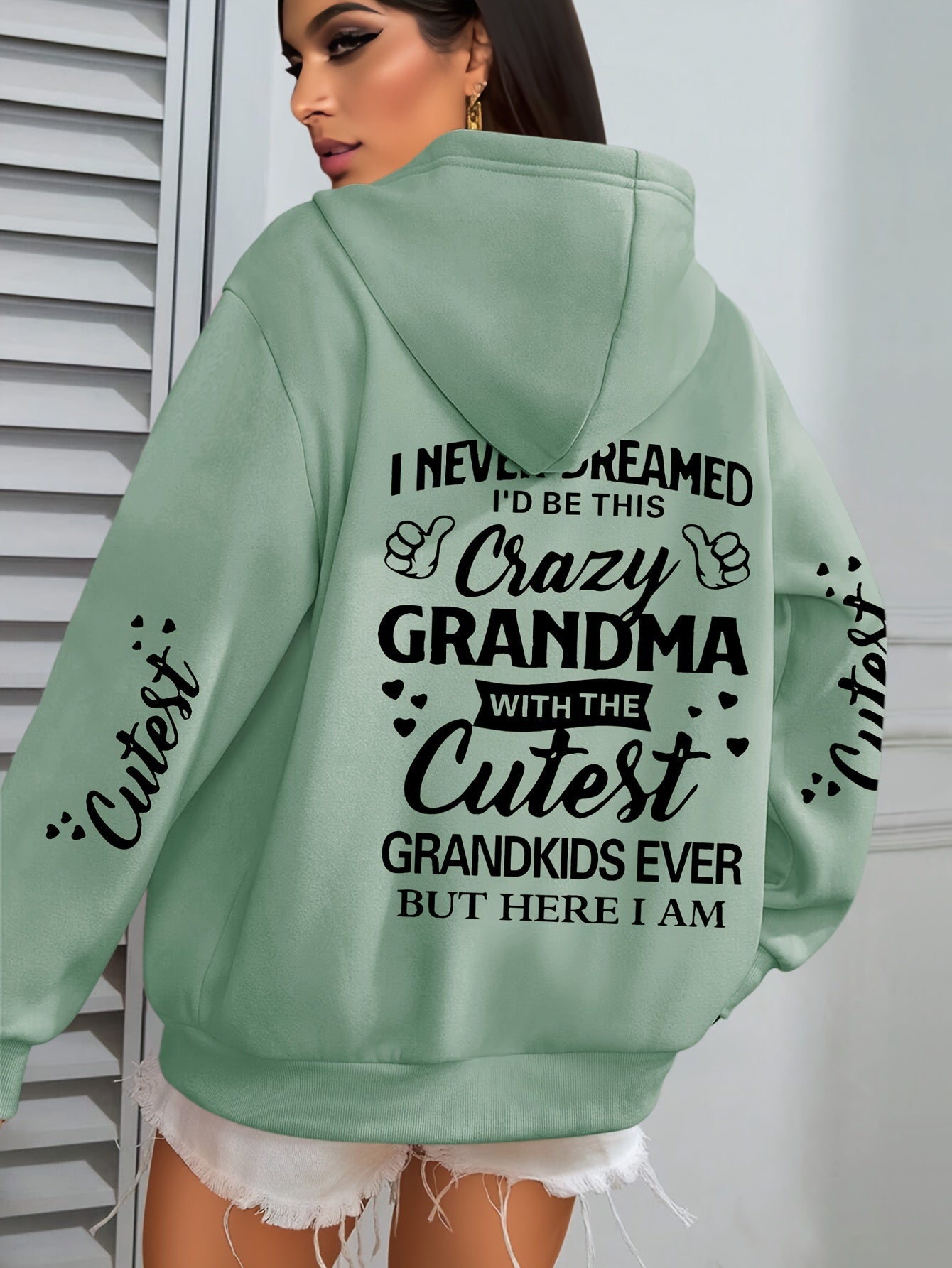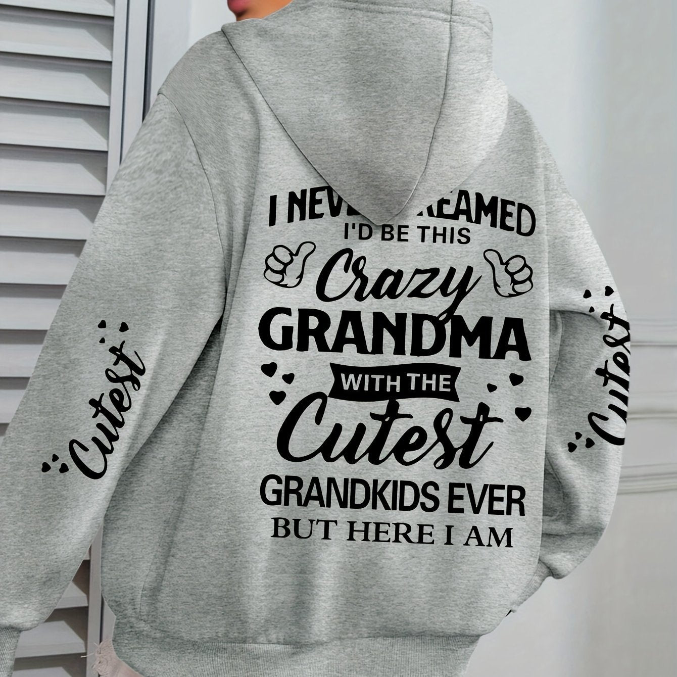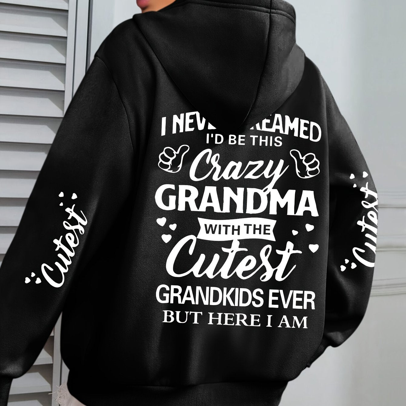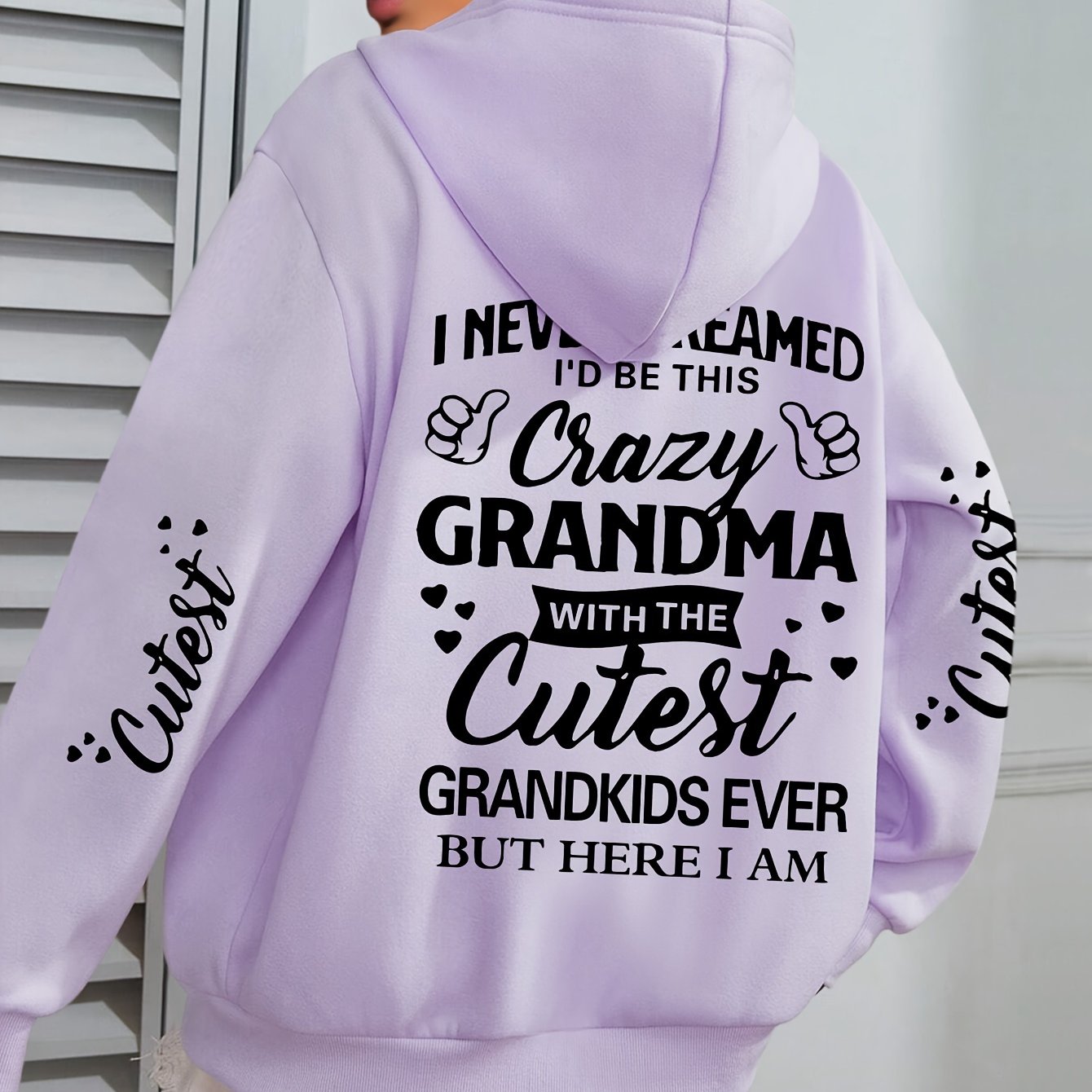 Толстовка с крупным принтом букв Plus Size Crazy для женщин, с длинными рукавами, повседневная, с капюшоном и карманами на шнурке