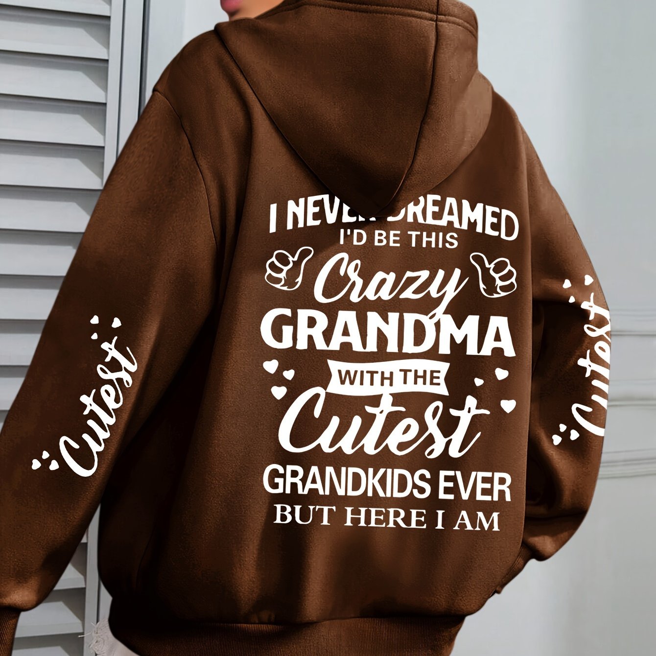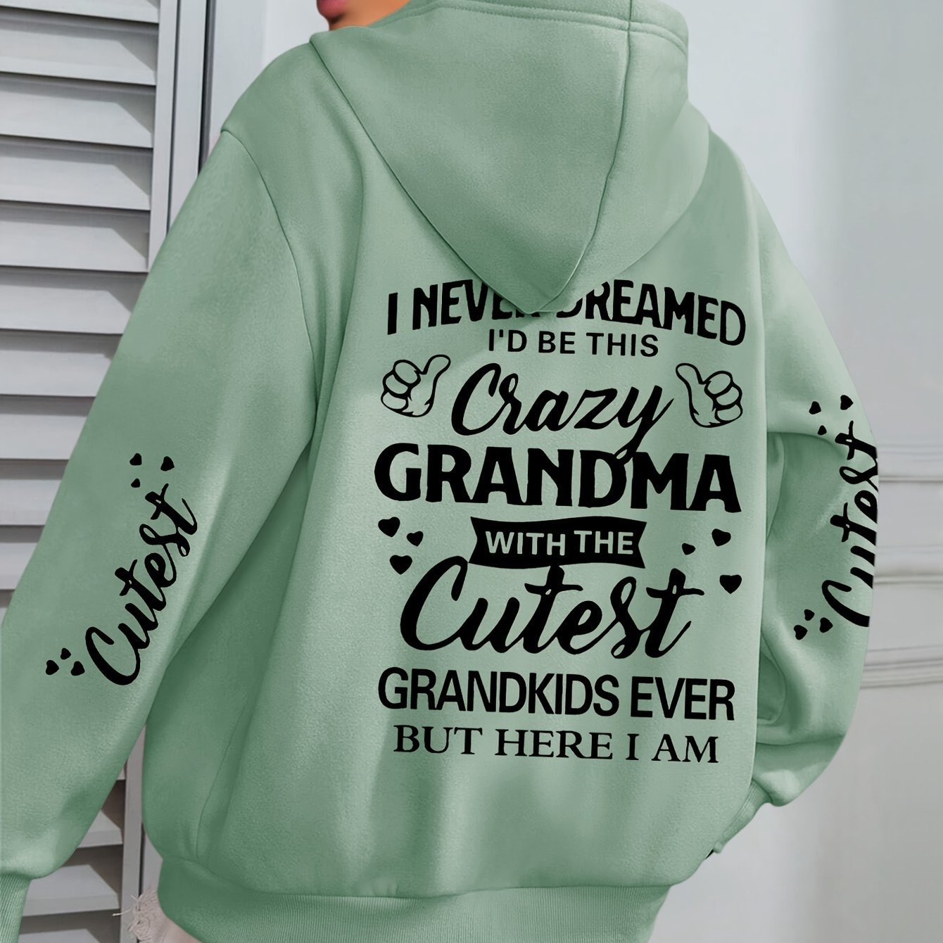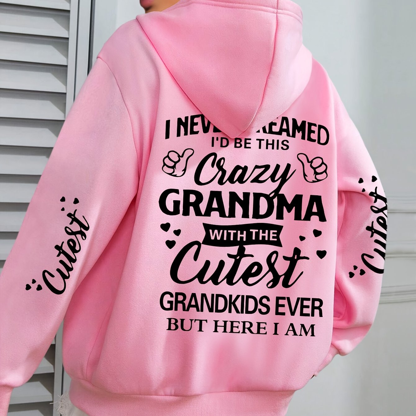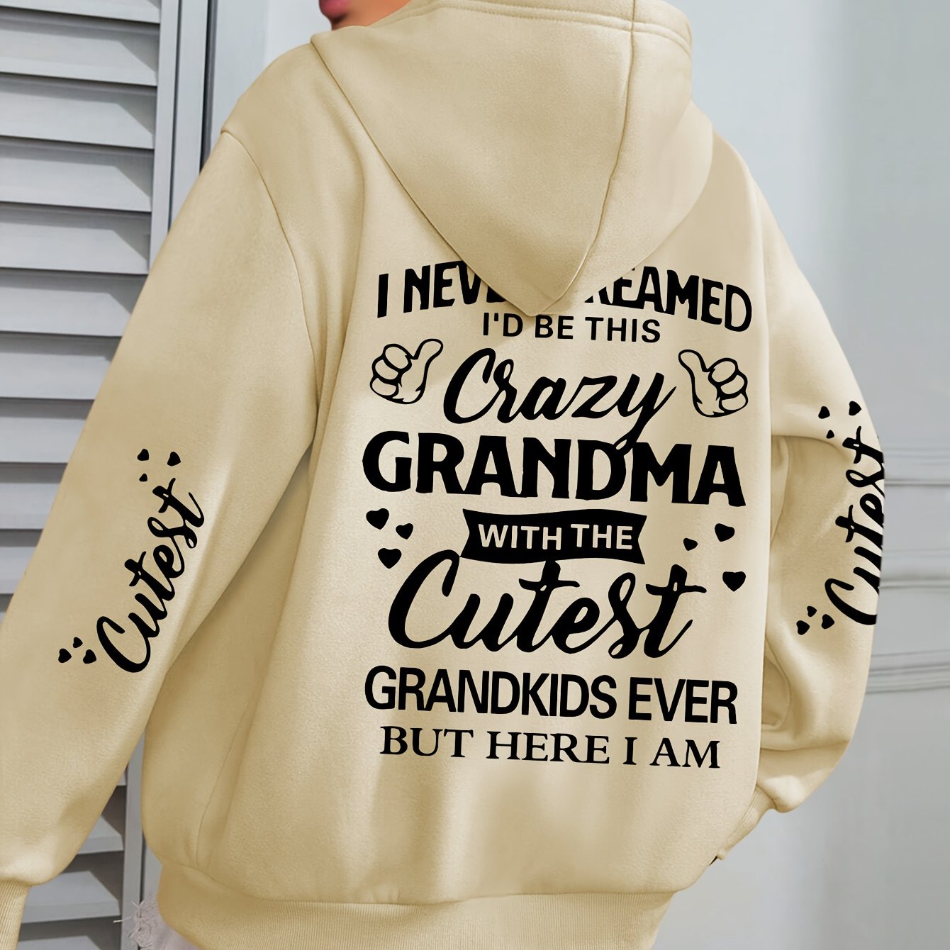 Толстовка с крупным принтом букв Plus Size Crazy для женщин, с длинными рукавами, повседневная, с капюшоном и карманами на шнурке