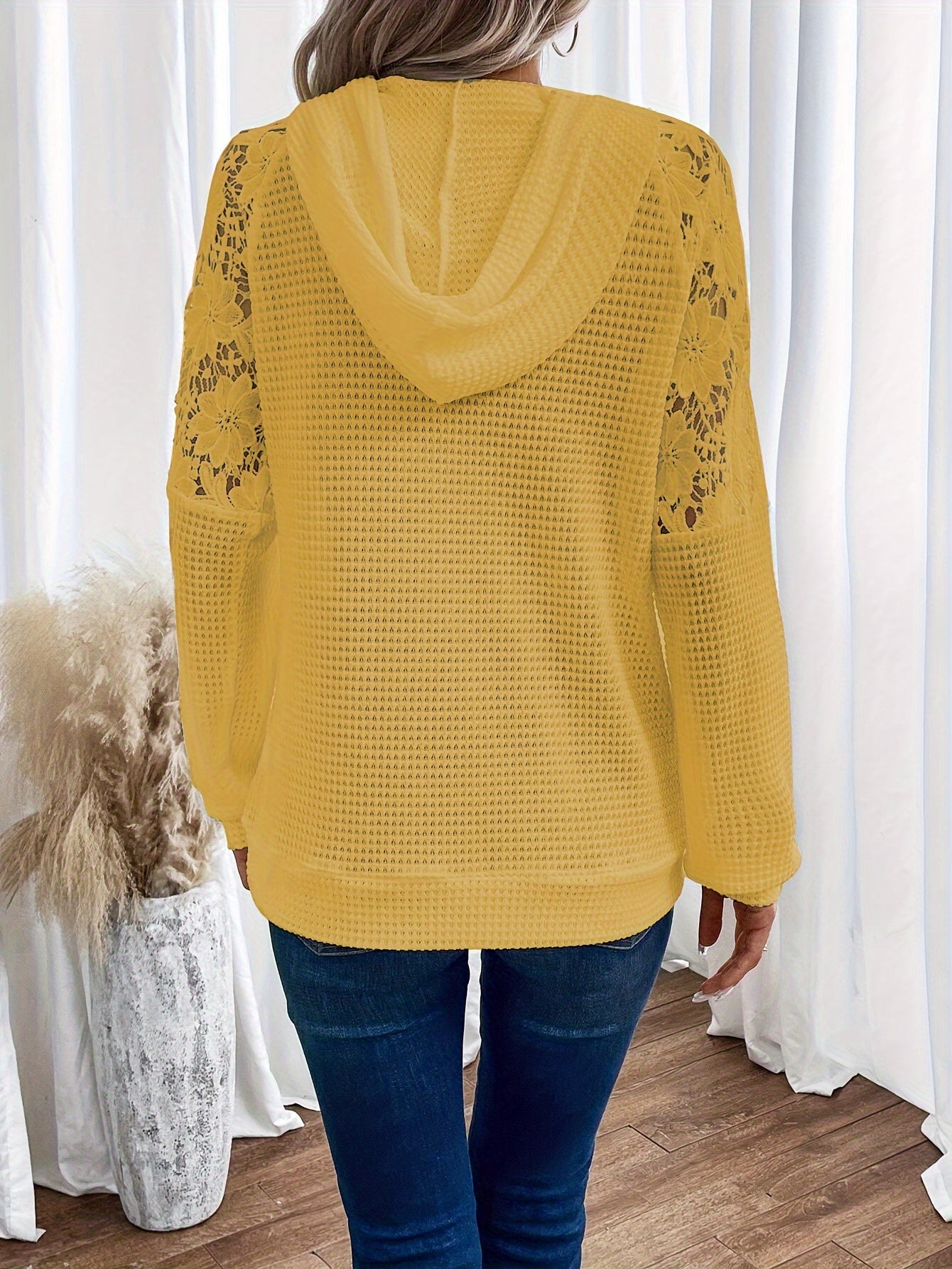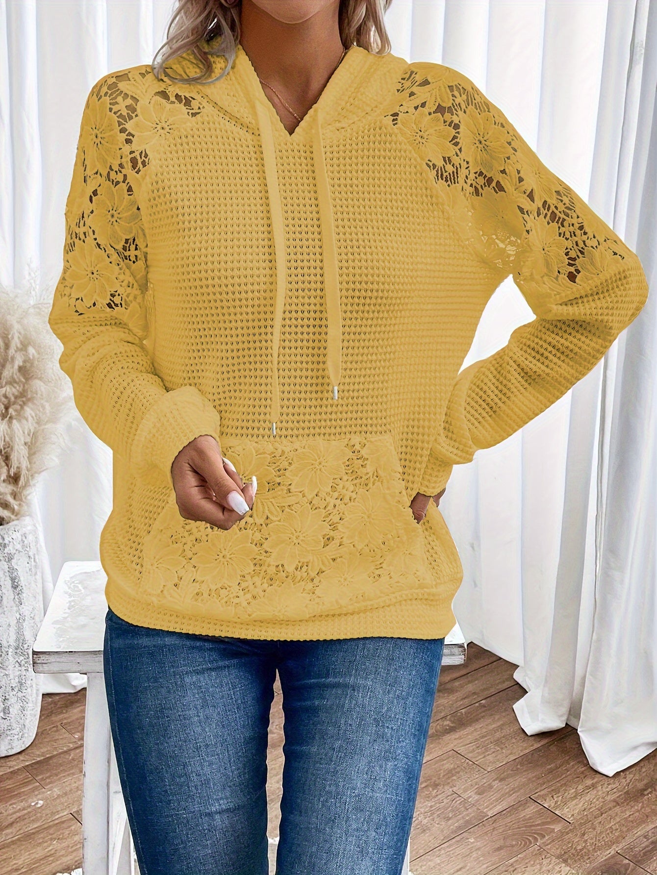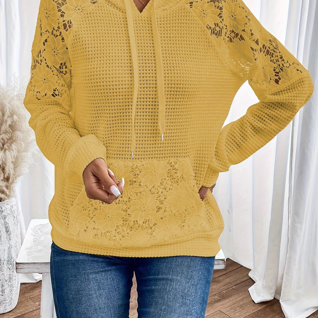 Тёплый свитшот для женщин больших размеров с кружевной вставкой и лоскутным дизайном