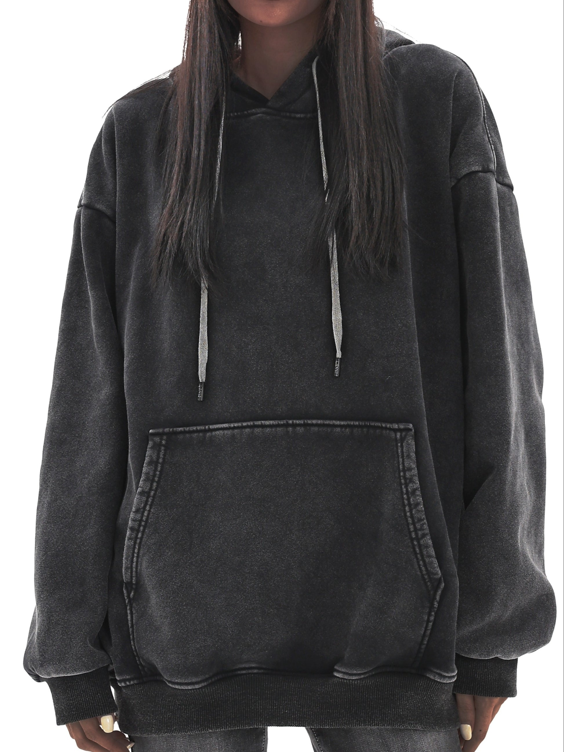 Толстовка с капюшоном и шнурком для полных, повседневная, с длинными рукавами, свитшот для осени и зимы
