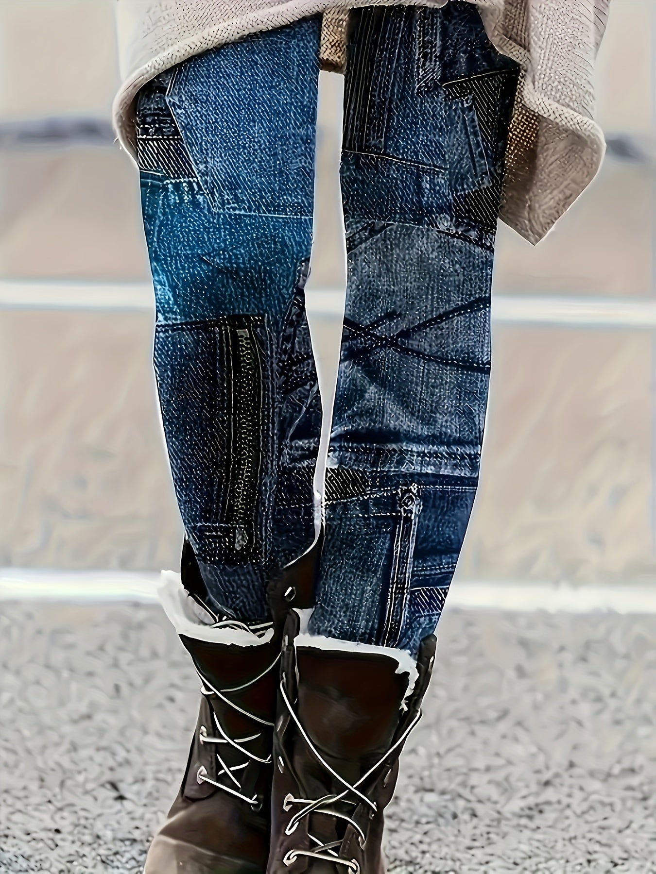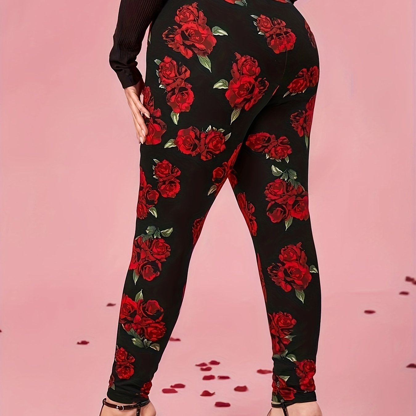 Леггинсы с цветочным принтом для полных, с флисовой подкладкой, с высокой талией, узкие штаны для женщин