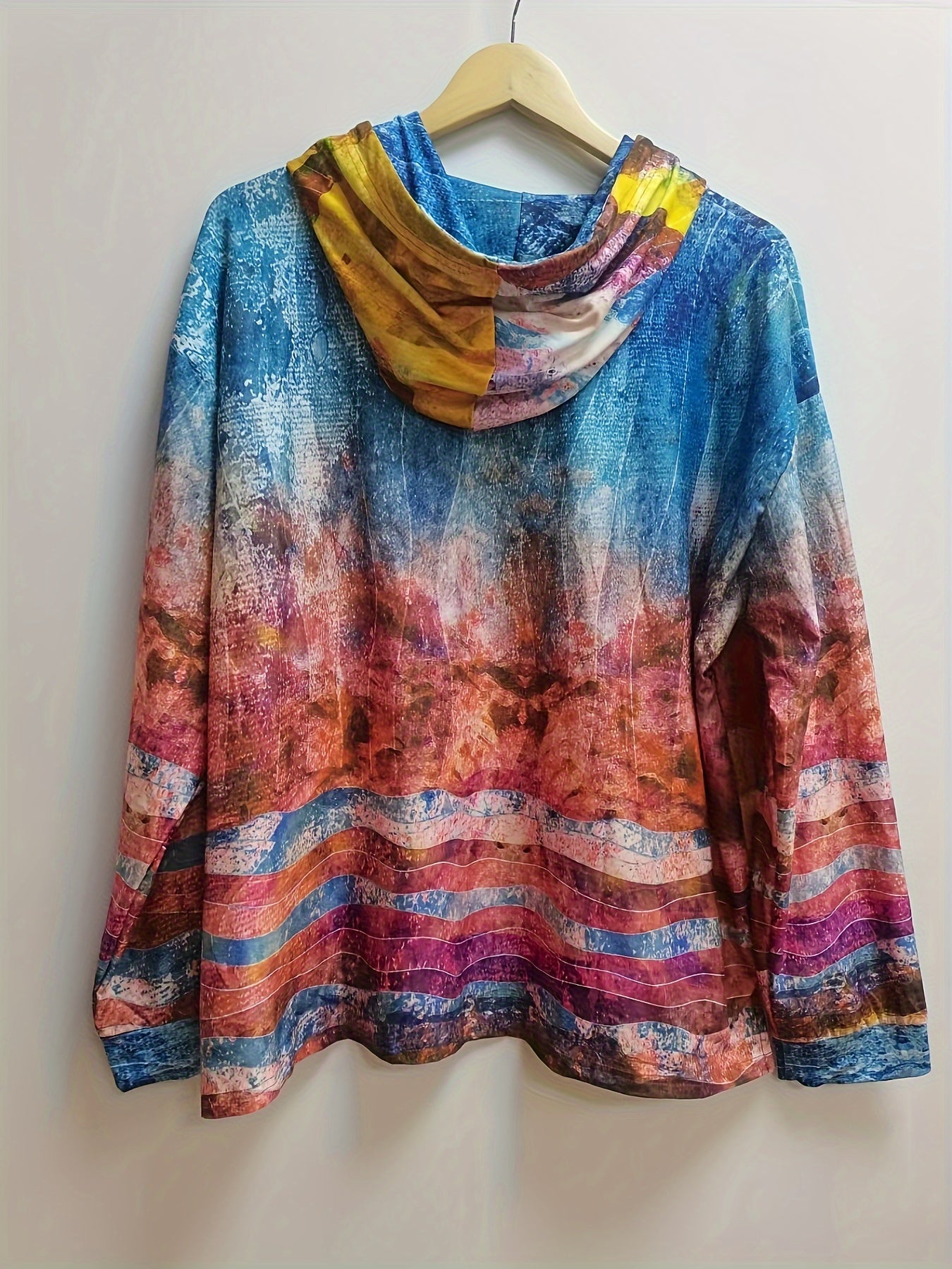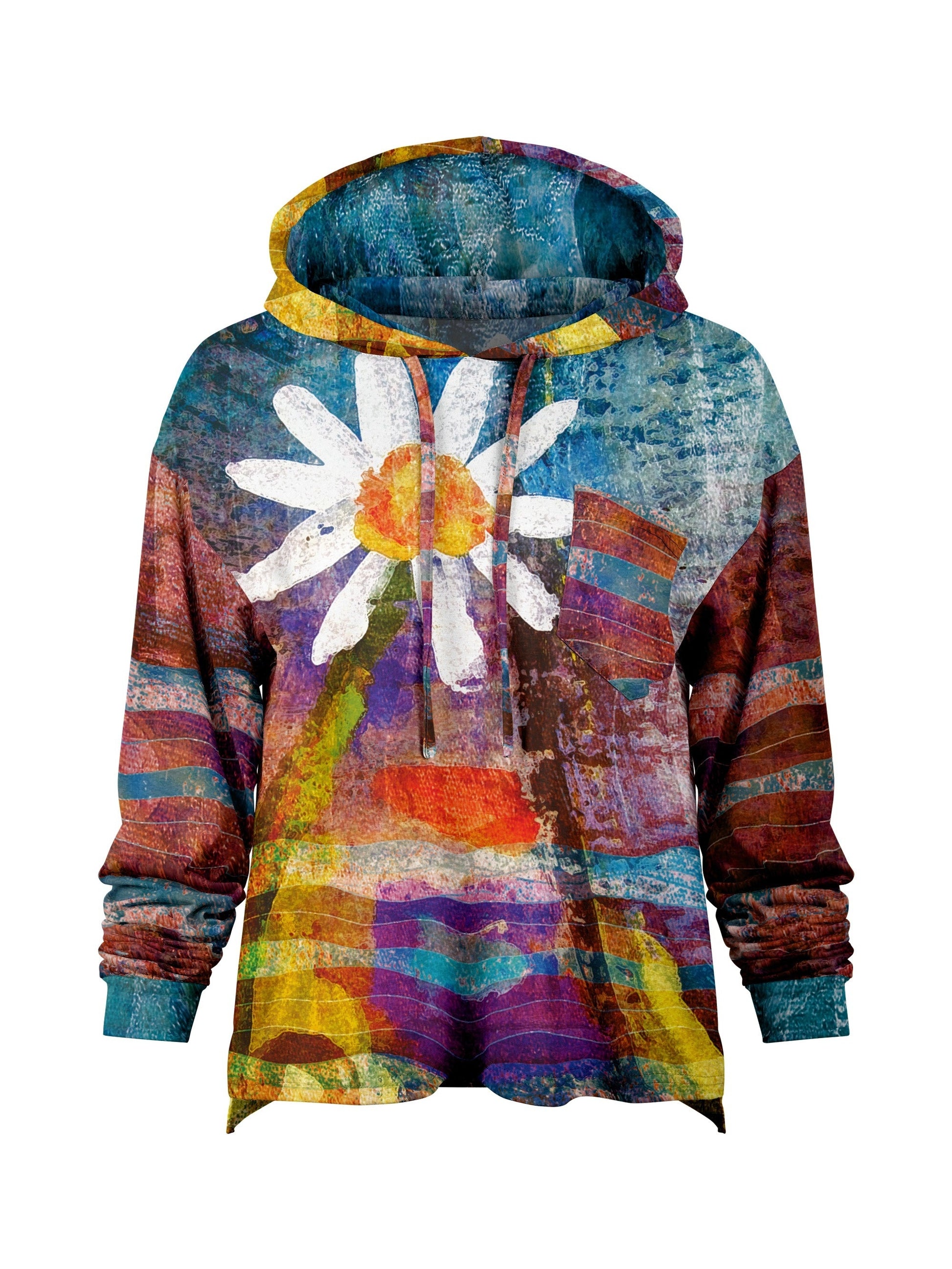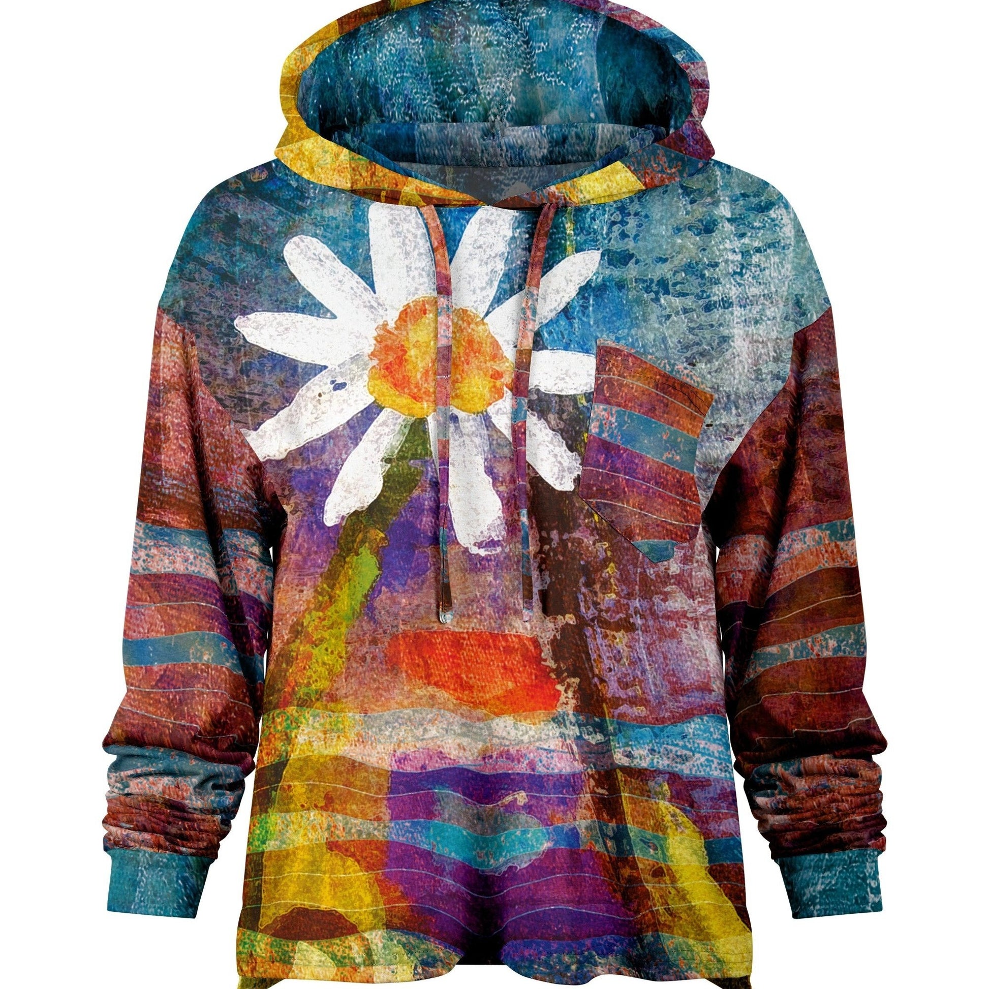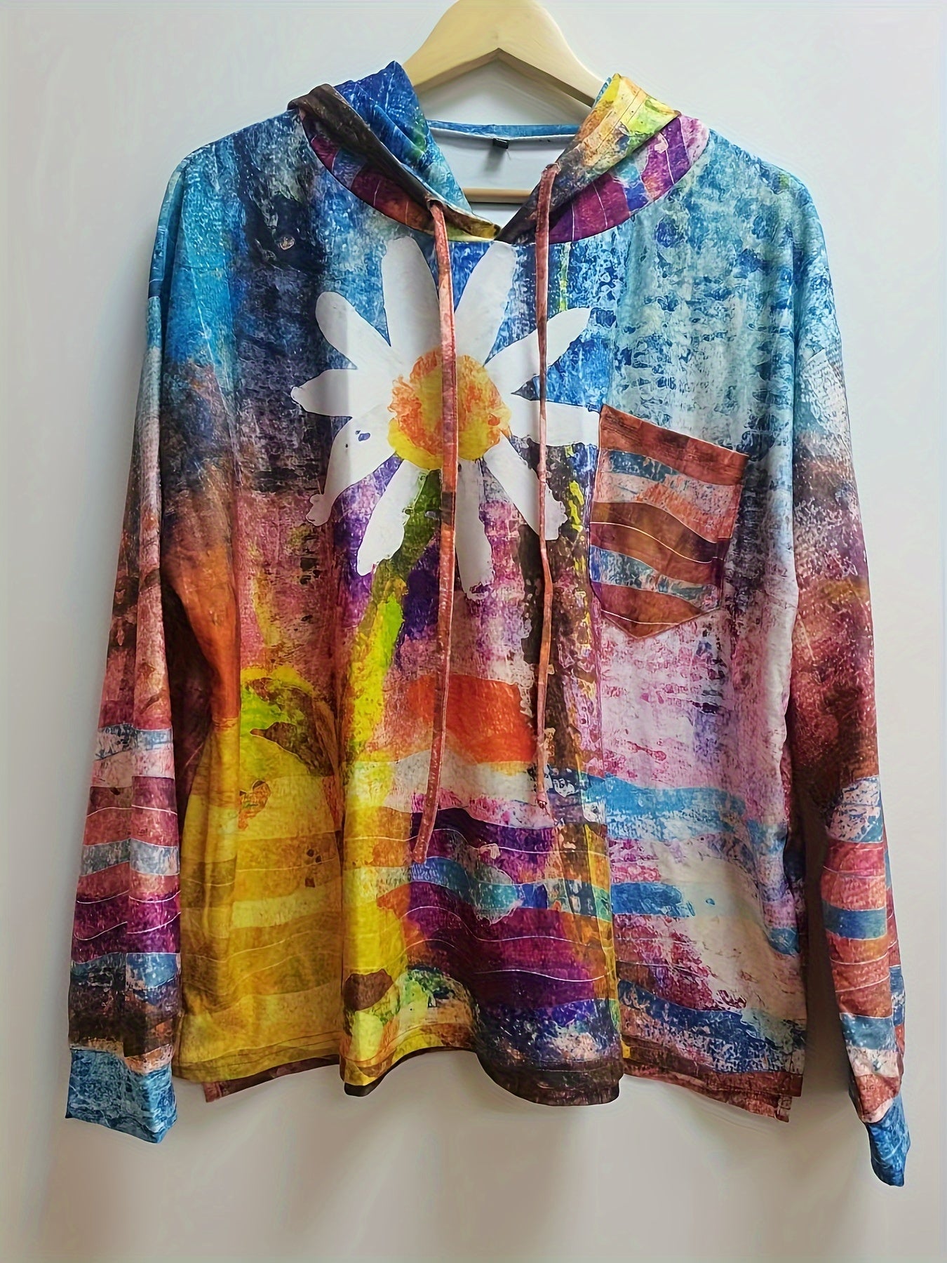 Толстовка с цветочным принтом и регулируемым капюшоном для полных женщин, длинные рукава, осень-зима