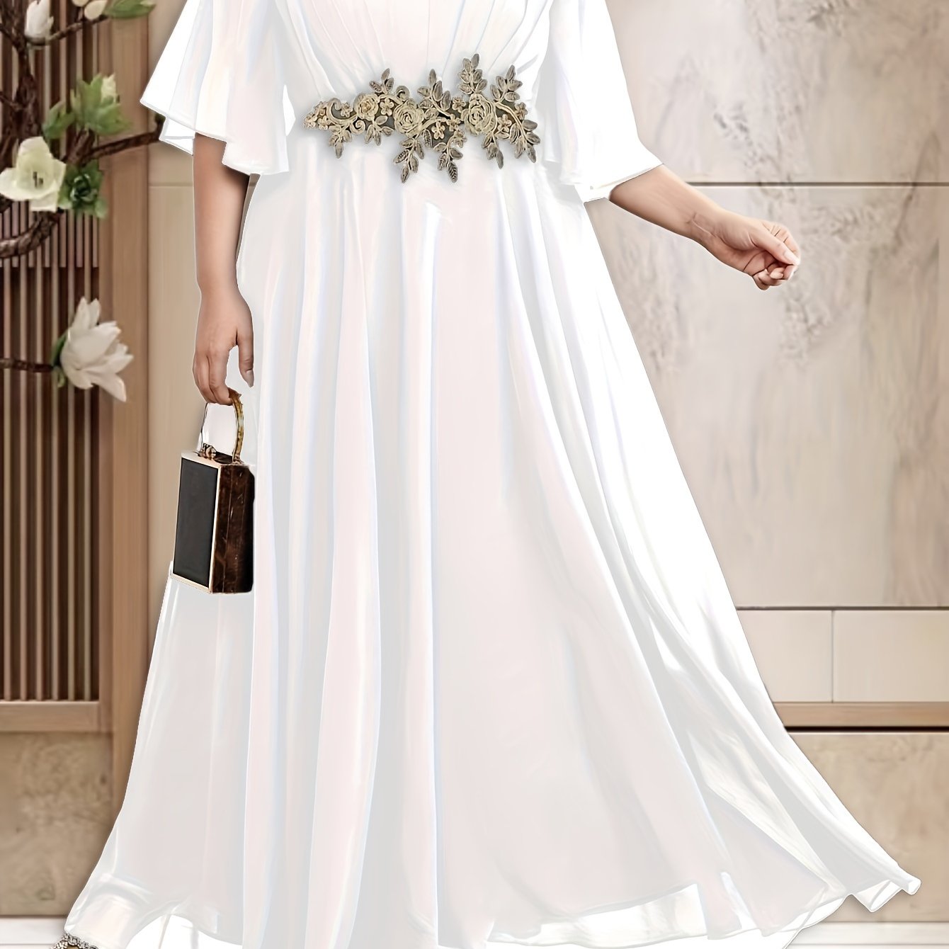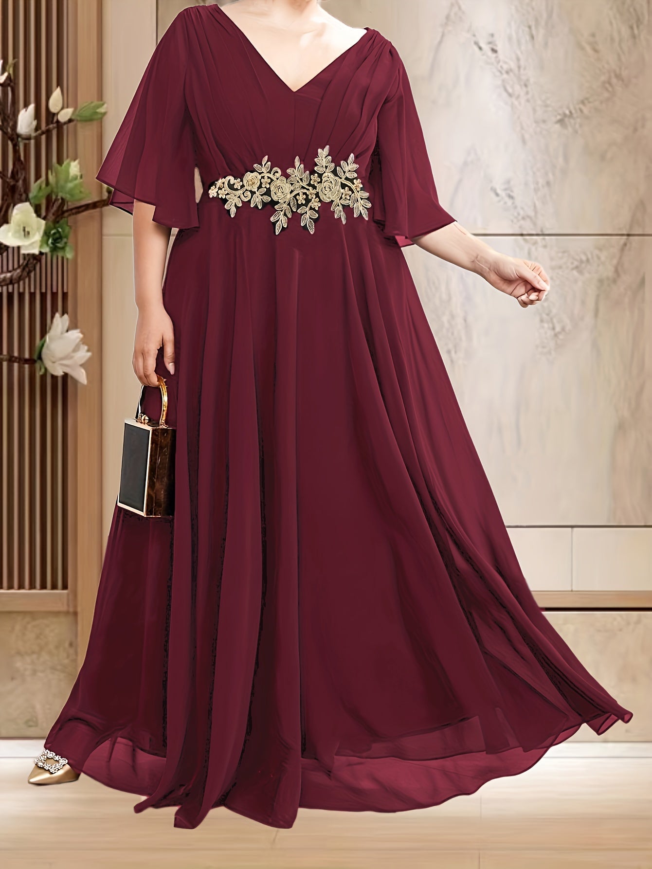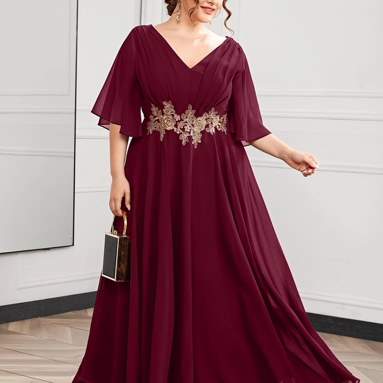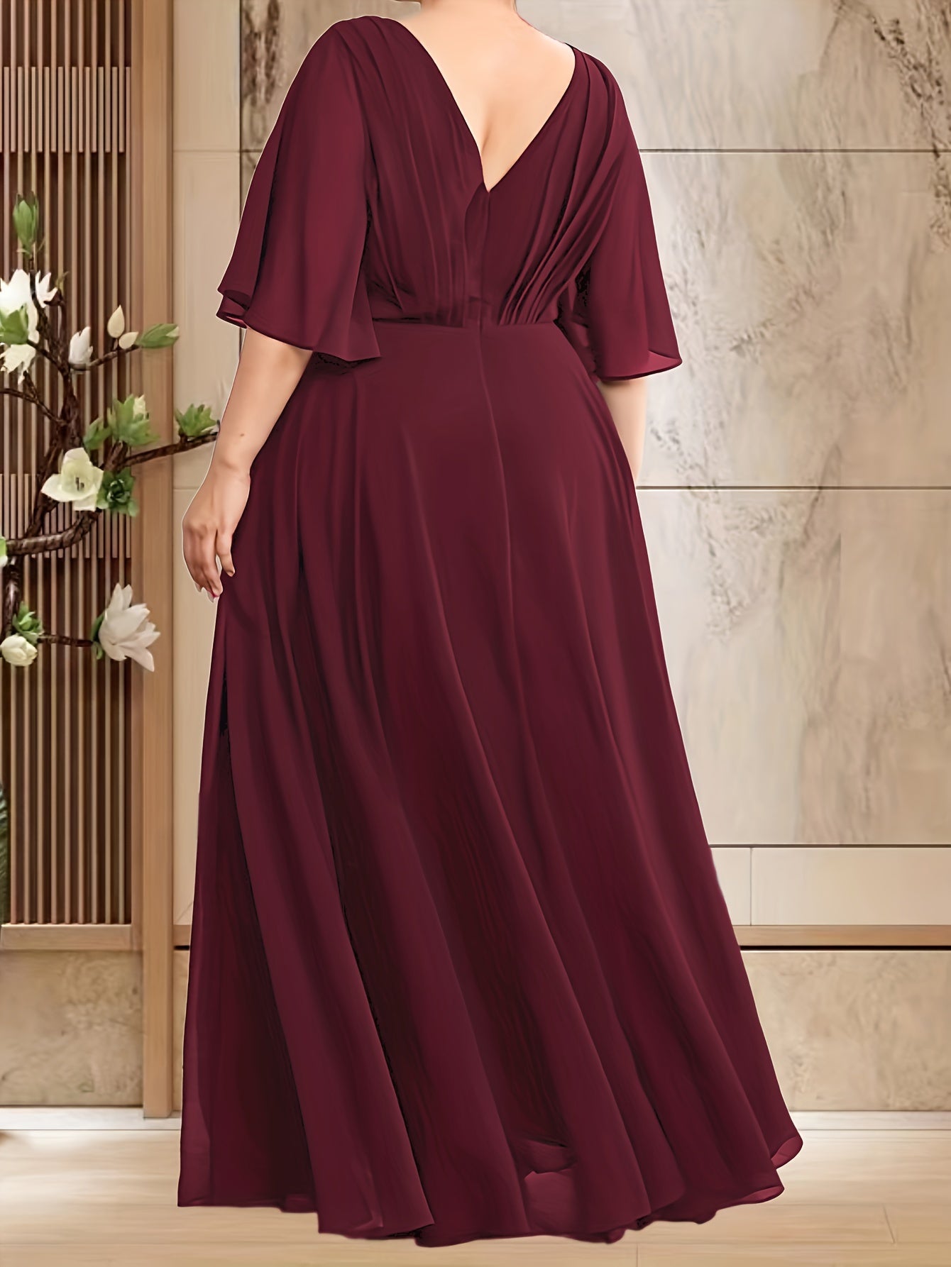 Платье для подружек невесты большого размера с цветочным рукавом и V-образным вырезом, короткий рукав, свадебное