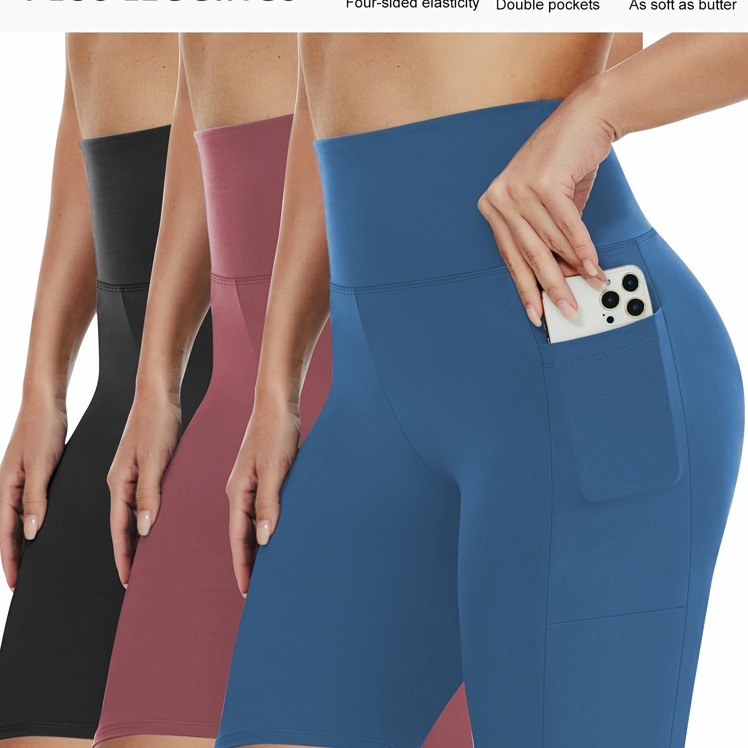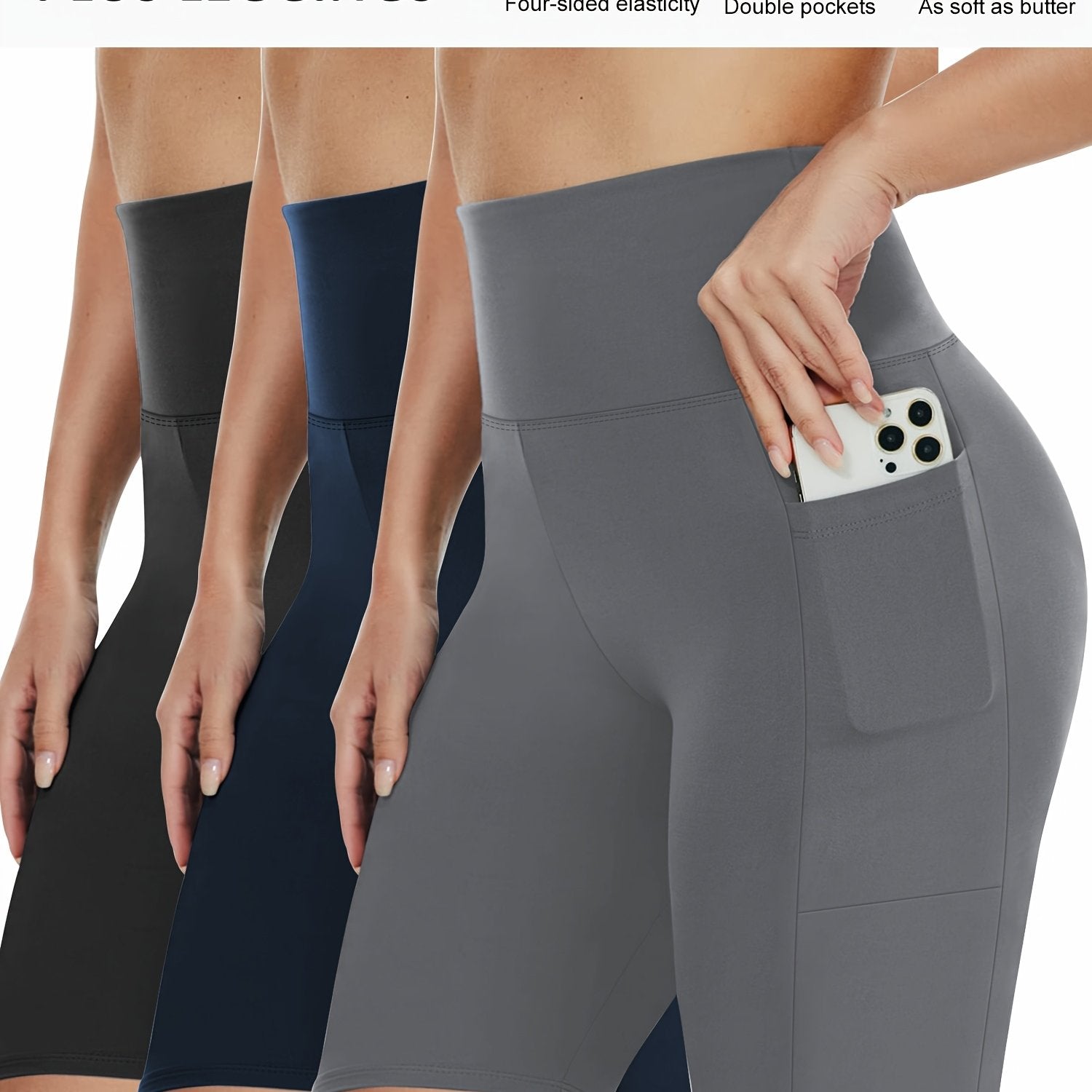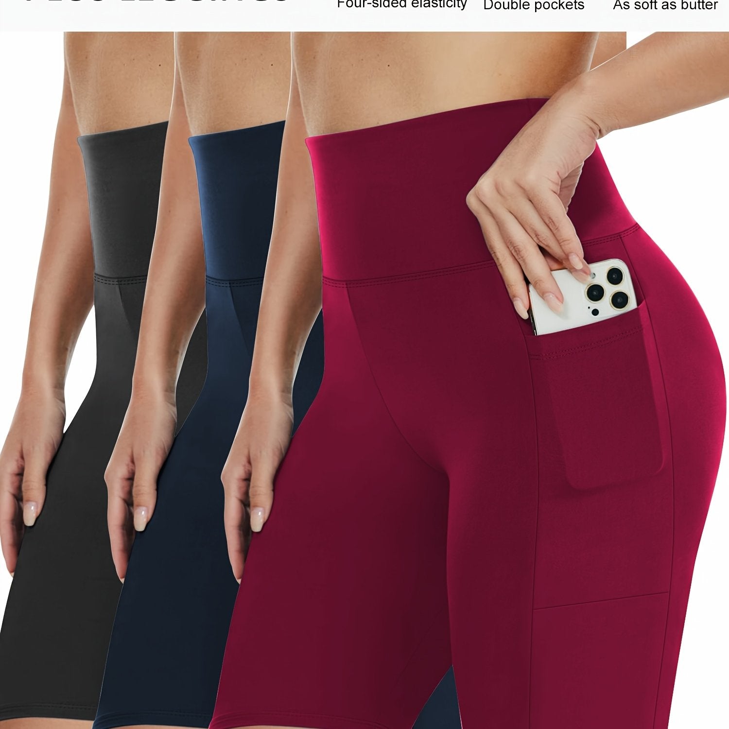 Леггинсы больших размеров с высокой талией, комплект из 3 штук, с боковыми карманами для йоги и тренировок