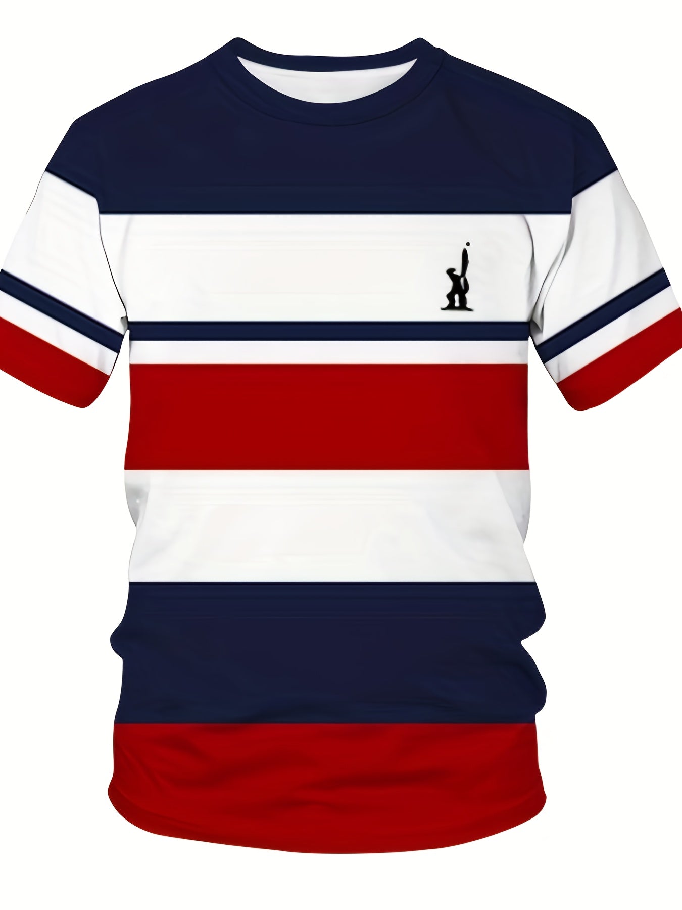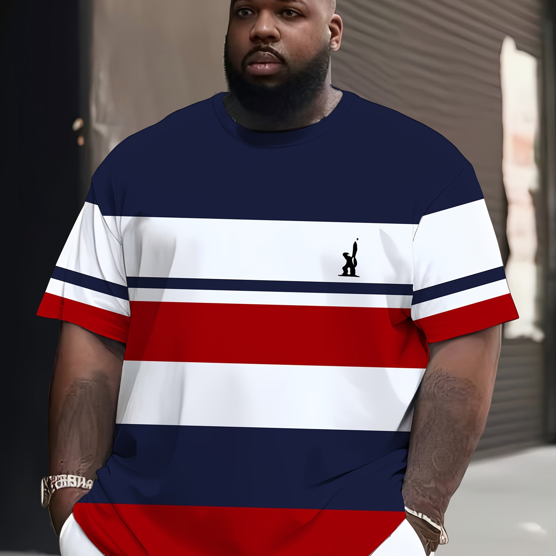 Мужская футболка с 3D-графикой больших размеров, темно-синяя, белая, красная в полоску, из полиэстера, повседневная