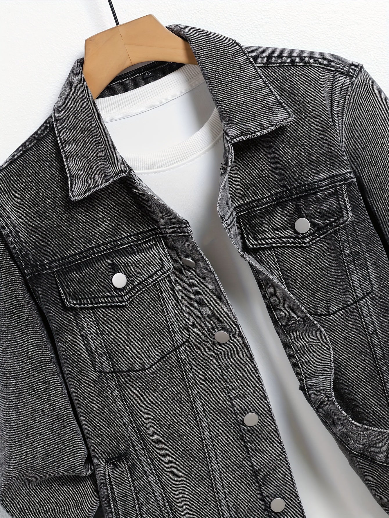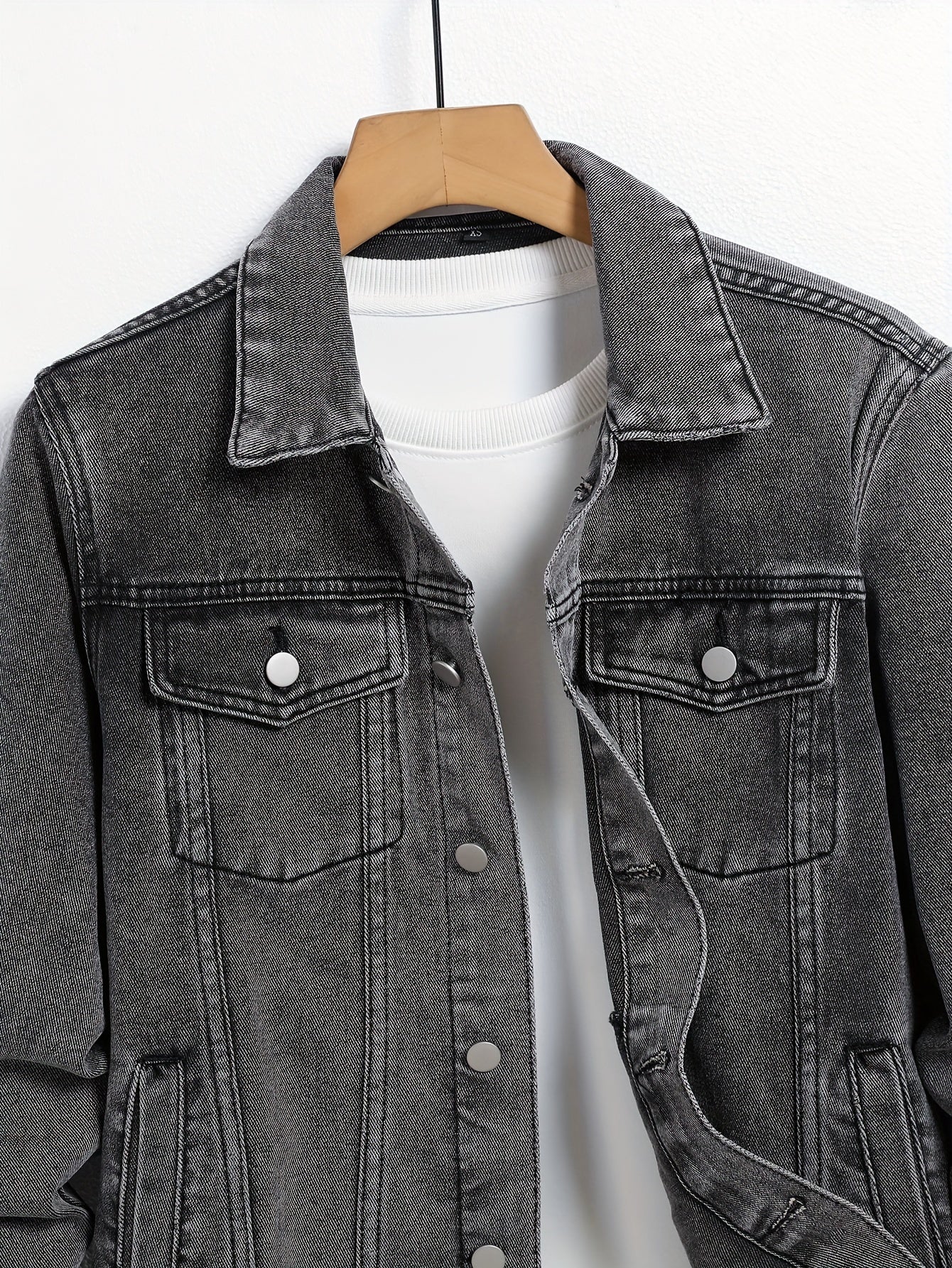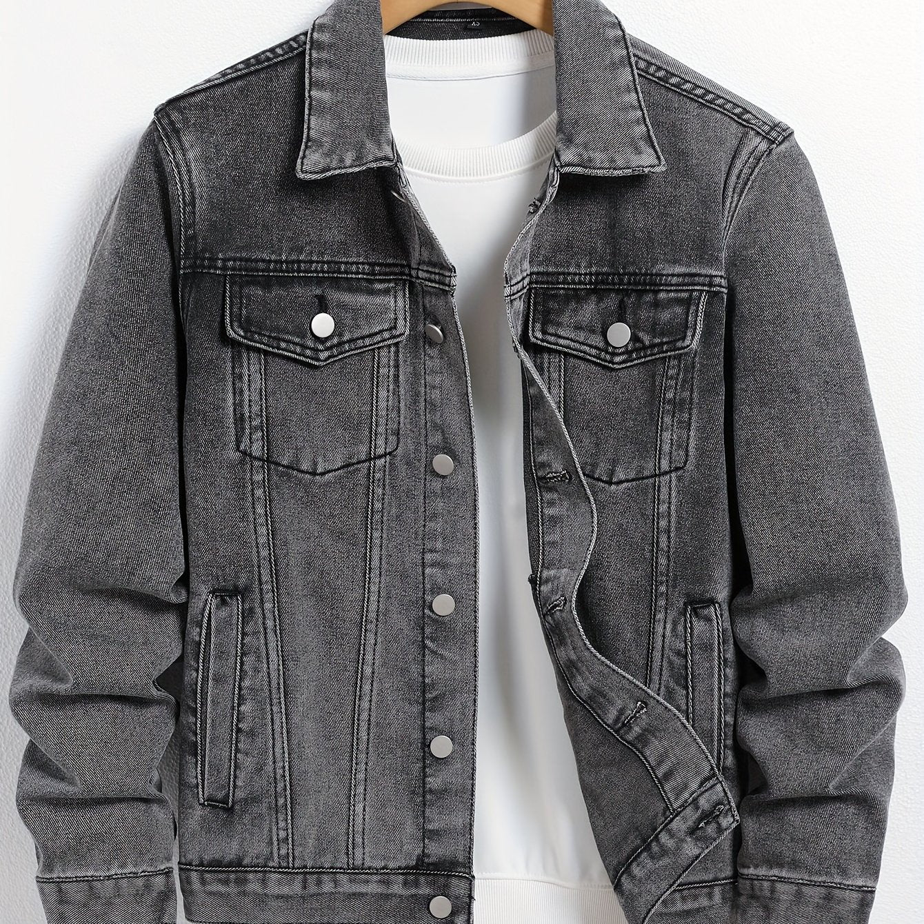 Мужская повседневная джинсовая куртка большого размера, однотонная, из хлопкового смесового материала, классический крой, лацканы, карманы