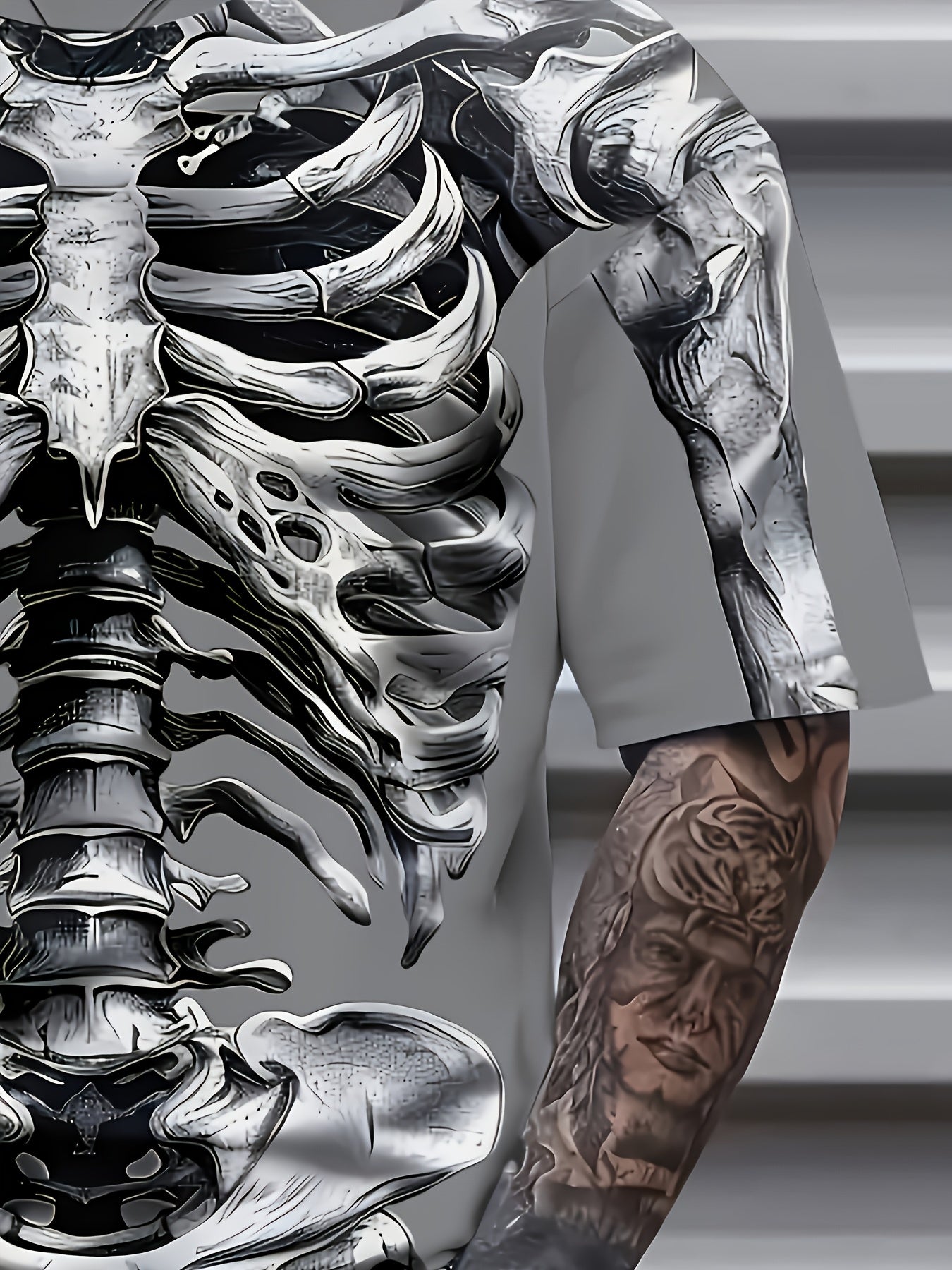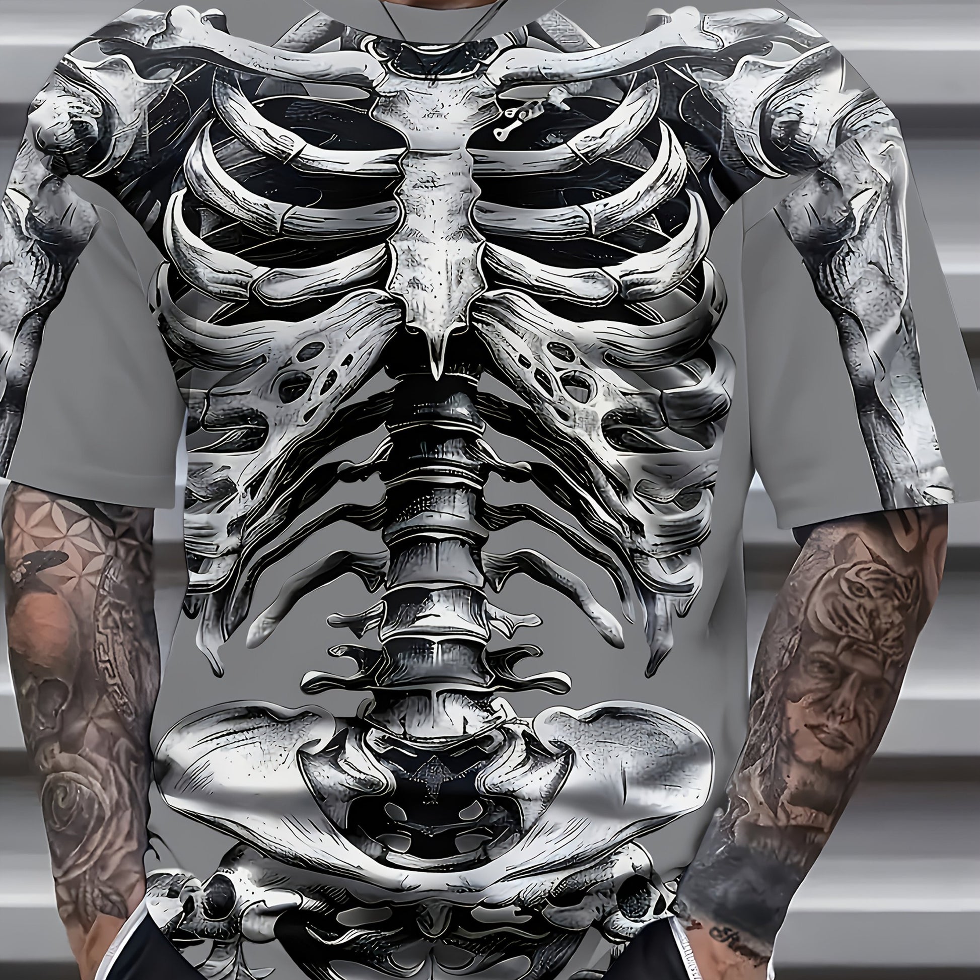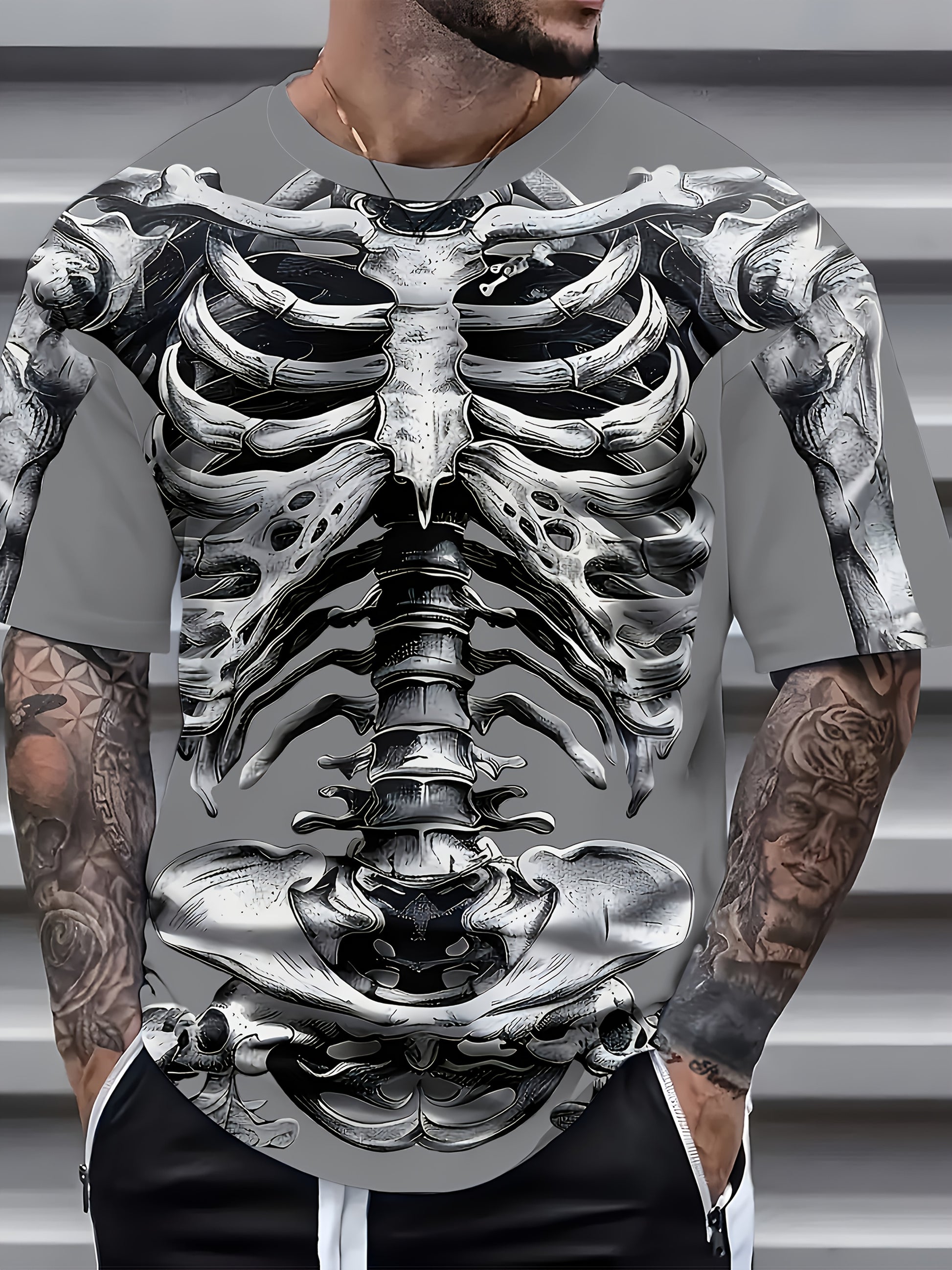 Футболка с графическим принтом черепа для мужчин большого размера, короткий рукав, круглый вырез, летняя повседневная, вязаный материал