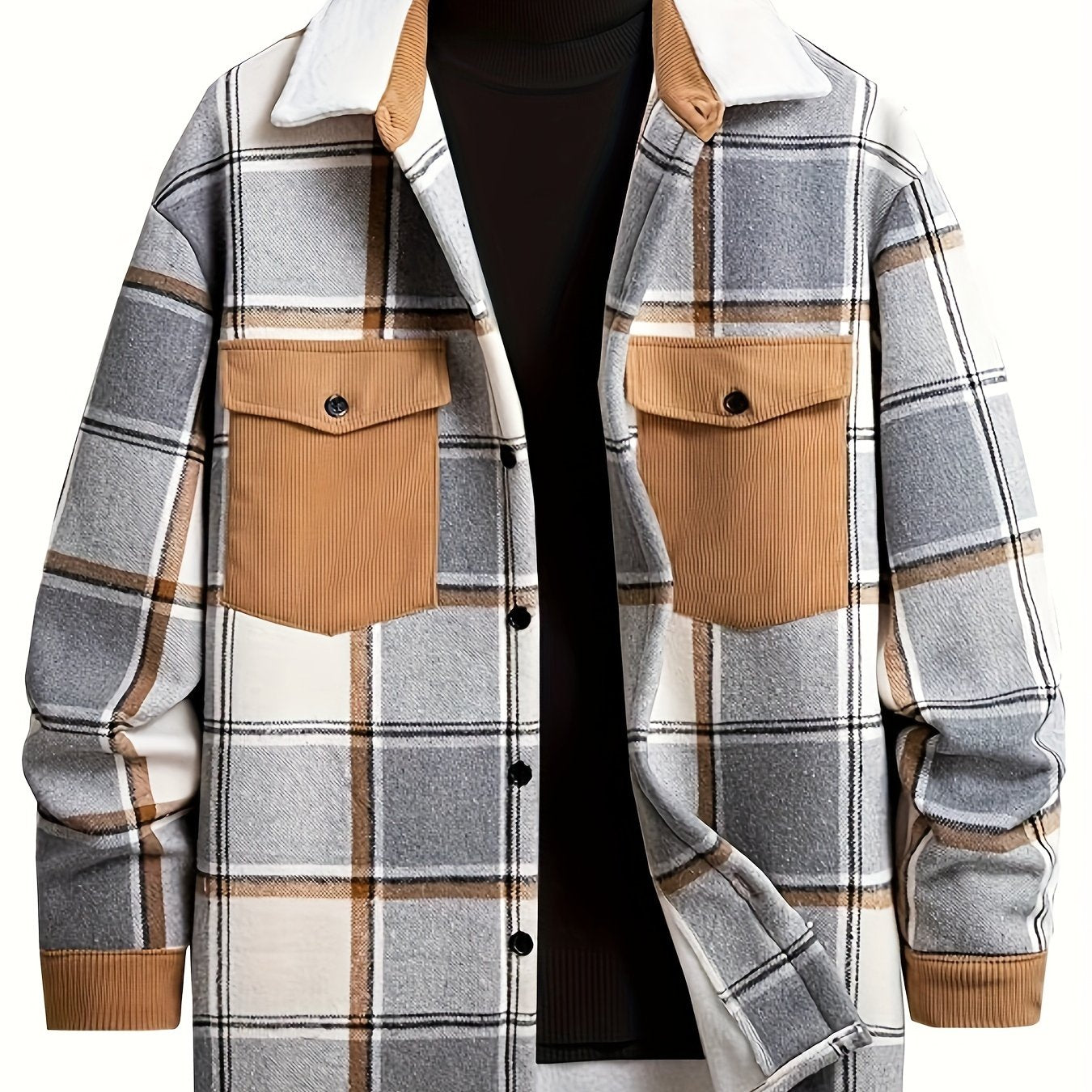 Пальто большого размера для мужчин с клетчатым принтом, накладными карманами и опущенными плечами